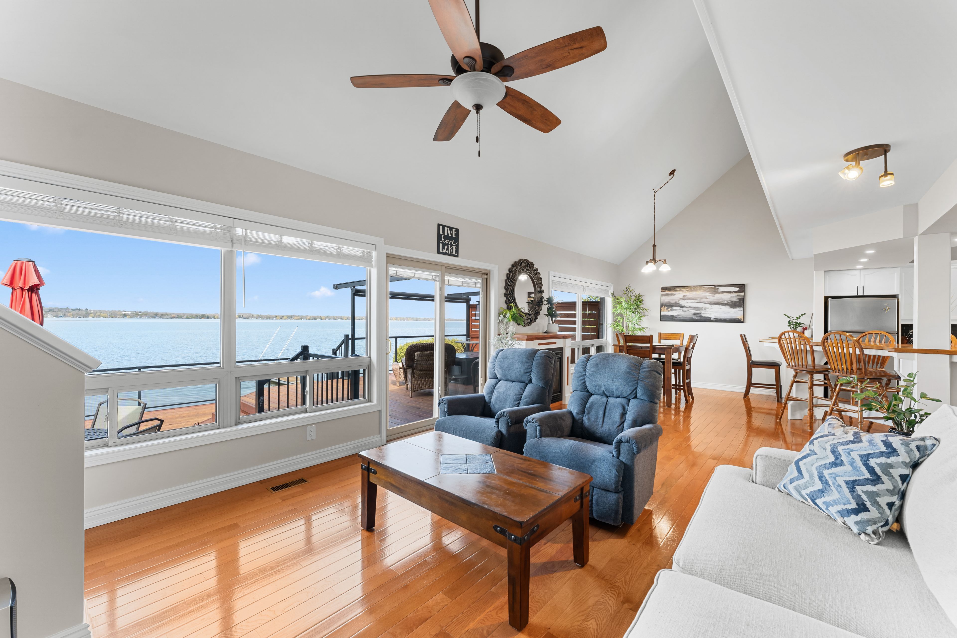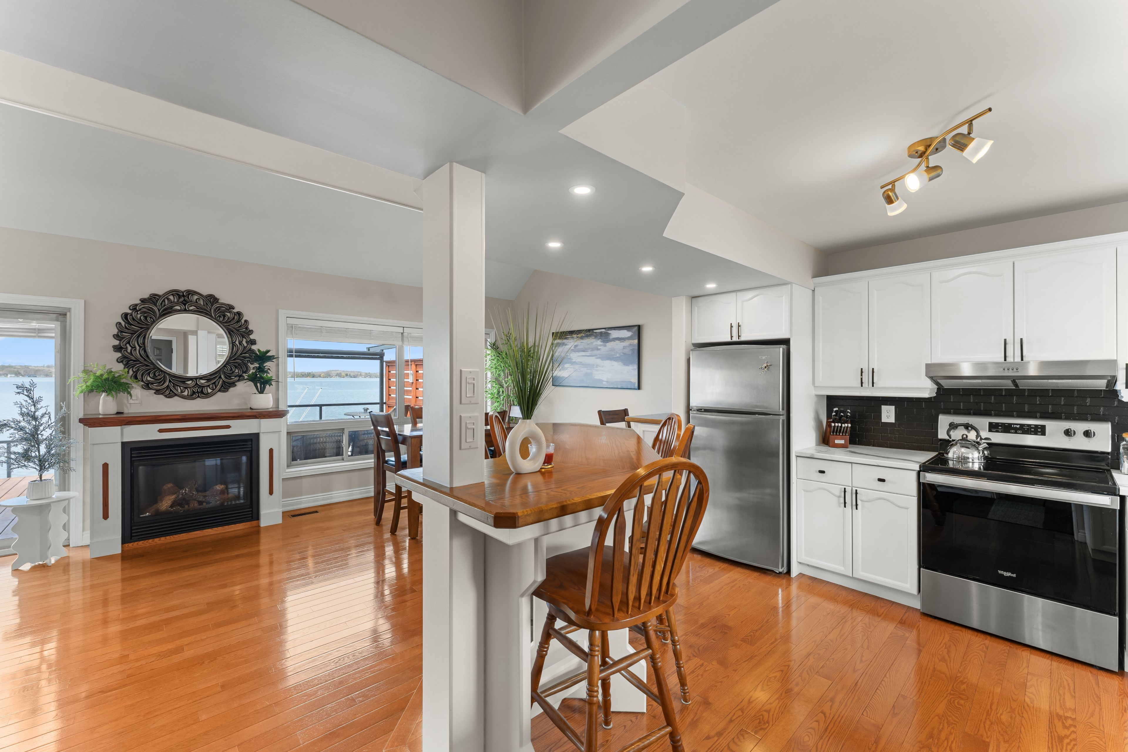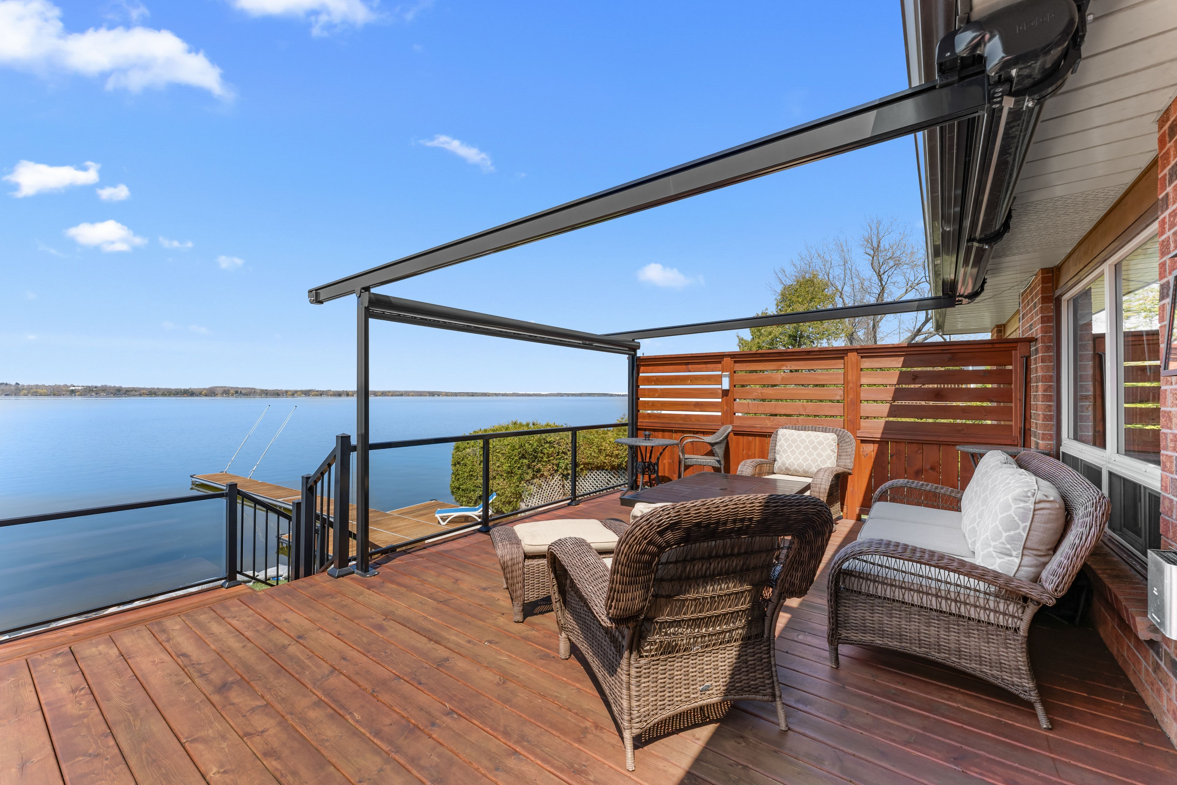 Waterfront living. Discover the art of relaxed luxury in this exceptional turn-key, two-storey waterfront home set in the quiet, sought-after community of caesarea. Thoughtfully upgraded and freshly painted, this residence offers a bright, elegant interior where spacious design meets inviting comfort. Expansive windows form tranquil water views, filling the home with natural light and a sense of calm. Step outside and immerse yourself in the beauty of the surroundings-where peaceful mornings and sunset evenings become part of your everyday routine. This is more than a home; it's a lifestyle defined by serenity, sophistication, and effortless living and is truly home sweet home-where stress melts away, and every day feels like a retreat. Notable upgrades/enhancements and more ++ 55' winch up aluminum dock with mooring whips and cedar decking - 2022. Inground sprinkler system. Remote controlled stobag pergolino with horizontal & vertical shade.