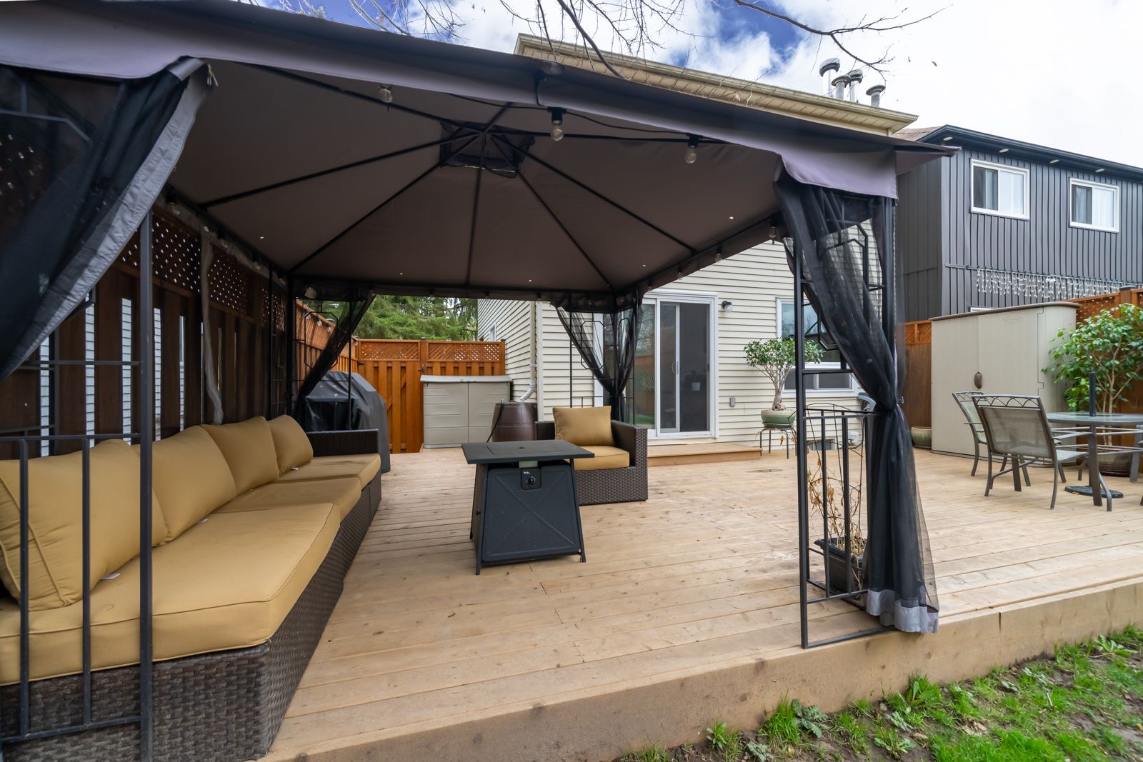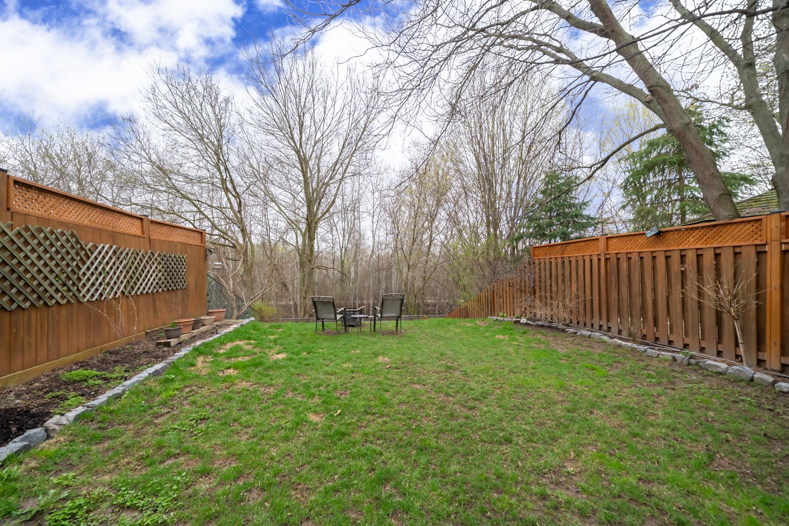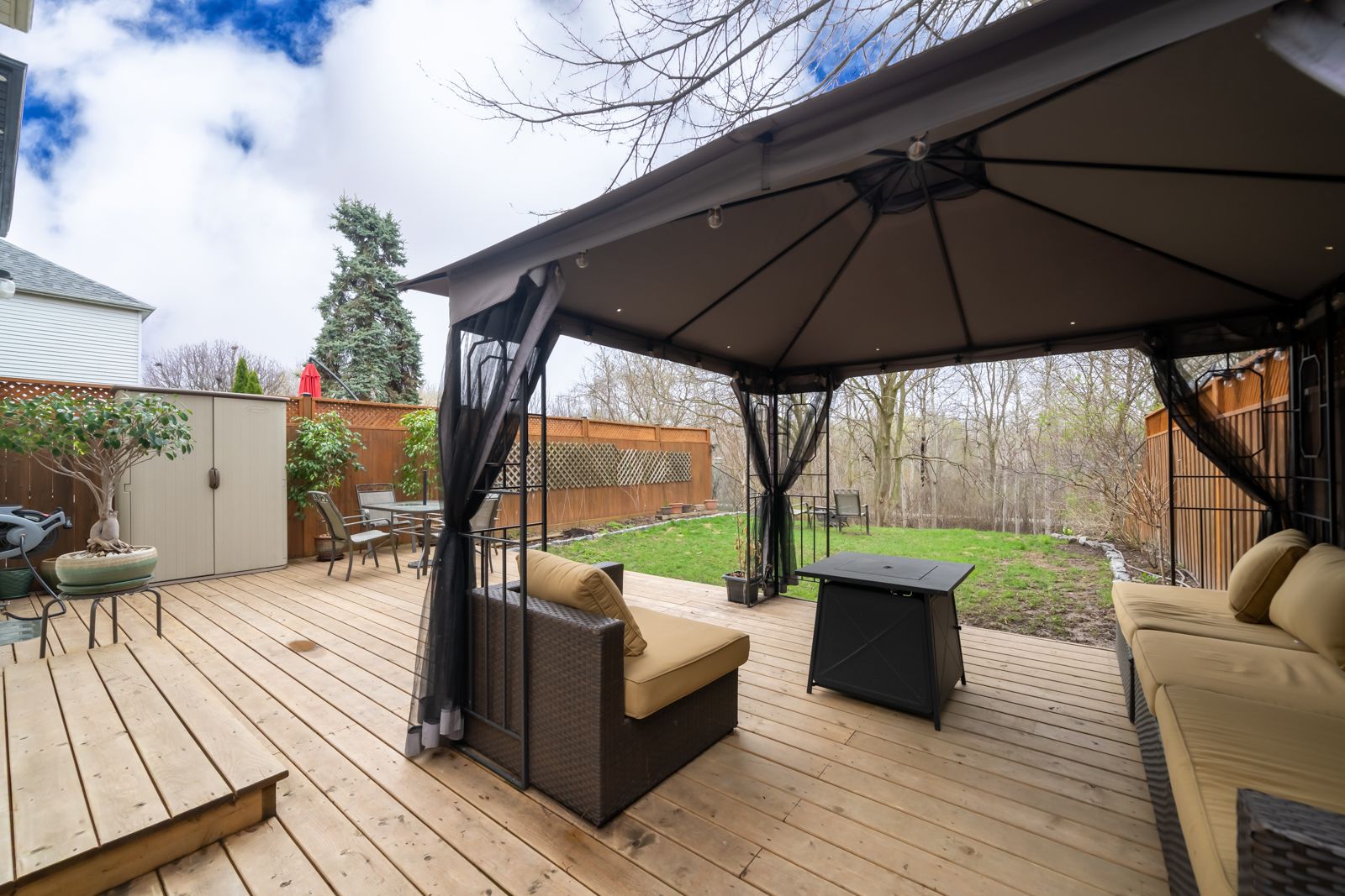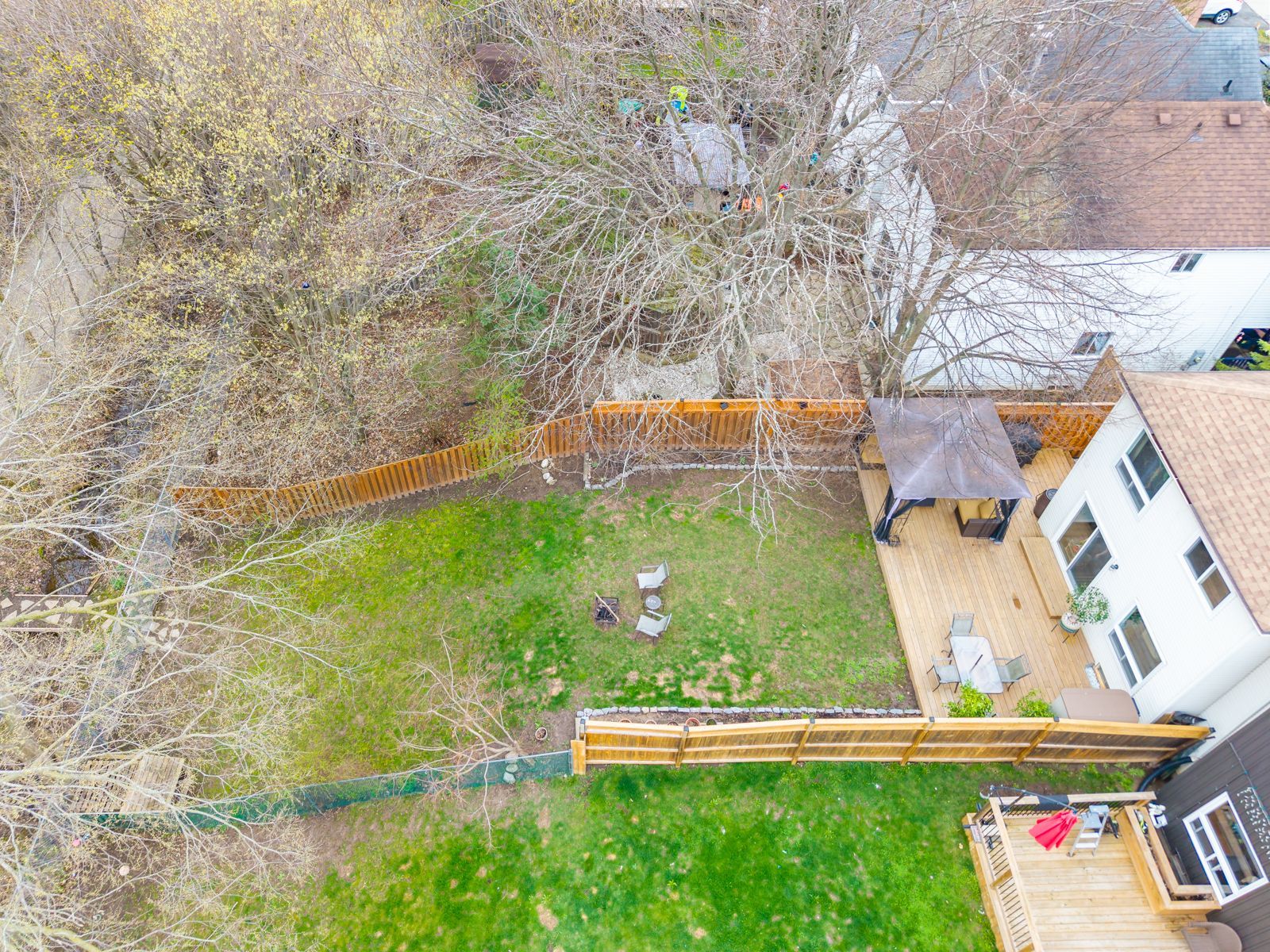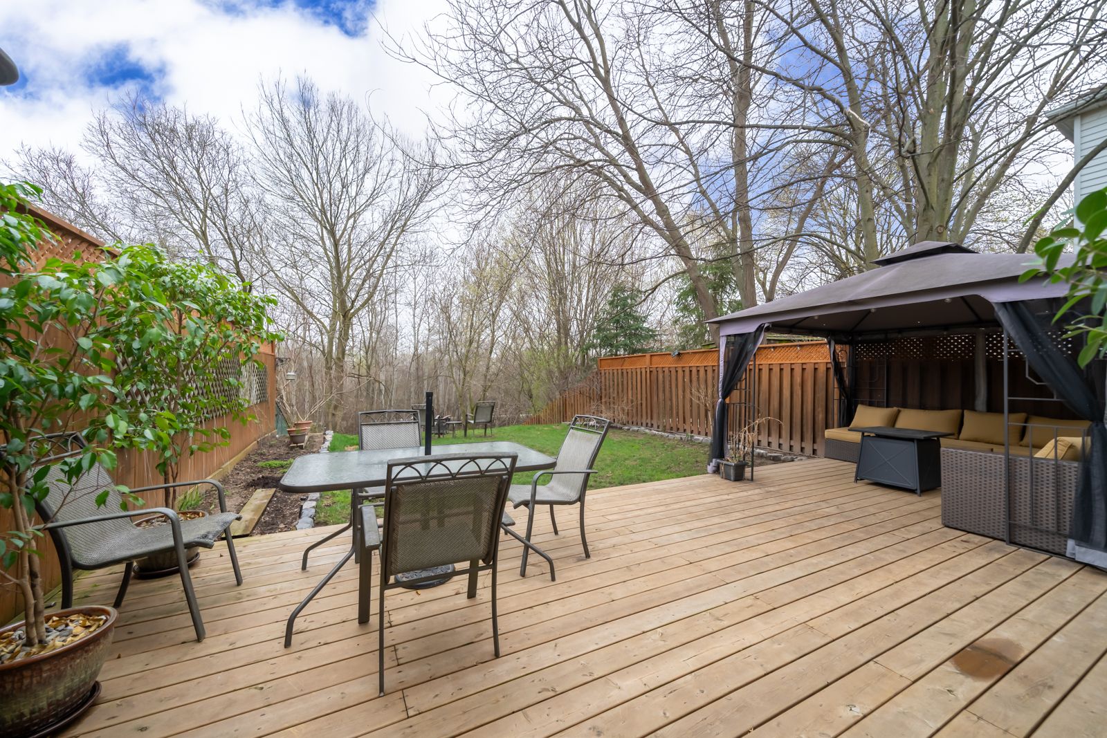 • Backyard deck with privacy features and direct trail access.