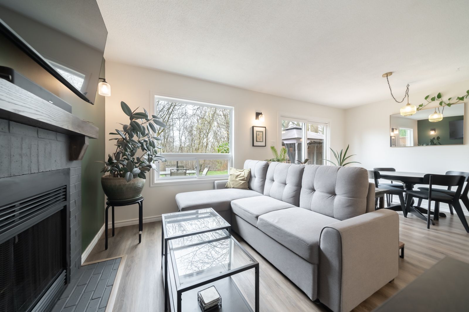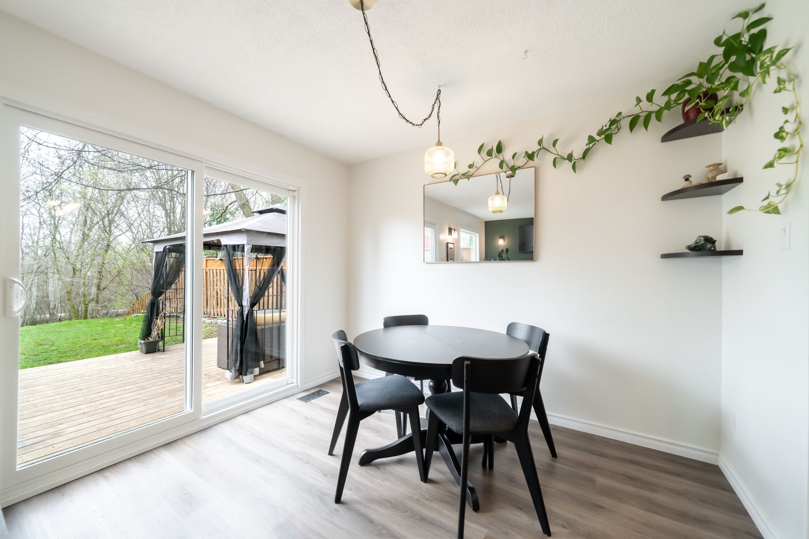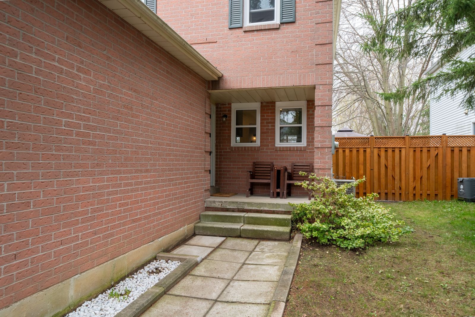 Beautifully upgraded home backing onto your own private oasis with trails & d'aubigny creek. This stunning 3 bedroom, 3 bathroom home has been extensively & thoughtfully upgraded throughout. Step into a fully renovated open concept kitchen featuring quartz countertops, ceramic tile backsplash, gold hardware, new cabinetry, and a double farmhousesink. Large windows fill the space with natural light, while the spacious island offers seating, storage, and the perfect gathering space for entertaining. Vinyl flooring flows seamlessly into the living and dining areas, where you'll find a cozy grey brick fireplace with a custom oak mantel and stylish sconces for controlled lighting. Large windows showcase your private backyard, creating a bright and inviting atmosphere. The main floor includes a convenient 2 pc bathroom with a modern colour drenched design, plus a sleek popcorn free ceiling w/ potlights for a clean, contemporary finish. A fresh stained railing & trendy chandelier lead you upstairs to three well sized bedrooms. The primary bedroom offers an enlarged window overlooking the peaceful trail, providing rare privacy and natural views. The full bathroom has been refreshed with newpaint and ceramic tile for a crisp, updated feel. The finished basement is perfect for entertaining, featuring a custom wet bar featuring a live edge wood top, seating, stone & mirror backsplash, completed with a beverage fridge. In addition, comfortably enjoy move night w/ pot lights, wood beam accents, and custom barn doors. The laundry/ bathroom includes ceramic tile flooring & dual use utility sinkstep outside to a 450 sf wood deck with b/i waste storage, an iron pergola, and a 10' stained trellis for added privacy. A natural stone garden border to complete, while a back gate offers direct access to scenic trails and a nearby conservation area. Located close to highways, shopping, trails, and the grand river, this turnkey home is ready for you to enjoy this summer to the fullest!