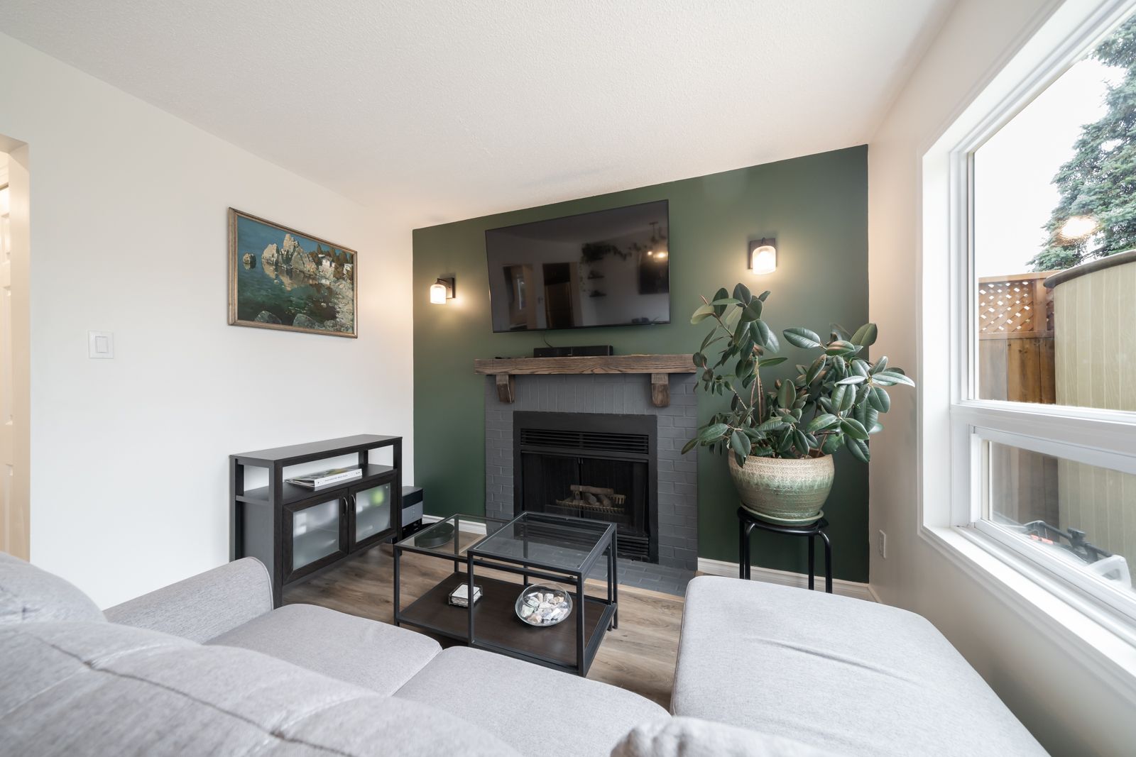 • Bright living areas featuring large windows and a cozy fireplace.