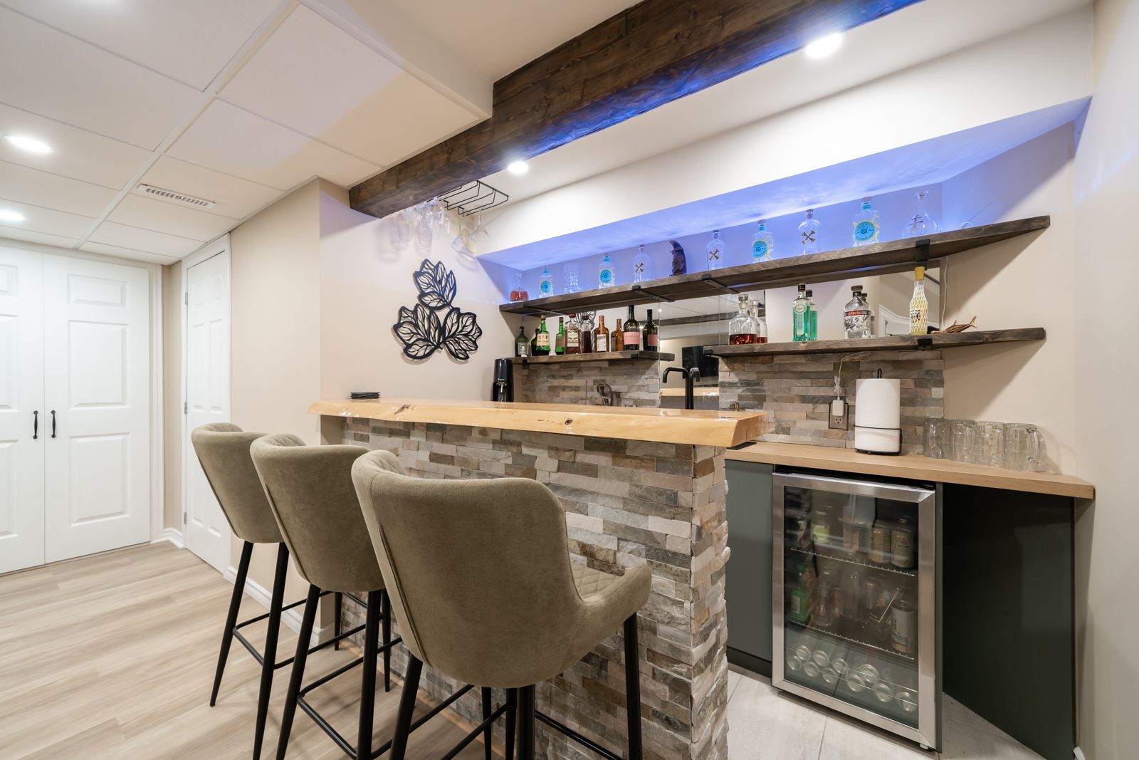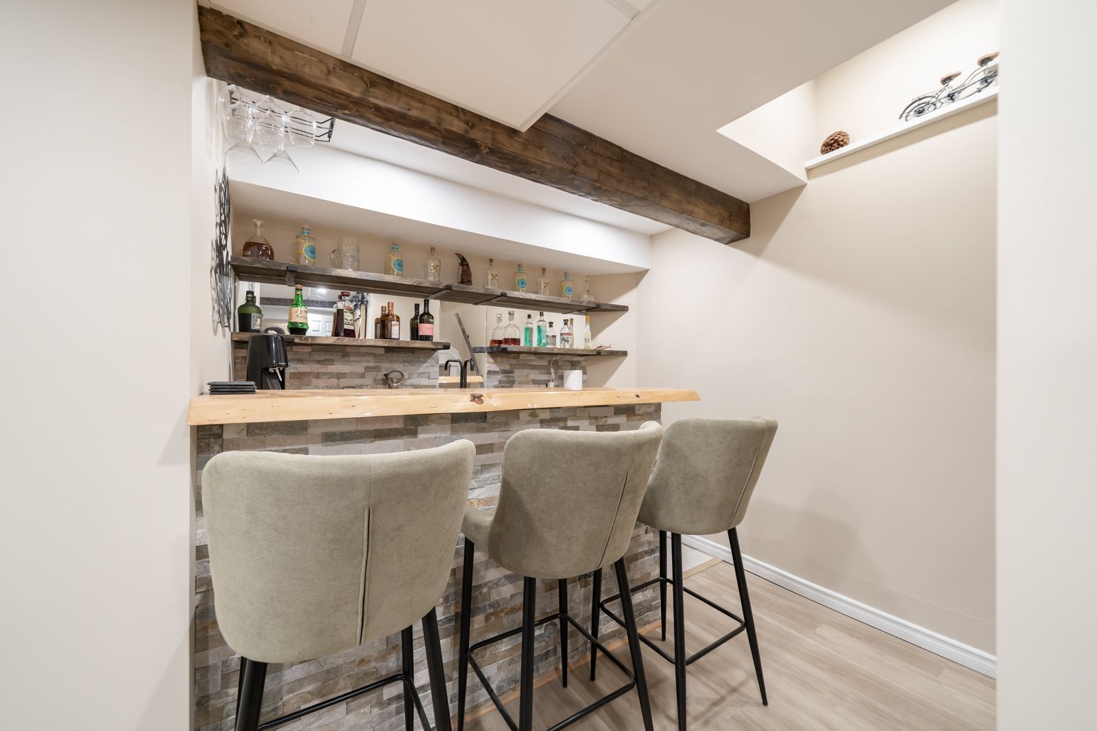 • Finished basement perfect for entertainment, complete with a custom wet bar.