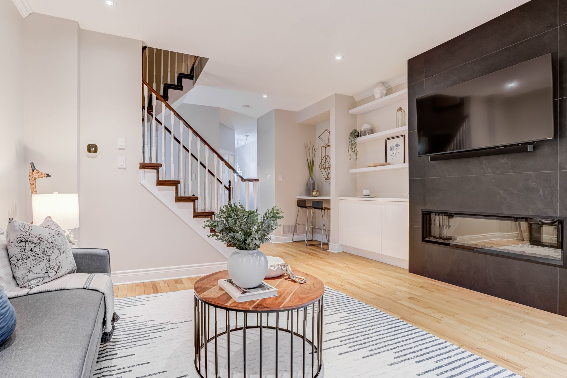 Executive townhome nestled in a quiet pocket of vibrant mimico, offering the perfect blend of style, comfort, and walkable urban living. Filled with gorgeous natural sunlight throughout, this beautifully maintained 2+1 bedroom, 2 full bathroom home features one of the best layouts in the complex of this floor plan; ideal for modern lifestyles. The main and upper floors showcase a bright living room with custom built-in cabinetry and shelving, an electric fireplace, and a walk-out to a stunning two-tiered deck with spiral staircase. The contemporary white kitchen offers stainless steel appliances, granite countertops, large windows, and convenient eat-in dining. Upstairs, the spacious primary bedroom features a large closet, complemented by a large second bedroom and a 4-piece bathroom with linen closet. The lower level provides excellent versatility with an office or additional bedroom featuring a custom sliding glass door and gas fireplace, a 3-piece bathroom, laundry room, storage, and walk-outs to both the backyard and garage. Enjoy a charming, low-maintenance backyard with multi-tiered decking, perfect for relaxing or entertaining. Private garage and driveway parking included. Located just steps to humber bay shores park, the martin goodman trail, humber bay butterfly habitat, manchester park tennis courts, local restaurants, cafes, schools, ttc streetcar and bus routes, and mimico go station with easy access downtown via the lakeshore west line. A rare opportunity in one of south etobicoke's most desirable waterfront communities.