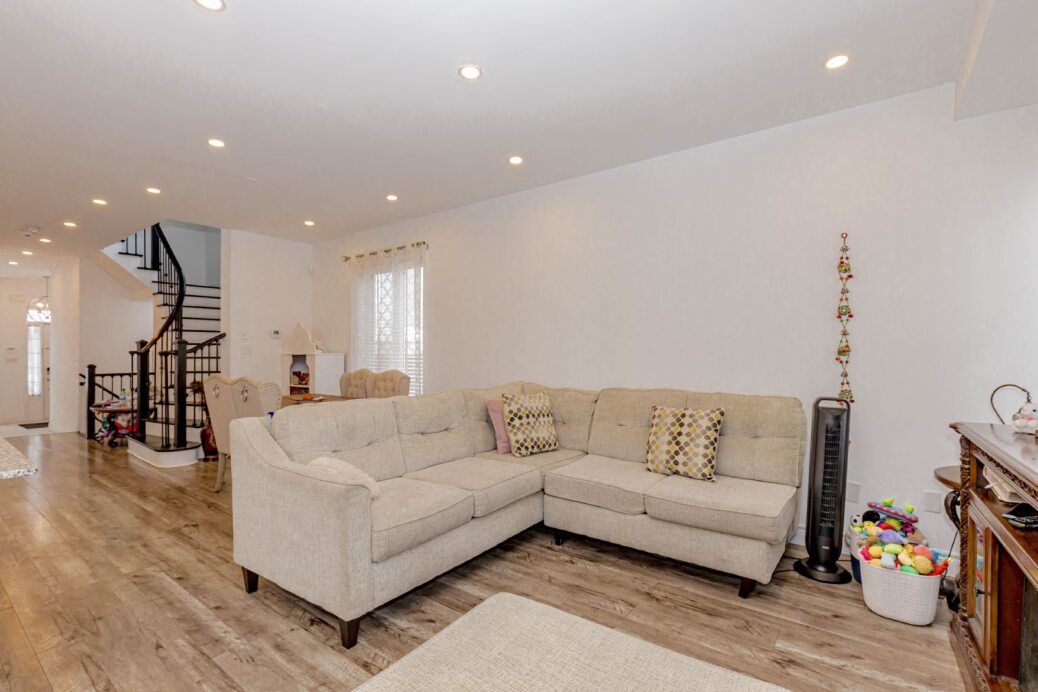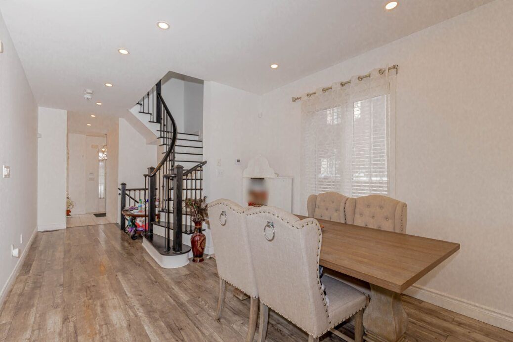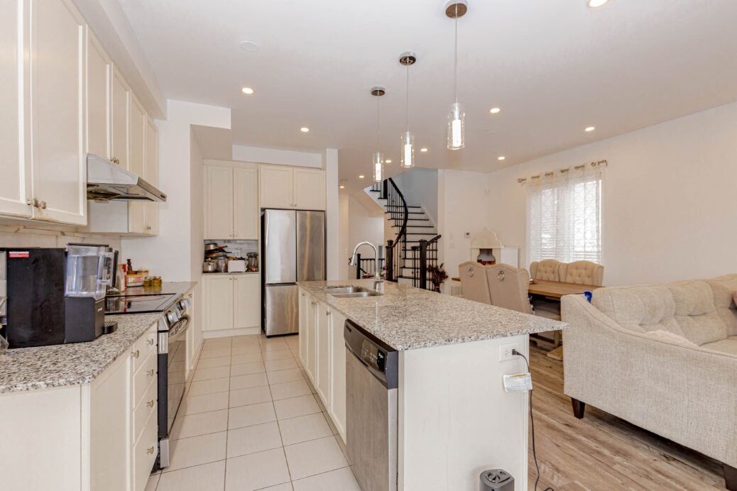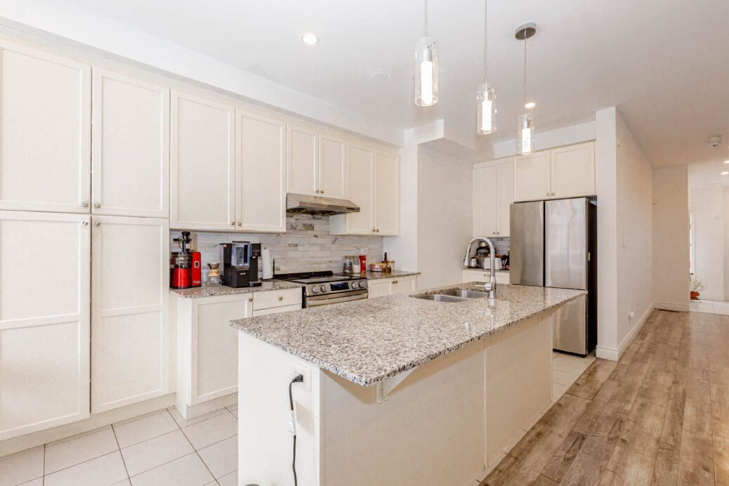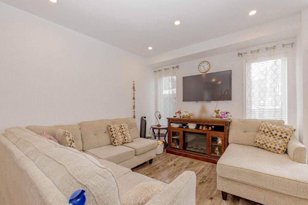 Showstopper! Sunning all-brick end-unit freehold townhouse built by paradise homes, offering a bright and spacious modern layout in a highly sought-after neighbourhood. Features 9' ceilings, an open-concept main floor with a large family/dining area, and a versatile finished rec room. The primary bedroom boasts a beautiful 10' coffered ceiling, 4-pc ensuite, and a generous walk-in closet. Two additional bedrooms are well sized. This home has been very well maintained and shows pride of ownership. Close to all amenities - schools, parks, shopping, transit, and more. A must see!