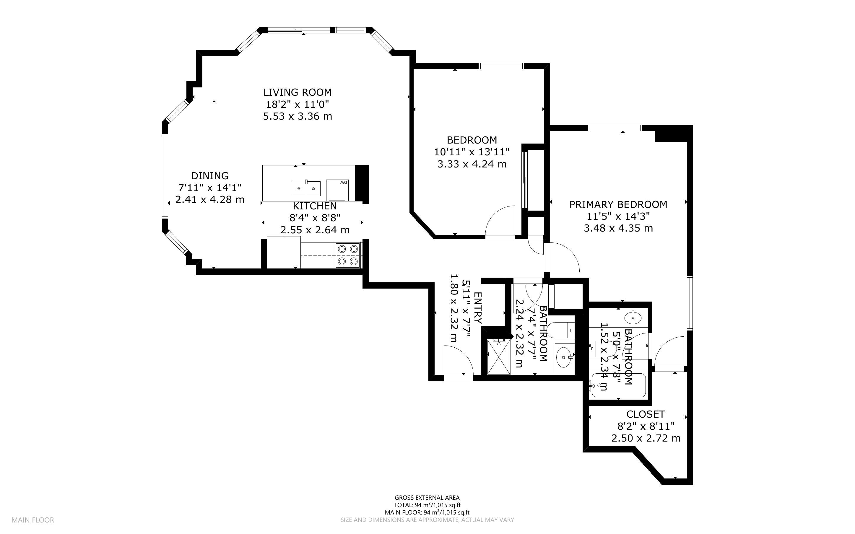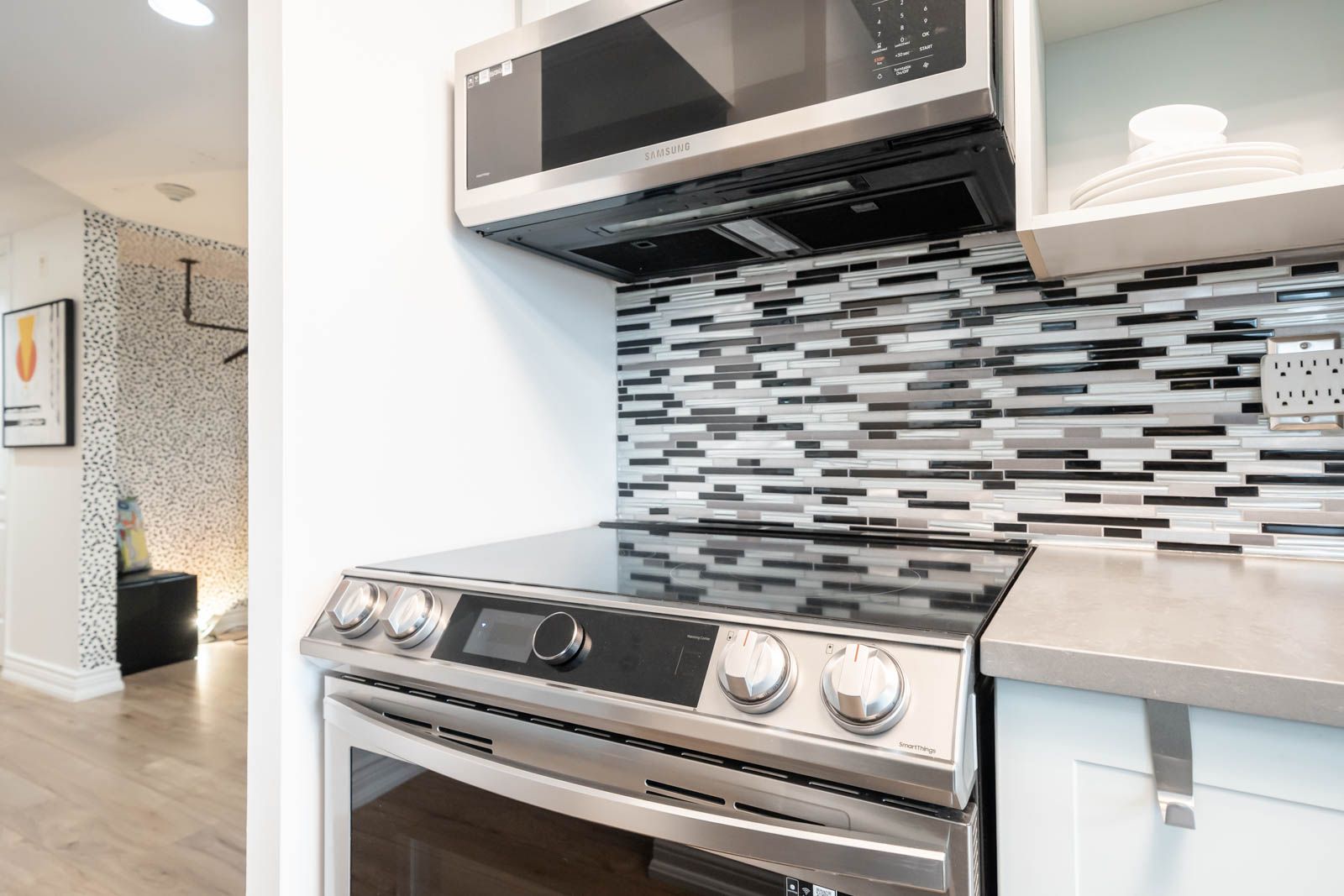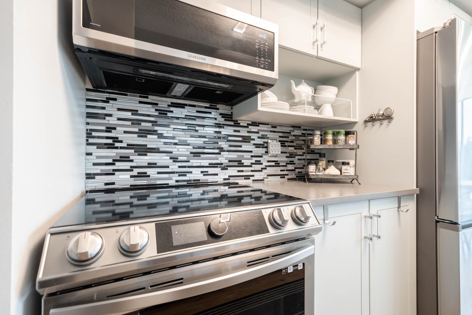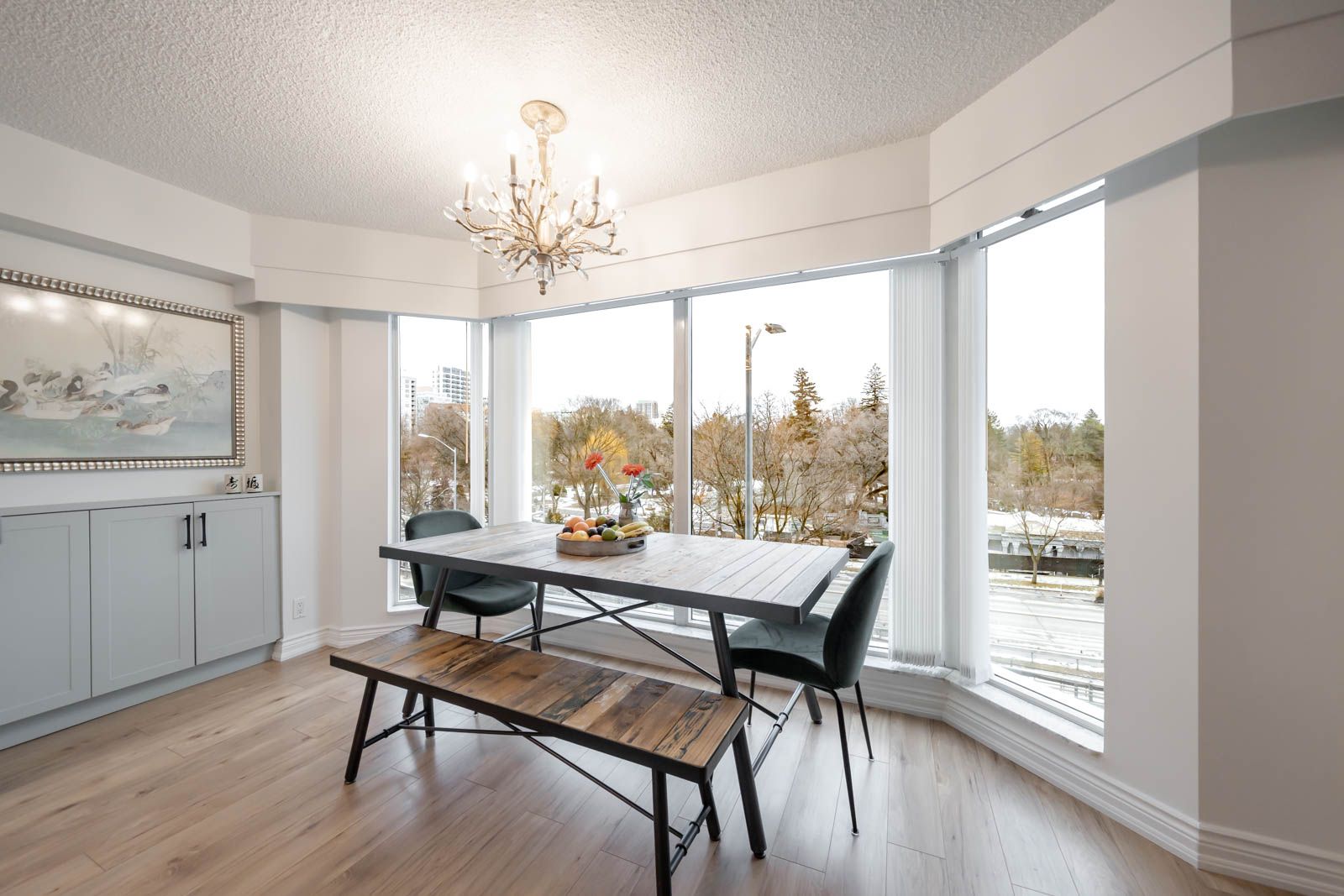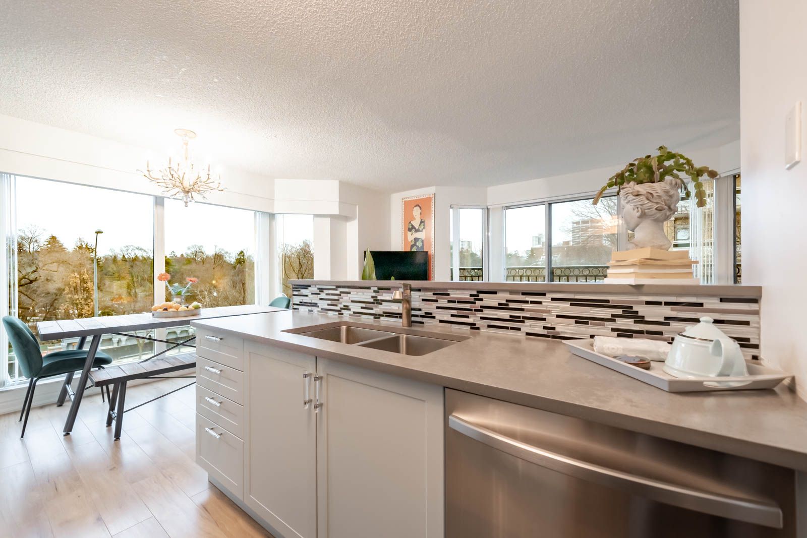 • Renovated corner suite with a designer kitchen and refined finishes.