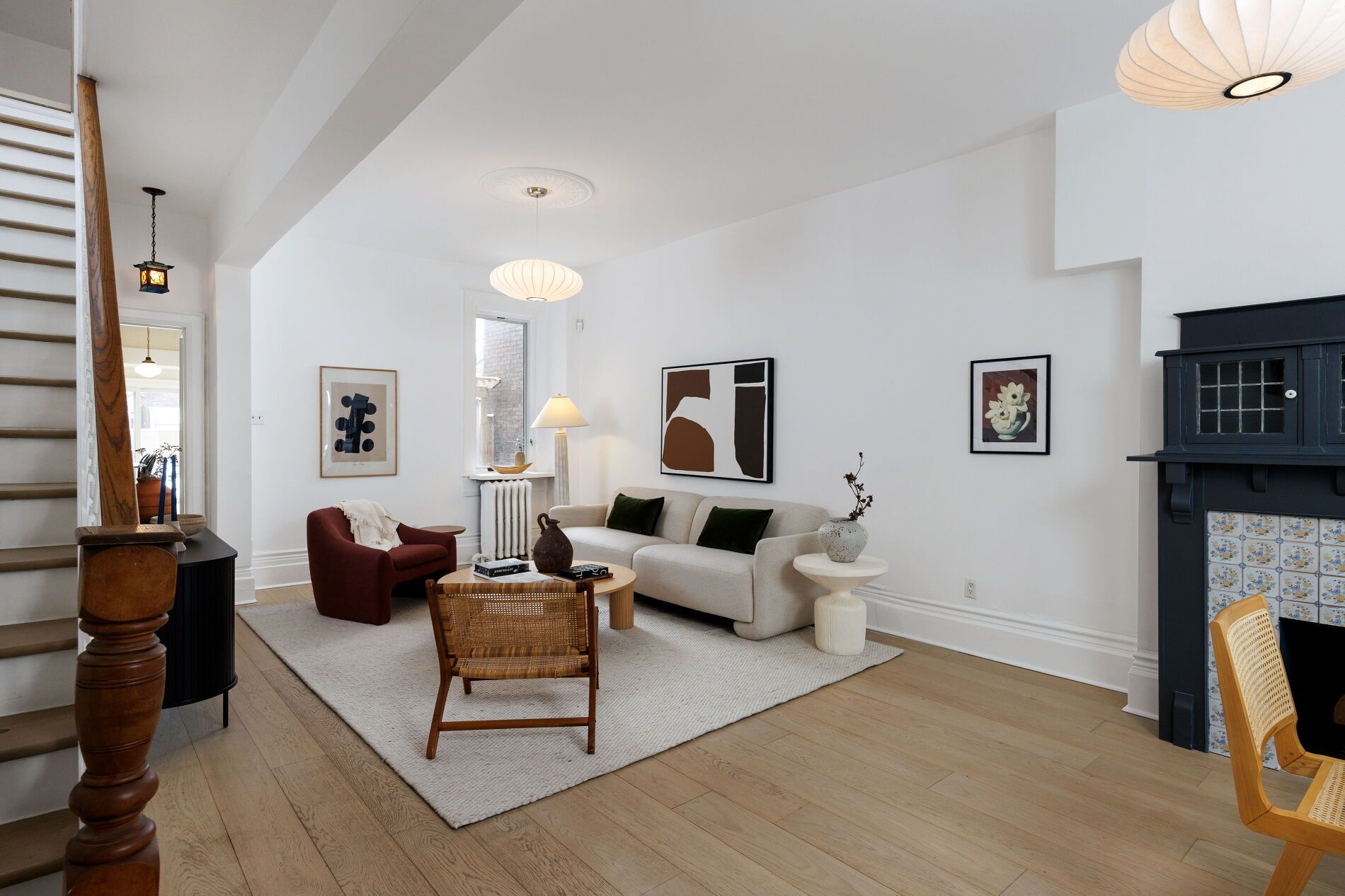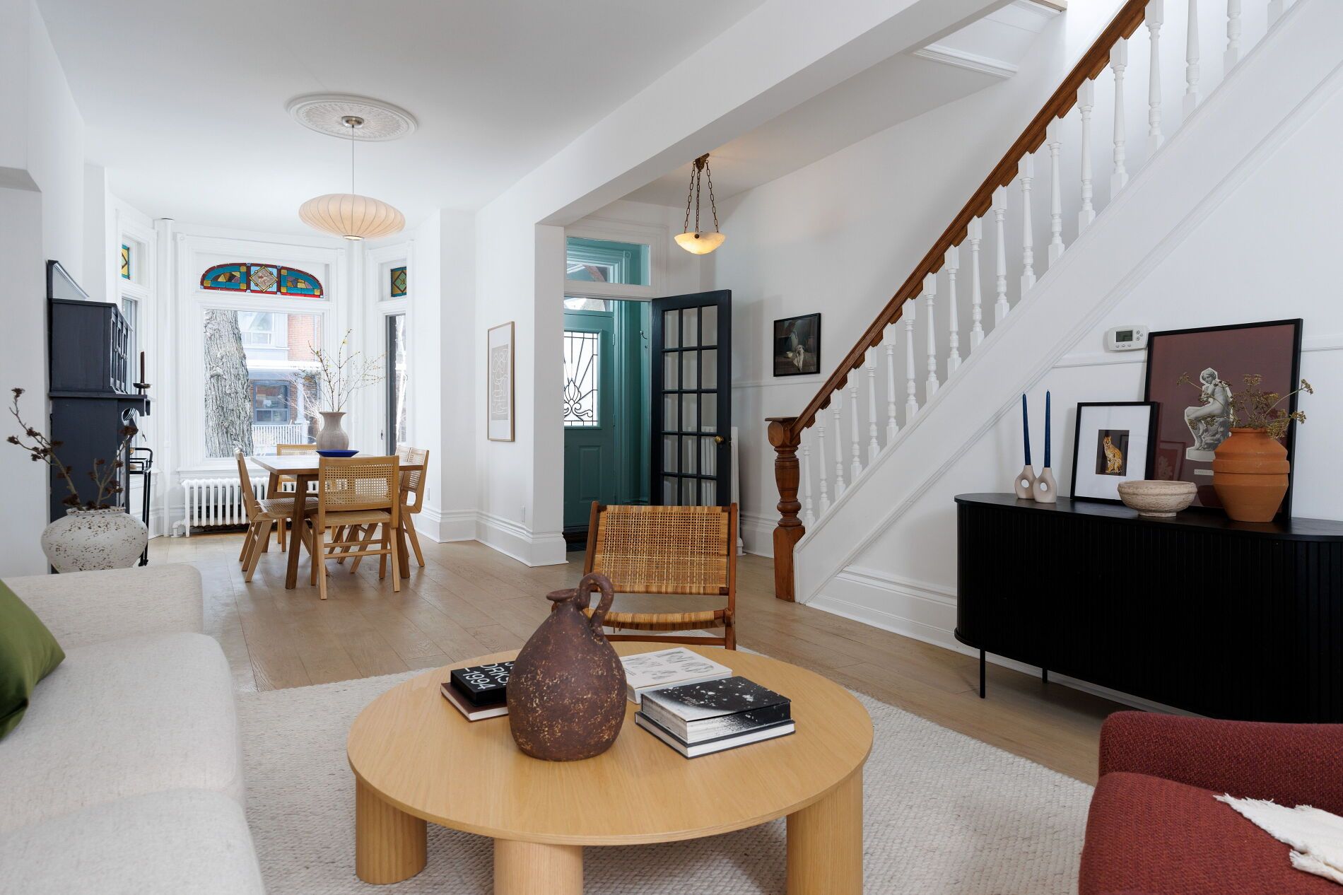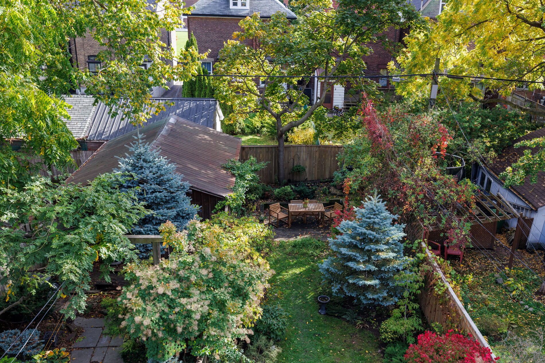 Meet me on marion. A rare end-unit victorian row that lives like a generous semi, this beautifully reno'd 2. 5-storey, 4 bedroom, 2 bath home blends timeless character with a modern designed heart - located in beloved roncesvalles. Original stained glass, a fireplace, tall ceilings, and hardwood floors anchor the home in history, while seamless flow between the living and dining rooms invite long dinners, and spontaneous celebrations. The kitchen was reimagined to bring the outdoors in. Designed with high end, sustainable materials, it holds generous custom storage, excellent prep space, and a charming breakfast nook framed by greenery. Functional and welcoming - a place to cook, gather, and begin the day slowly with coffee and a birdsong. Upstairs, the 2nd floor features 3 peaceful sleeping quarters, and a sweet rear den tucked among the treetops. The principal bedroom has remarkable storage, a cozy reading nook, and walkout to a balcony. The 3rd floor is full of joyful and adaptable possibility - imagine a serene primary retreat with rooftop deck access, or an inspiring hideaway for kids and teens: movie nights, sleepovers, creative projects, and room to grow. Outside, the landscaped backyard feels like a private sanctuary. Butterfly gardens attract pollinators throughout the seasons, while the generous deck sets the stage for endless summer dinners. Above it all, the rooftop terrace captures open sky and sunset views. Living here feels like village life within the city. Steps to favourite grocers, independent cafés, and amazing restaurants. Easy walks to the weekly farmers' market and community gatherings in sorauren park, larger nature adventures in high park, or dreamy waterfront strolls along the lakeshore trial. Easy access to transit and the gardiner makes commuting seamless. A home with heart, history, and room to gather -. Right where you want to be