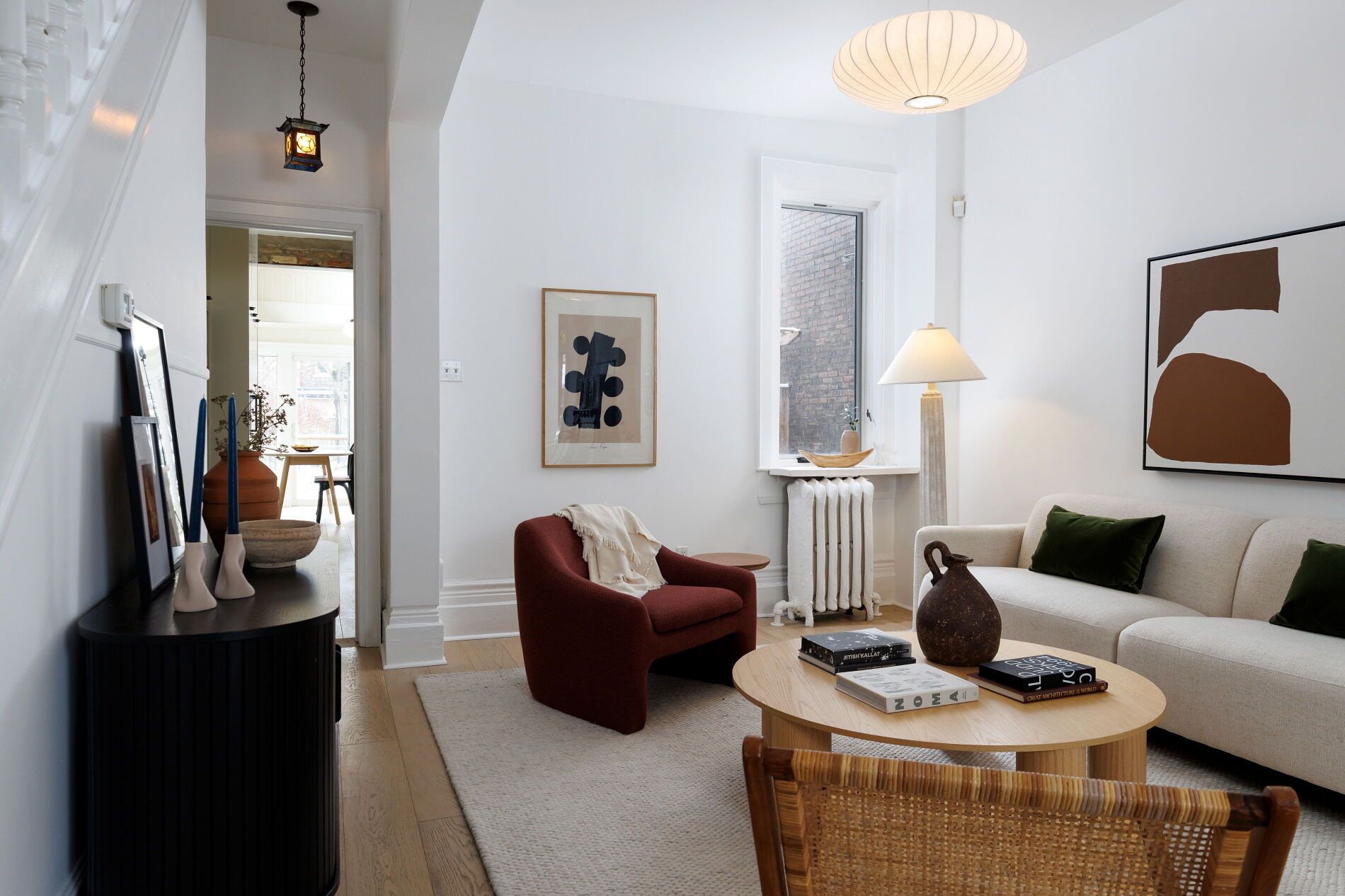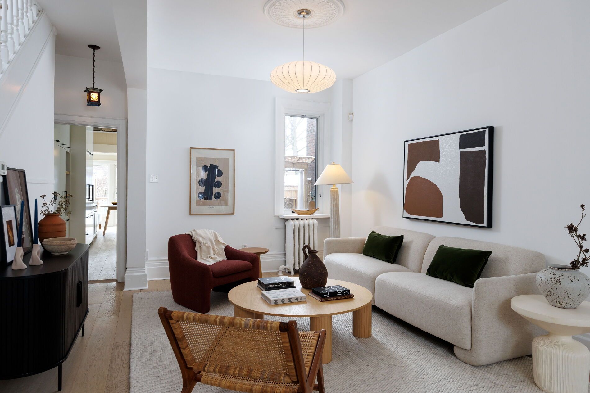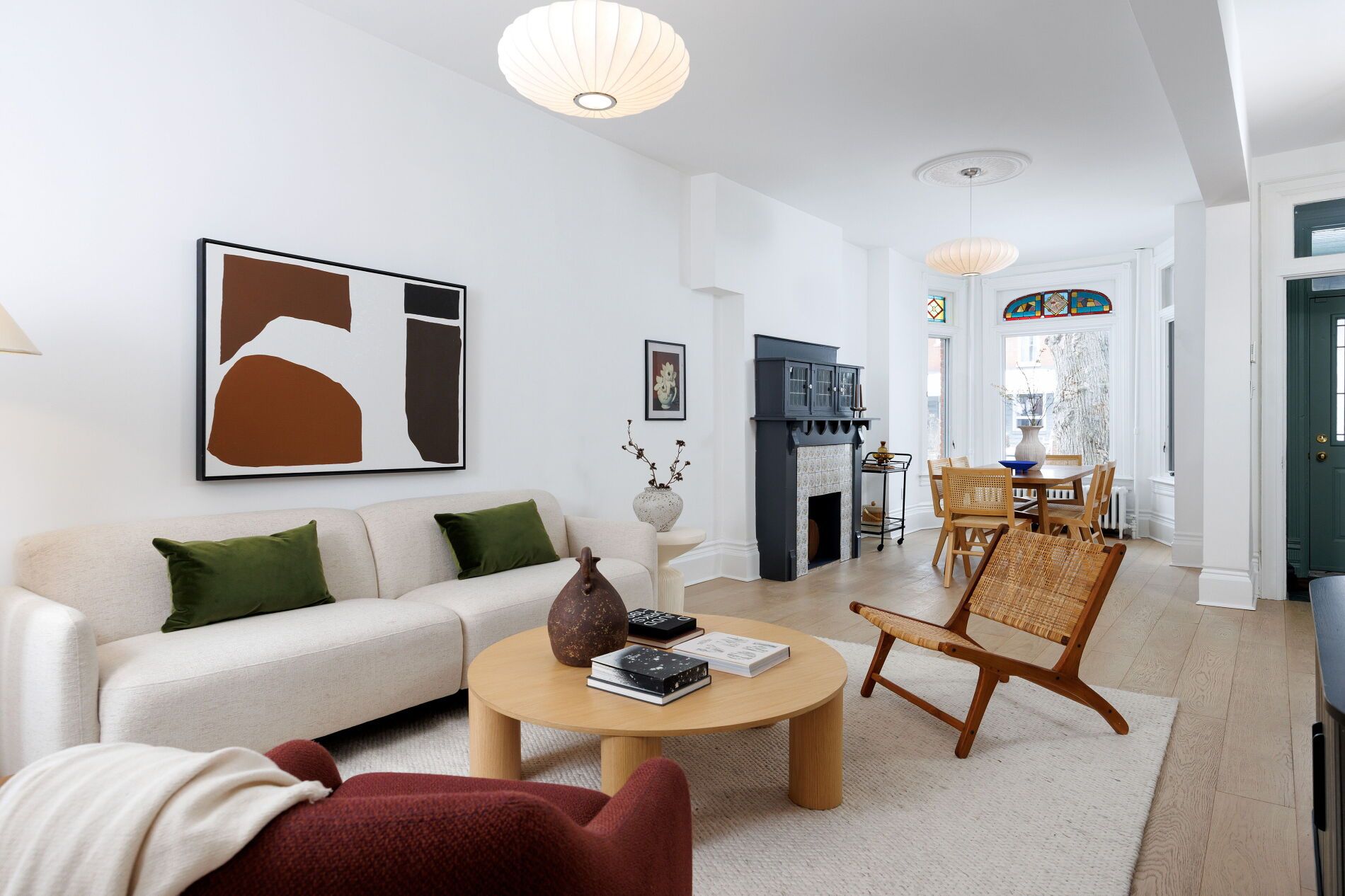 Meet me on marion. A rare end-unit victorian row that lives like a generous semi, this beautifully reno'd 2. 5-storey, 4 bedroom, 2 bath home blends timeless character with a modern designed heart - located in beloved roncesvalles. Original stained glass, a fireplace, tall ceilings, and hardwood floors anchor the home in history, while seamless flow between the living and dining rooms invite long dinners, and spontaneous celebrations. The kitchen was reimagined to bring the outdoors in. Designed with high end, sustainable materials, it holds generous custom storage, excellent prep space, and a charming breakfast nook framed by greenery. Functional and welcoming - a place to cook, gather, and begin the day slowly with coffee and a birdsong. Upstairs, the 2nd floor features 3 peaceful sleeping quarters, and a sweet rear den tucked among the treetops. The principal bedroom has remarkable storage, a cozy reading nook, and walkout to a balcony. The 3rd floor is full of joyful and adaptable possibility - imagine a serene primary retreat with rooftop deck access, or an inspiring hideaway for kids and teens: movie nights, sleepovers, creative projects, and room to grow. Outside, the landscaped backyard feels like a private sanctuary. Butterfly gardens attract pollinators throughout the seasons, while the generous deck sets the stage for endless summer dinners. Above it all, the rooftop terrace captures open sky and sunset views. Living here feels like village life within the city. Steps to favourite grocers, independent cafés, and amazing restaurants. Easy walks to the weekly farmers' market and community gatherings in sorauren park, larger nature adventures in high park, or dreamy waterfront strolls along the lakeshore trial. Easy access to transit and the gardiner makes commuting seamless. A home with heart, history, and room to gather -. Right where you want to be