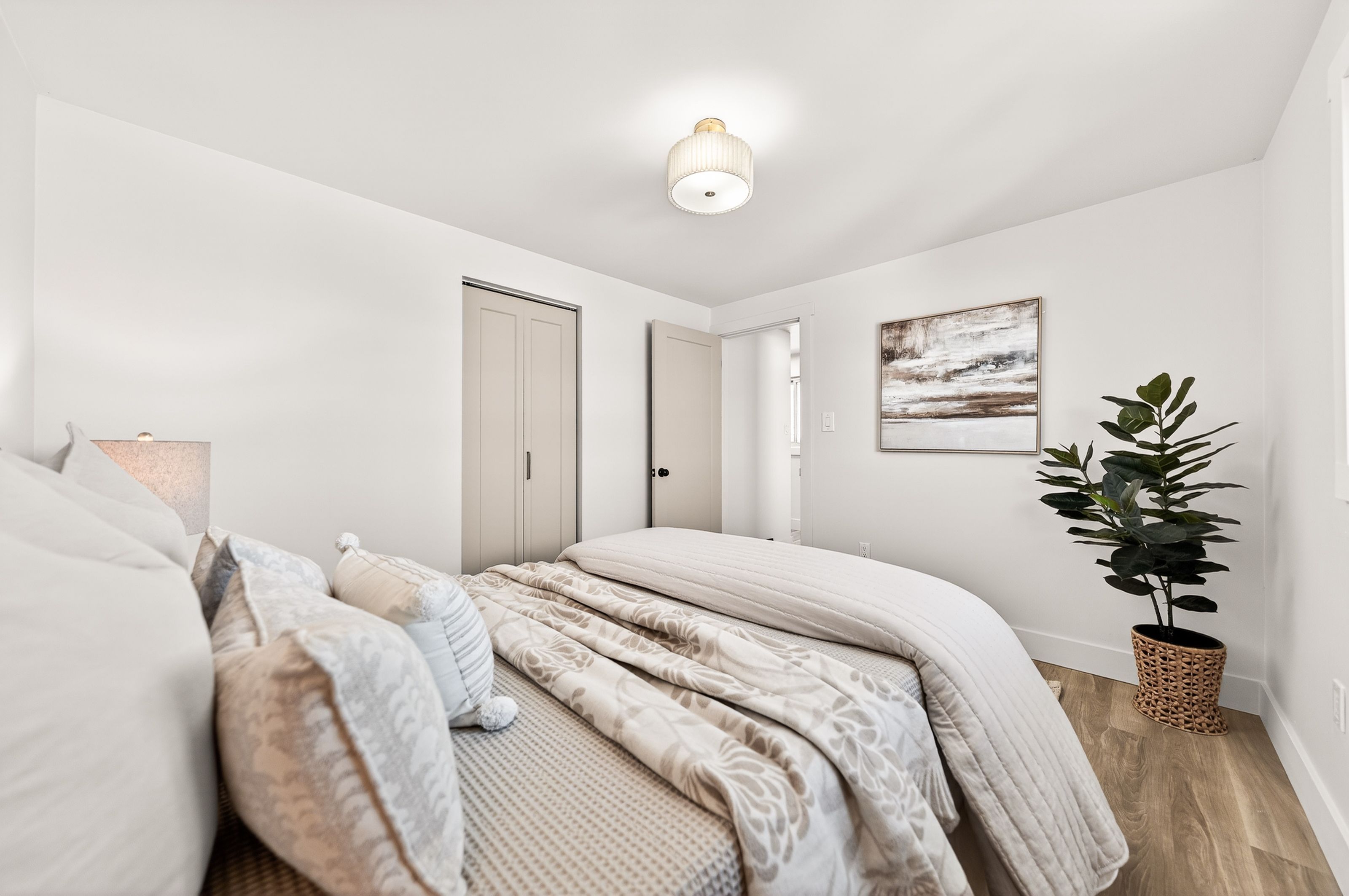 • Stylish updates include a new kitchen and modern bathroom vanities.