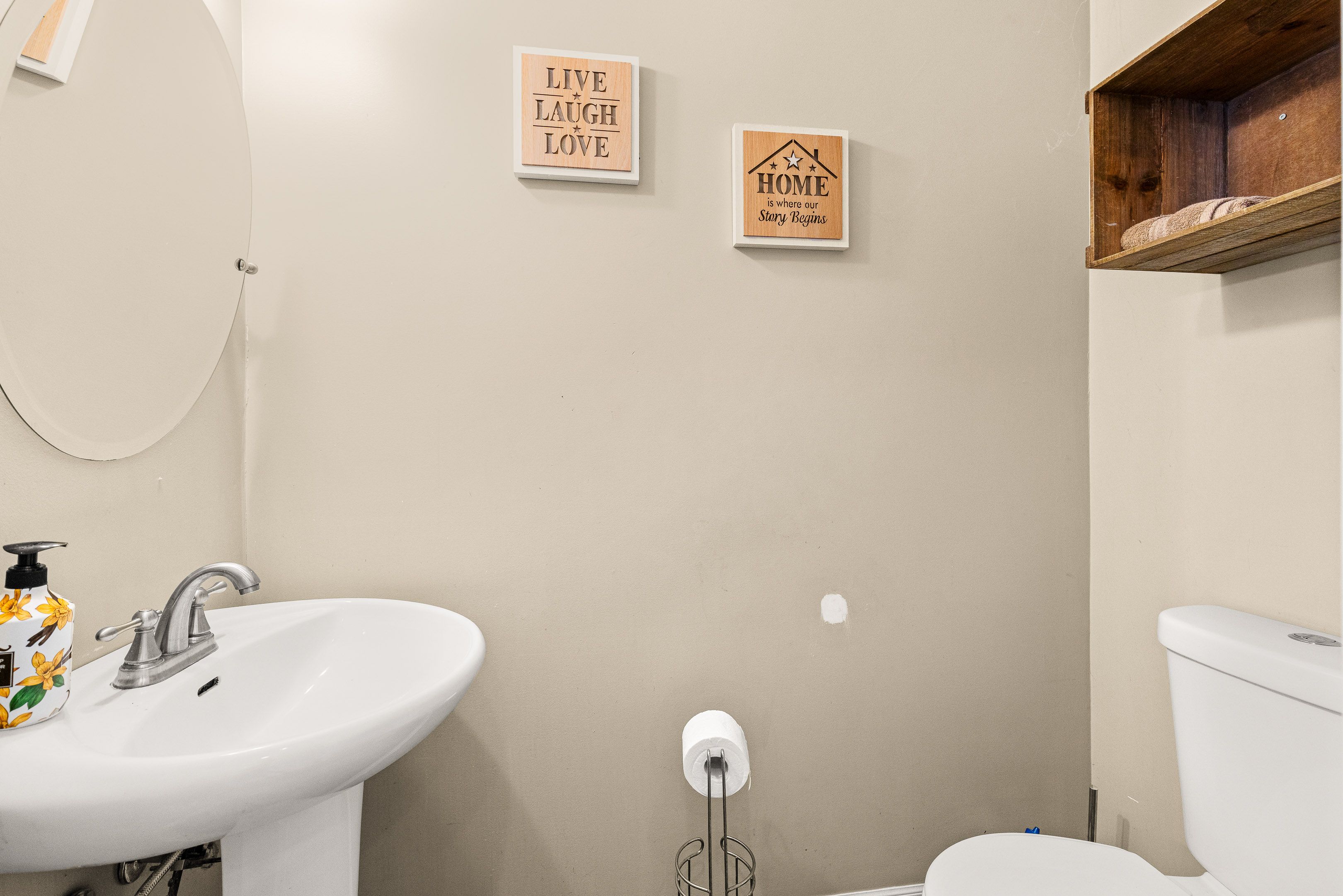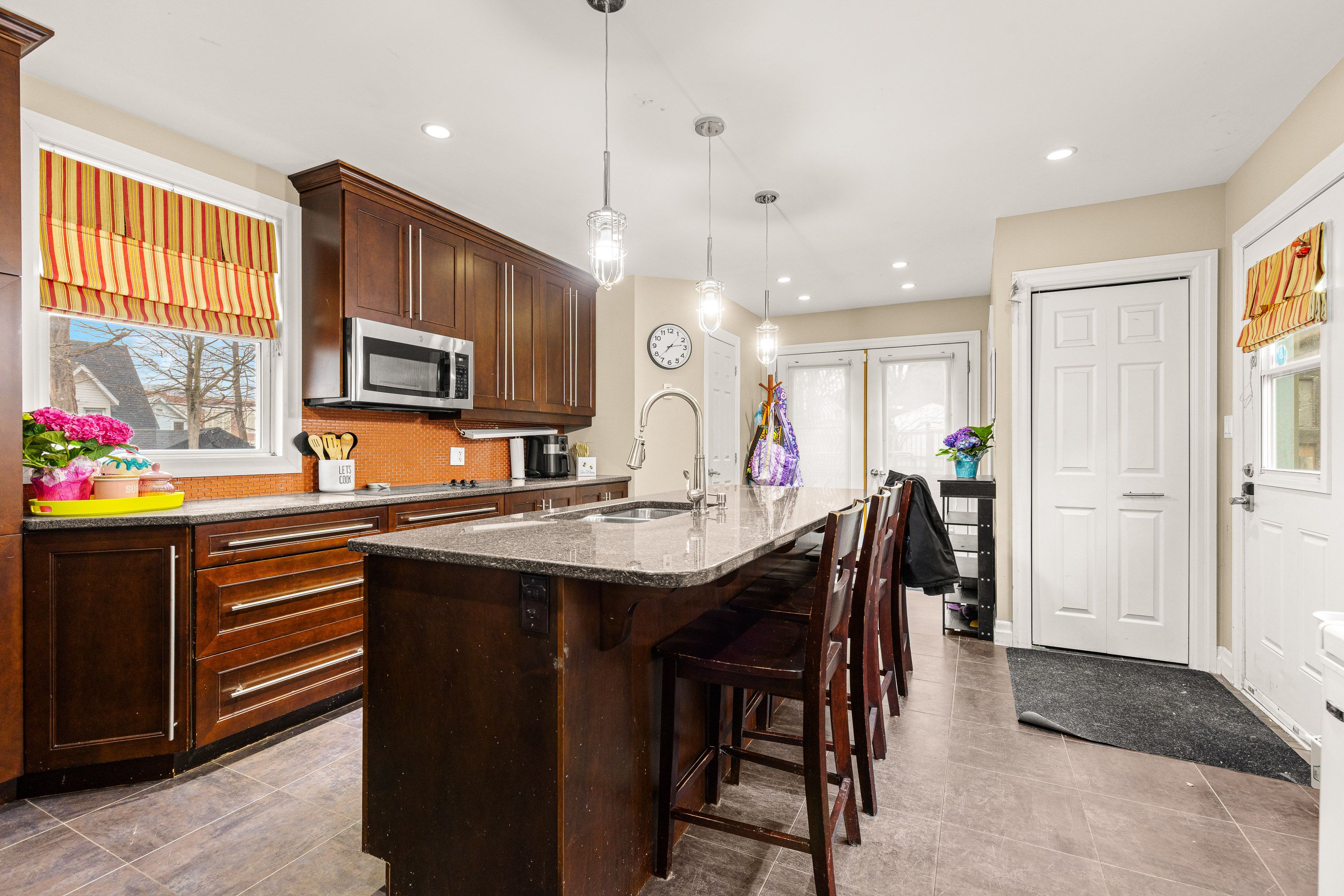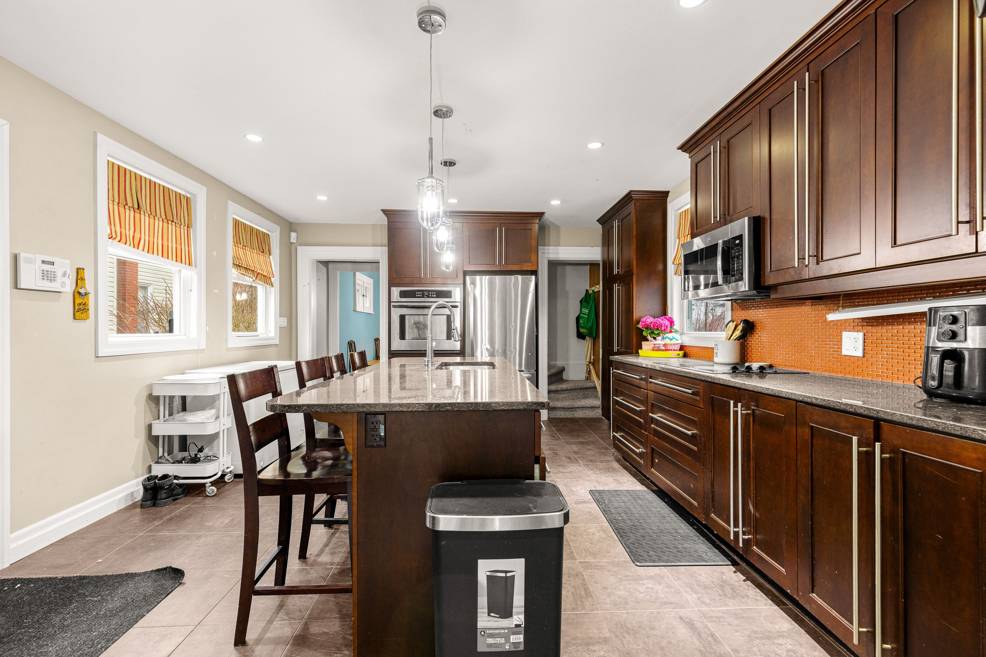 • Updated kitchen with quartz counters and main floor laundry for convenience.