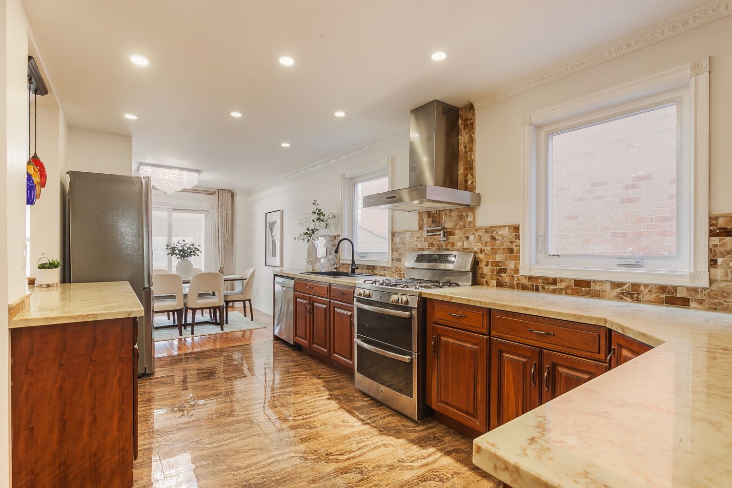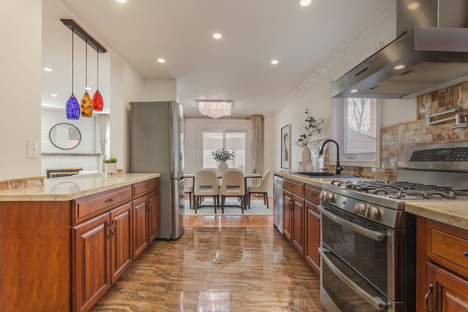 • Finished basement with separate entrance, includes 2 bedrooms and kitchen.
