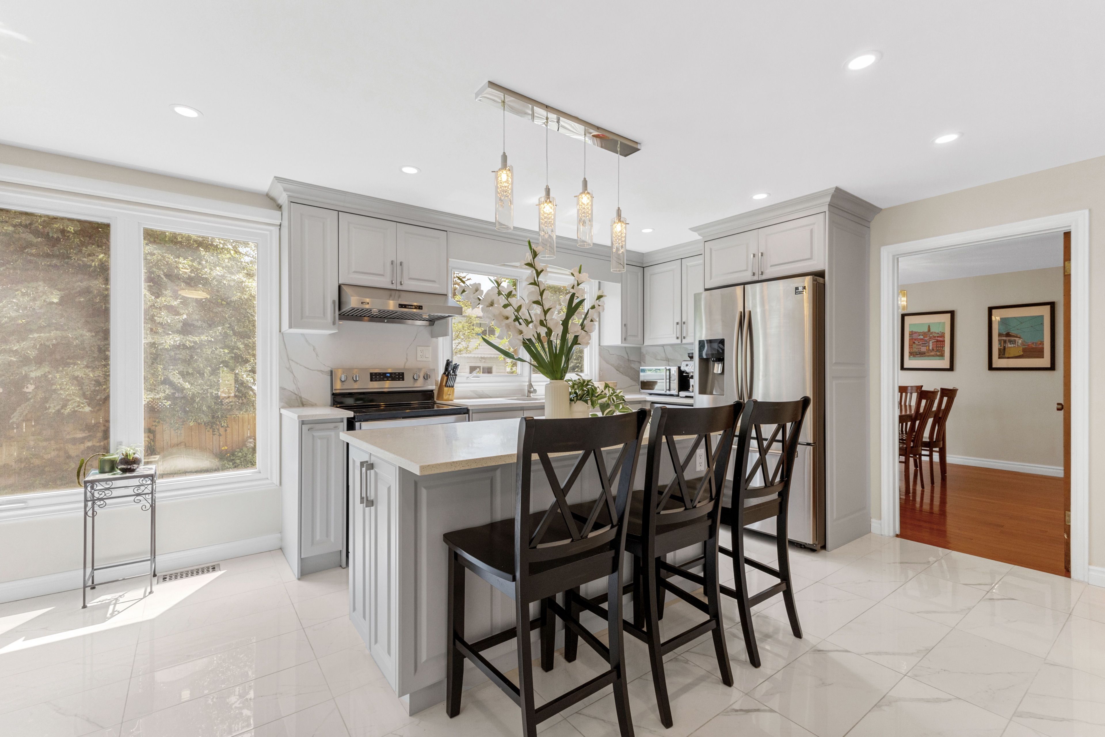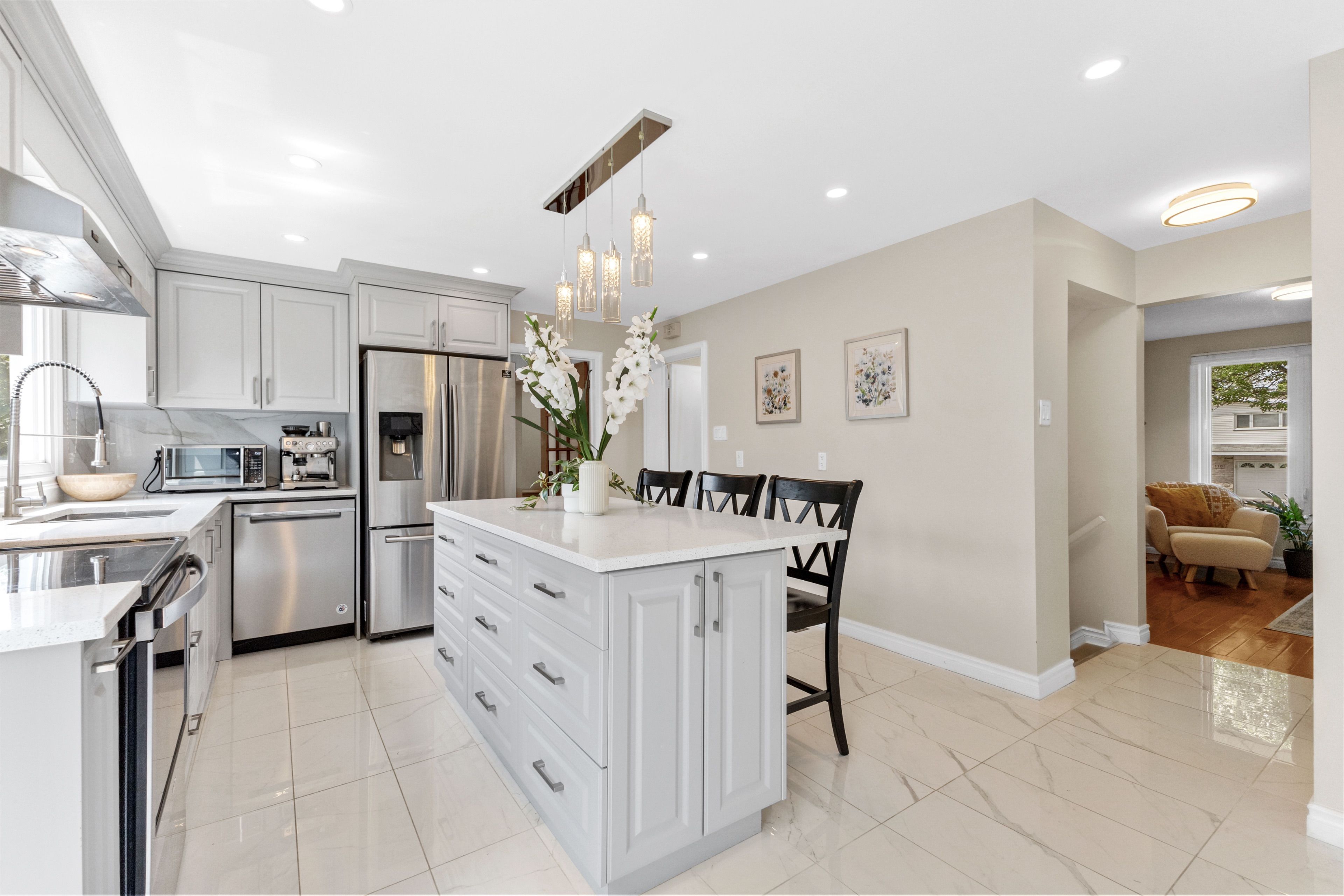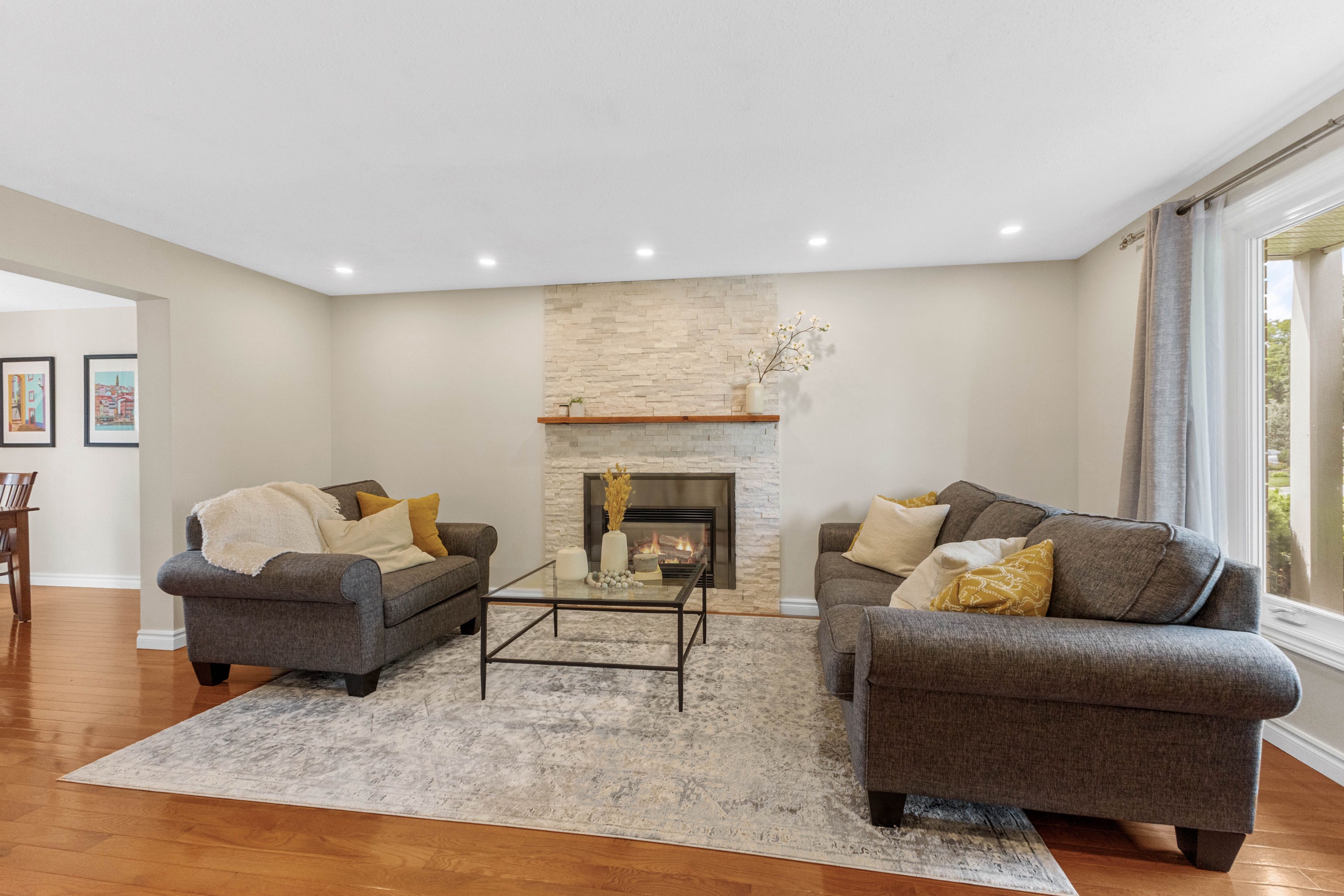 Nestled on a quiet street, this meticulously maintained five-bedroom home is bathed in natural light and offers limitless potential to become yourdream family home. Step inside and be greeted by a bright and airy interior, featuring oversized windows that fill the space with sunlight. Theheart of this home is the beautifully updated and thoughtfully designed kitchen. With easy access to the attached garage, picture windowsoverlooking the private backyard, a large eat-in island and an abundance of storage, the kitchen will become a natural gathering place for yourfamily and guests. The inviting living room is kept cozy by a gas fireplace and flows into the sunny dining room. The bonus room on the mainlevel offers endless possibilities, whether you work from home and need the perfect office or envision a cozy den or creative space. With fivespacious bedrooms upstairs, theres plenty of room for everyone, plus space to host overnight guests comfortably. Downstairs, the finishedbasement provides extra living space adding even more versatility to this exceptional home. Step outside to a large, private backyard offering theperfect oasis for summer barbecues, entertaining, gardening or playing with the kids. You will surely appreciate the peaceful tree-lined streetsand the sense of community that comes with living in bruce farm, along with easy access to schools, parks and amenities.
