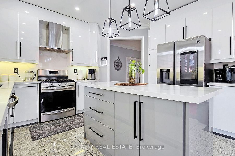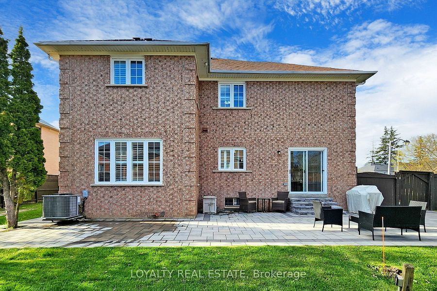 Stunning executive home on prime corner lot with 75ft frontage in markham. This beautifully upgraded, sun-filled home is ideally located in one of markham's most desirable neighborhoods just minutes to hwy 407, costco, sunny food mart, shopping malls, and all amenities. Situated on a premium corner lot with no sidewalk, this home features a professionally interlocked driveway and pathways, offering parking for up to 6 vehicles and potential for a third garage. Inside, you'll find elegant hardwood flooring throughout the living, dining, family room, main floor library, and all bedrooms. The foyer, kitchen, powder room, and hallways are finished with luxurious granite flooring. A grand double-door entry leads into a spacious living room with cathedral ceilings and a stunning circular oak staircase that flows from the second floor to the basement. The main floor also includes a bright, functional library perfect for remote work or study. The large legal basement apartment has four finished rooms and a floor plate of over 1,900 sq ft, offering endless possibilities for recreation or extended family living. Located in a quiet, family-friendly area with ample green space, this home is within walking distance to boxwood public school, a water park, soccer field, and yrt transit. Indoor access to the double garage adds convenience to everyday living. Don't miss your chance to own this exceptional home with top-tier finishes and an unbeatable location!