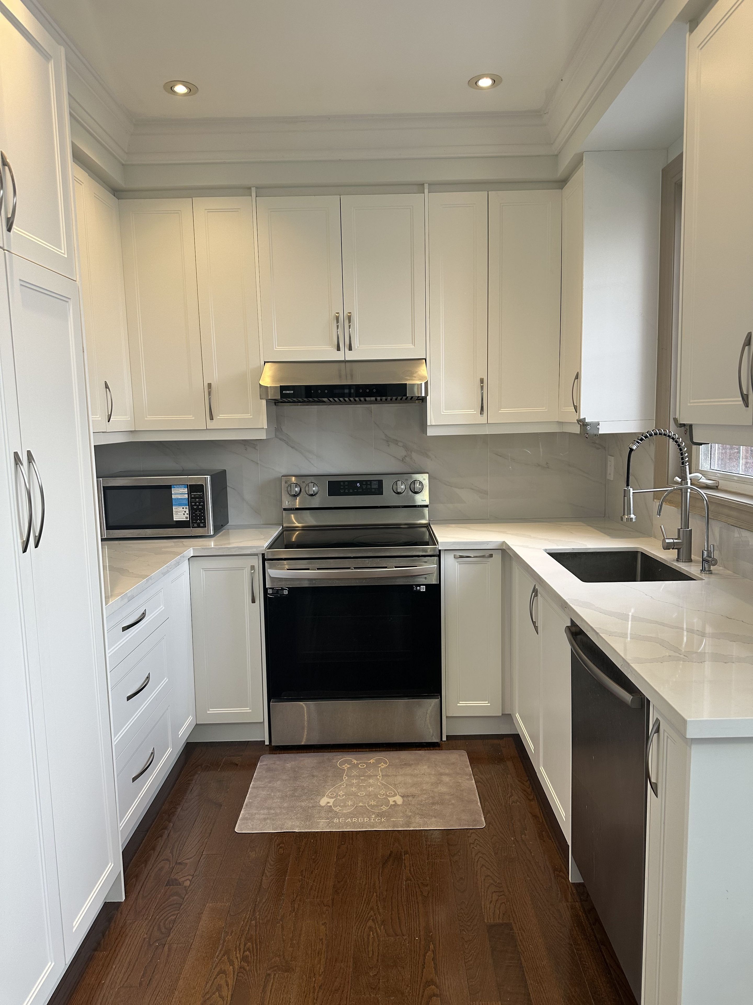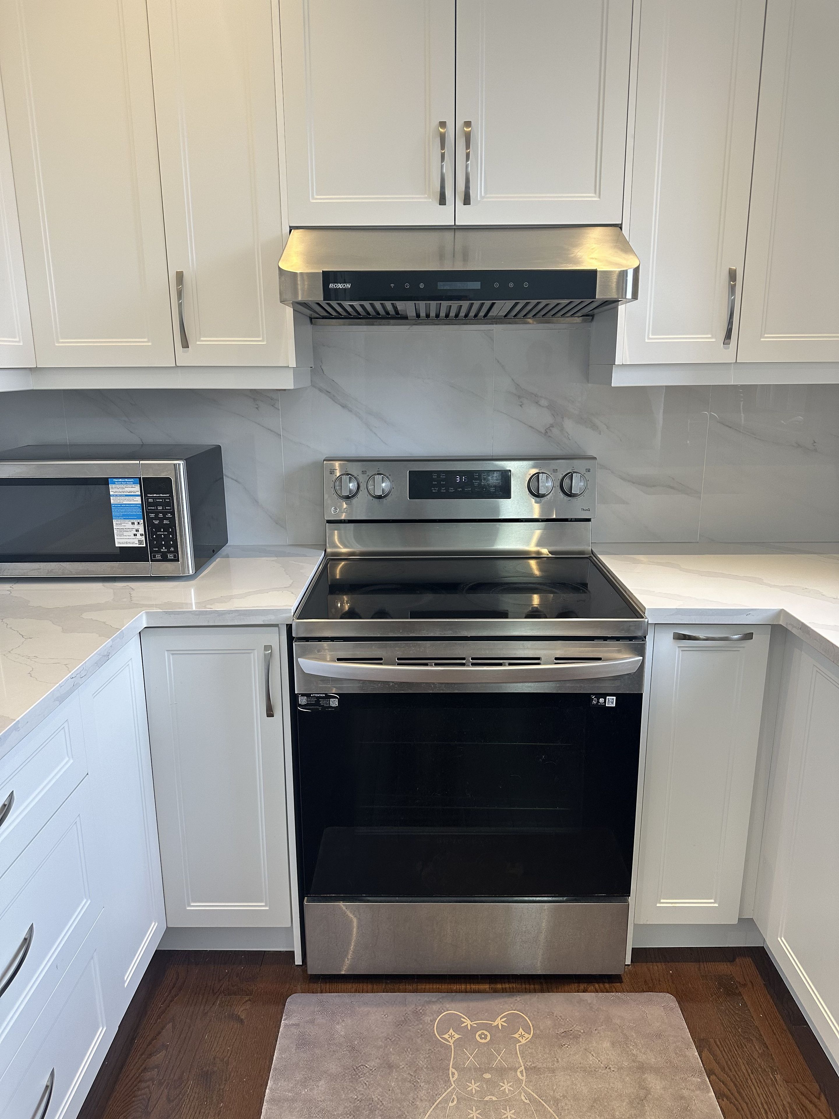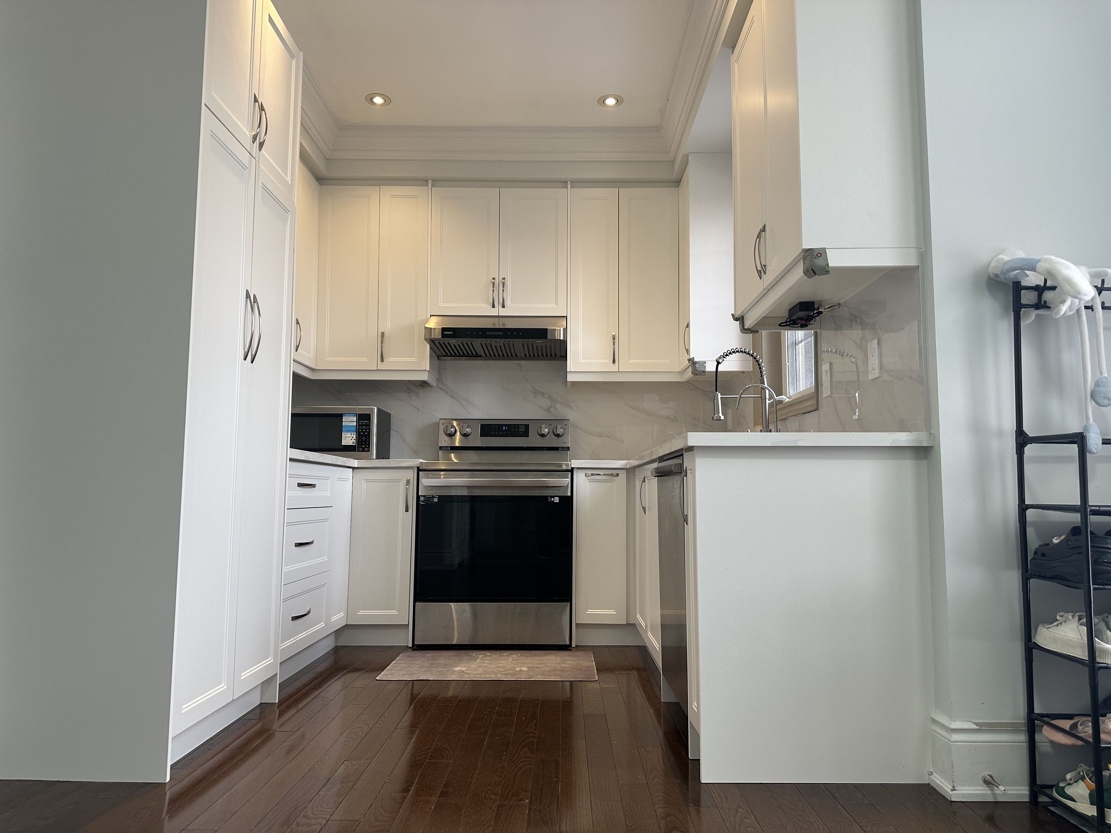 • Brand new renovated kitchen with modern cabinetry and built-in appliances.