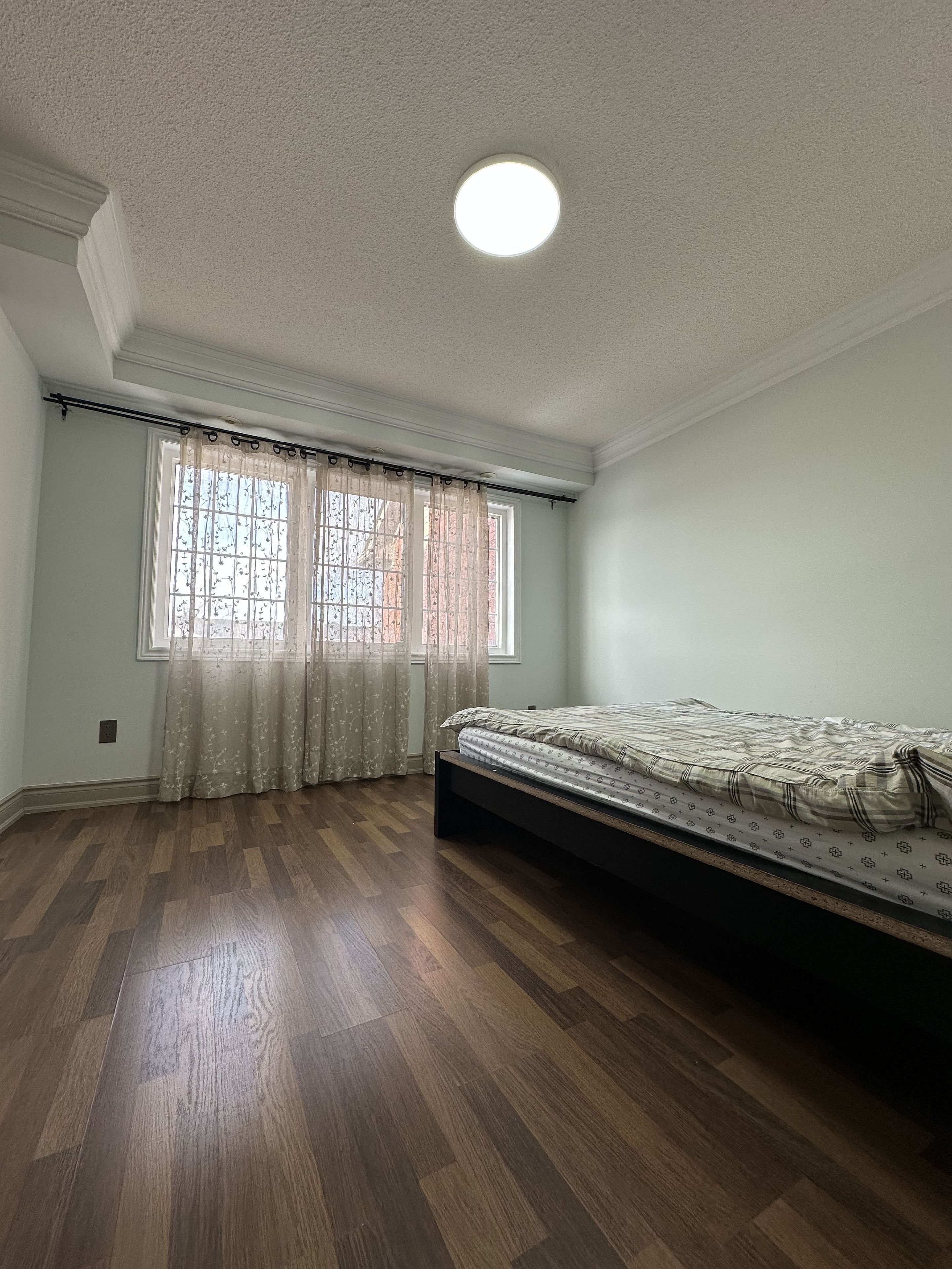 Rare layout with 4 regular bedrooms + 2 rooms on ground level. Spacious freehold townhouse offering a functional and versatile layout ideal for families. Brand new renovated kitchen (2025) featuring modern cabinetry, updated counters and backsplash. Second floor primary ensuite fully renovated (2025) providing a fresh and contemporary feel. Freshly painted throughout in 2025, bright, clean and move-in ready. Modern kitchen with tall cabinets and built-in appliances. Combination of laminate and ceramic flooring. Pot lights. Lots of windows bringing in natural light. Iron stair pickets and oak staircase. Plenty of storage space. Large laundry room. Yard with flagstone patio/walkway perfect for family enjoyment. Property features 2 separate extra rooms and a 3 pc washroom on the lower level with walk-out to ground level.