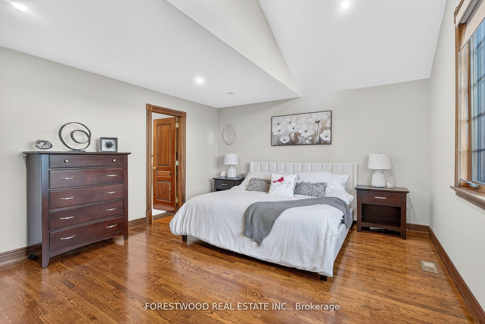 Rare opportunity to own a spacious and beautifully crafted custom-built home situated on a premium 89x158 ft landscaped lot in a sought-after neighborhood. This elegant five-bedroom residence offers over 5,000 sq. Ft. Of total living space, including 4,139 sq. Ft. Above grade plus a fully finished lower level with a separate entranceideal for extended family or rental potential. The main level features a sunken living room with wainscoting and crown moulding, a formal dining area, and a gourmet kitchen with granite countertops, central island, built-in appliances, and a breakfast room with walk-out to a private deck and backyard oasis complete with an above-ground pool. A dramatic family room showcases soaring cathedral ceilings, a west-facing window wall, custom built-in bookcase, and a dual-sided gas fireplace. Upstairs, you'll find five generously sized bedrooms including a luxurious primary suite with a five-piece ensuite and walk-in closet, along with an open hallway overlooking both the foyer and family room. The lower level offers incredible versatility with a spacious great room, second kitchen, wood-burning fireplace, private bedroom with walk-in closet, three-piece bathroom, and a dedicated game room. Additional highlights include an oversized three-car garage, extra-wide six-car concrete driveway, and proximity to parks, top-rated schools, shopping, public transit, and major transportation routes. This one-of-a-kind property combines luxury, functionality, and location an exceptional opportunity not to be missed.
