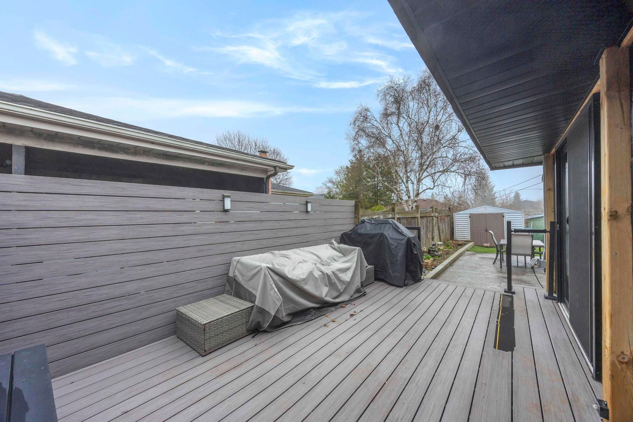 • Beautiful garden and deck in fully fenced backyard for summer fun.