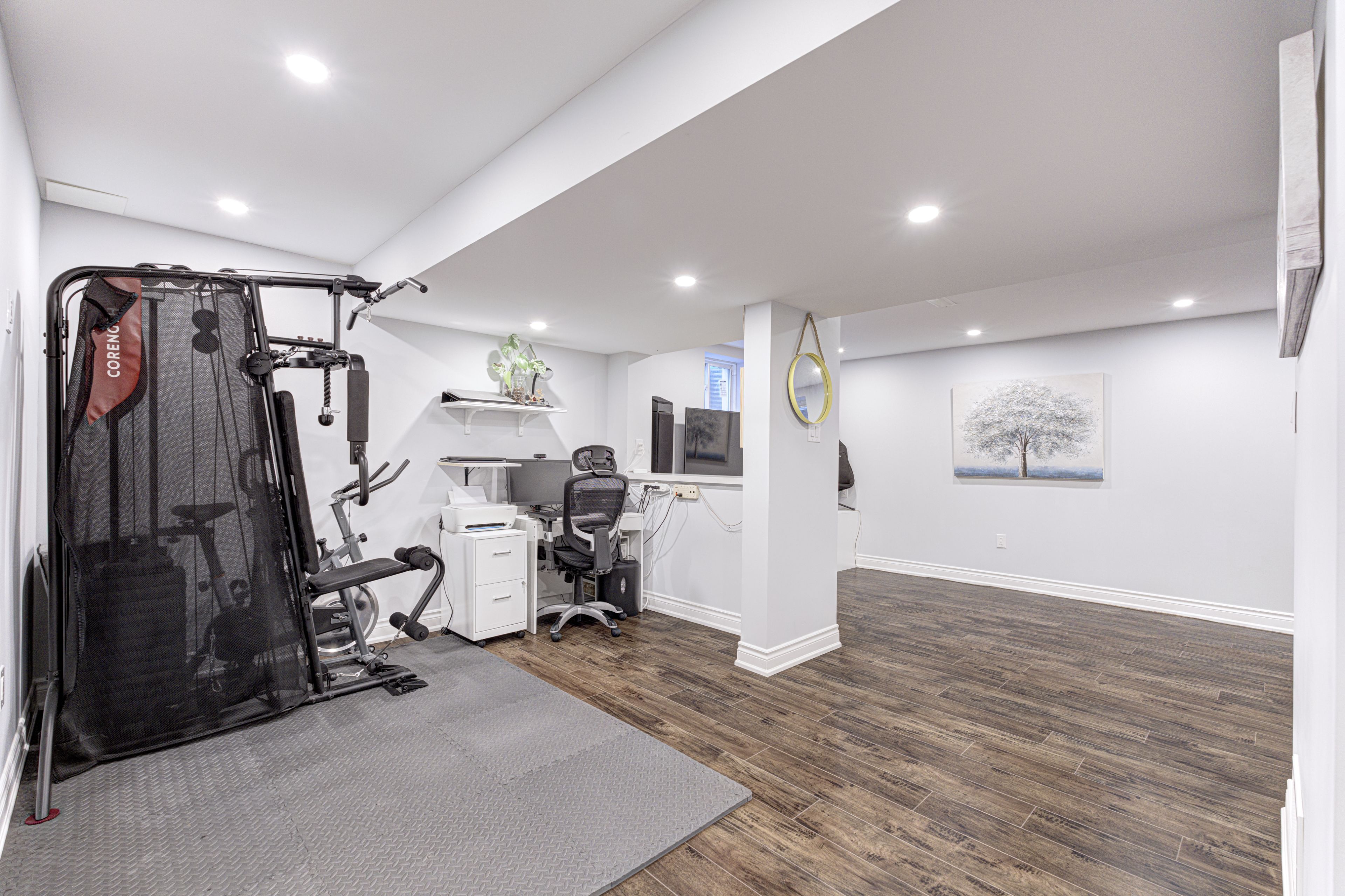• Fully finished basement with entertainment area and extra storage space.