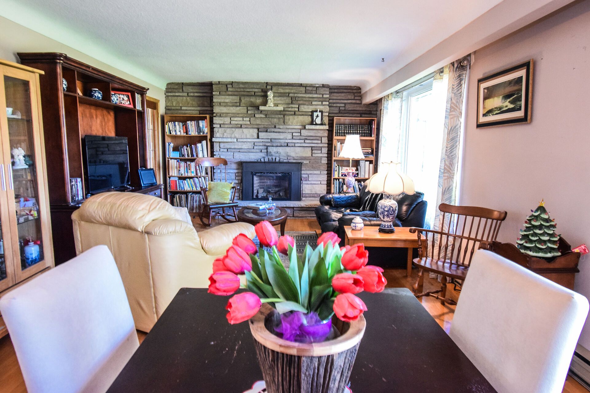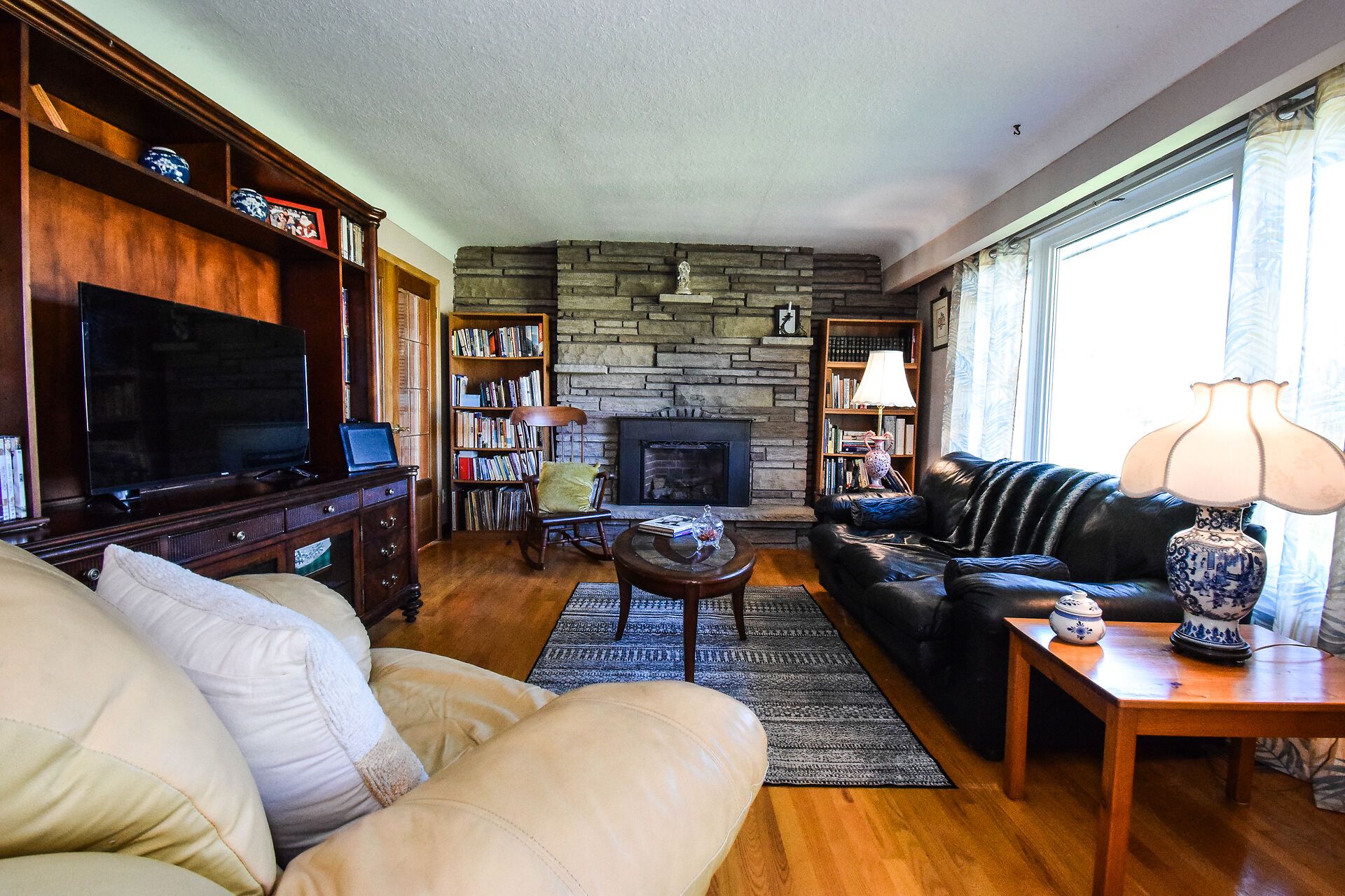 • Cozy living room with a second fireplace and hardwood floors.