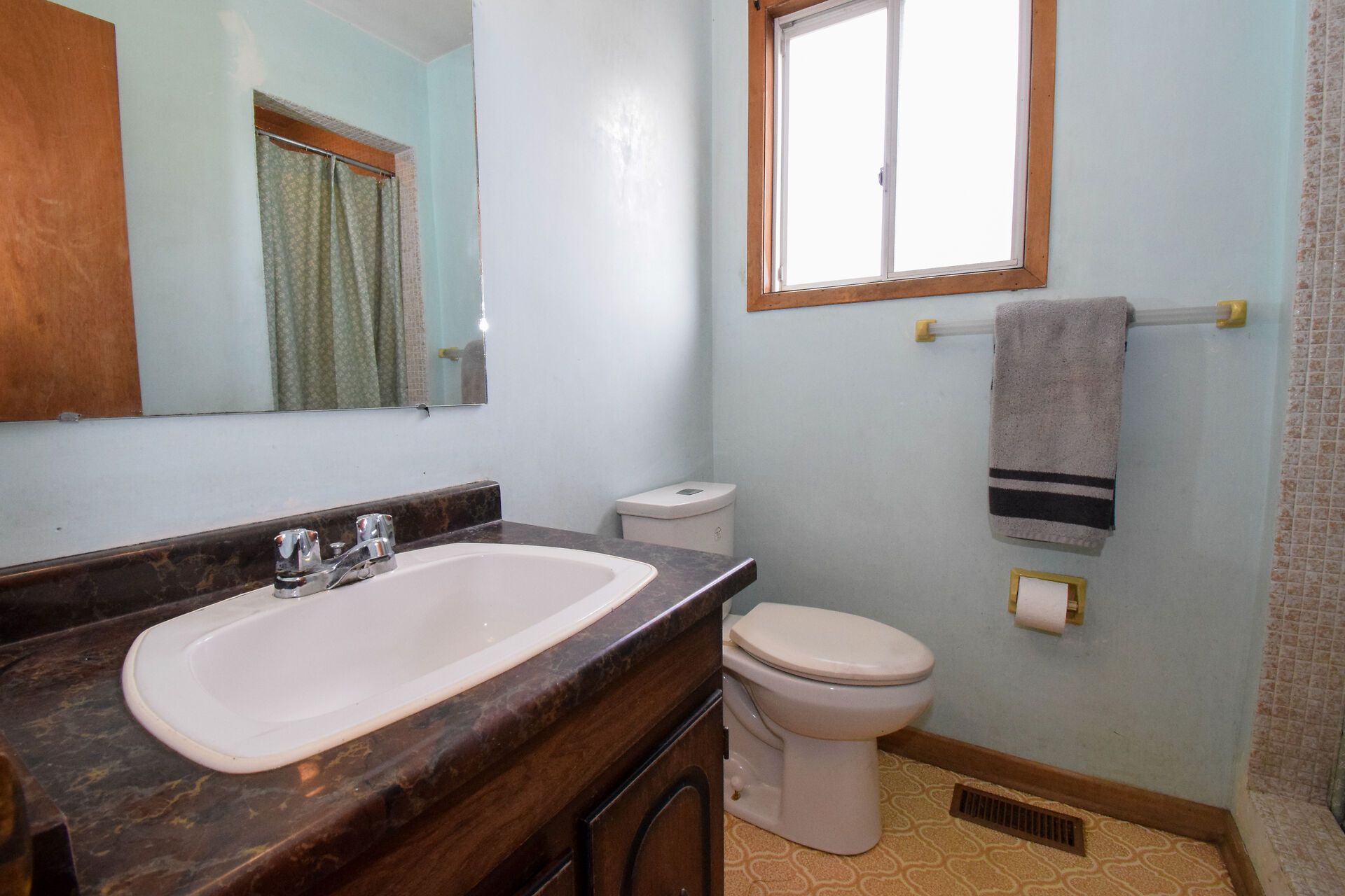 • Private backyard patio with scenic views, great for gatherings.