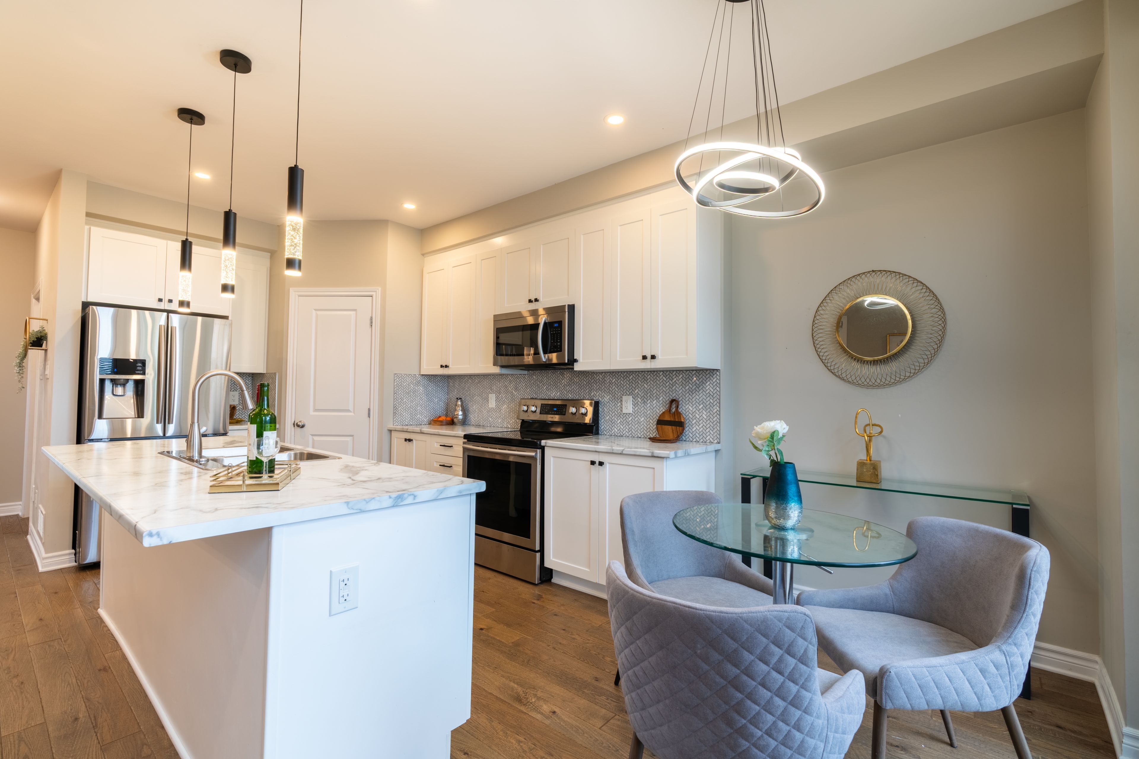 • Open-concept main floor with hardwood flooring and modern kitchen features.