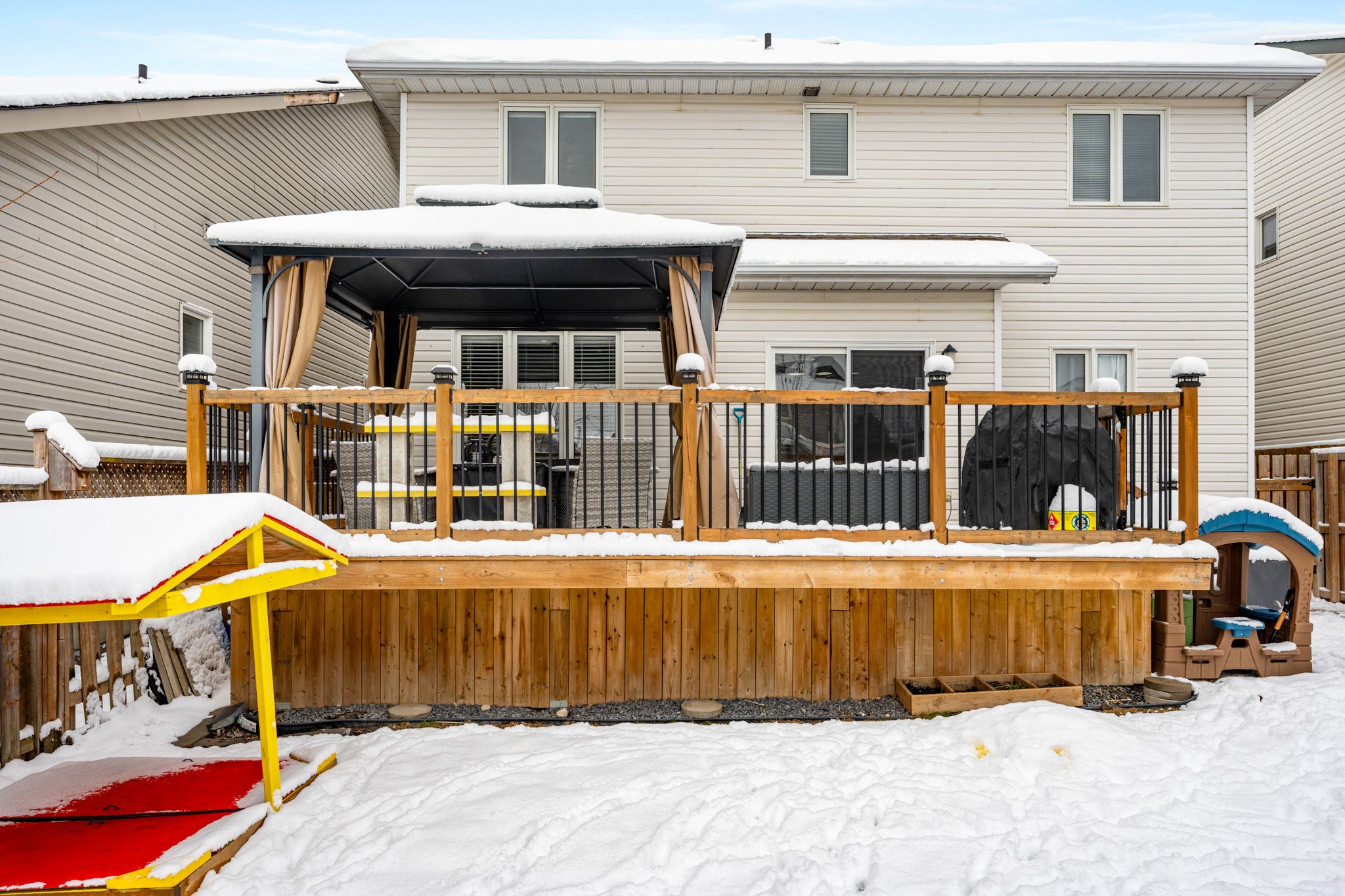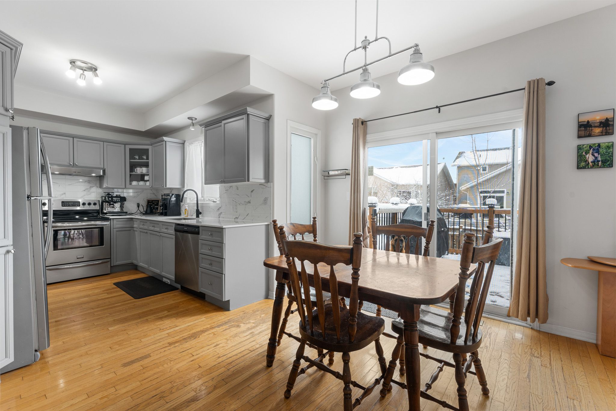 Welcome to 975 bluffwood avenue, where space, comfort, and location come together on a quiet, family-friendly street. This bright and inviting home offers a functional layout designed for real life, with hardwood flooring throughout the main level and continuing into every bedroom upstairs, no carpet, no compromises. The kitchen is the heart of the home, featuring ample cabinetry, 9-foot ceilings, and a sunny dining nook with walk-out to a fully fenced backyard, perfect for kids, pets, and easy summer living. The main floor strikes the ideal balance between open concept and defined spaces, with a cozy family room and gas fireplace flowing off the kitchen, while a separate living room and formal dining area provide flexibility for entertaining or quieter moments. Upstairs, the spacious primary suite offers a walk-in closet and private ensuite, complemented by three additional well-sized bedrooms, a full bath, and the convenience of second-floor laundry. The fully finished basement extends your living space with room for a home gym, rec area, or potential fifth bedroom, plus a rough-in for a future shower-giving you options as your needs evolve. Located just minutes from highway 401, the waaban crossing, cfb kingston, schools, parks, and everyday amenities, this is a home that checks all the boxes for growing families and smart buyers alike.
