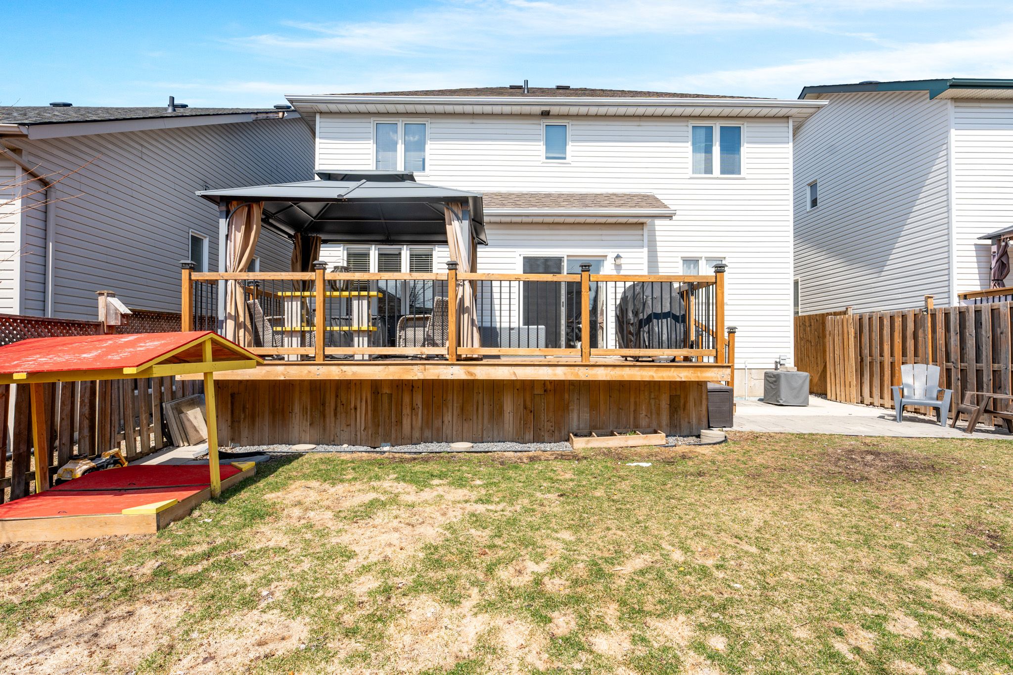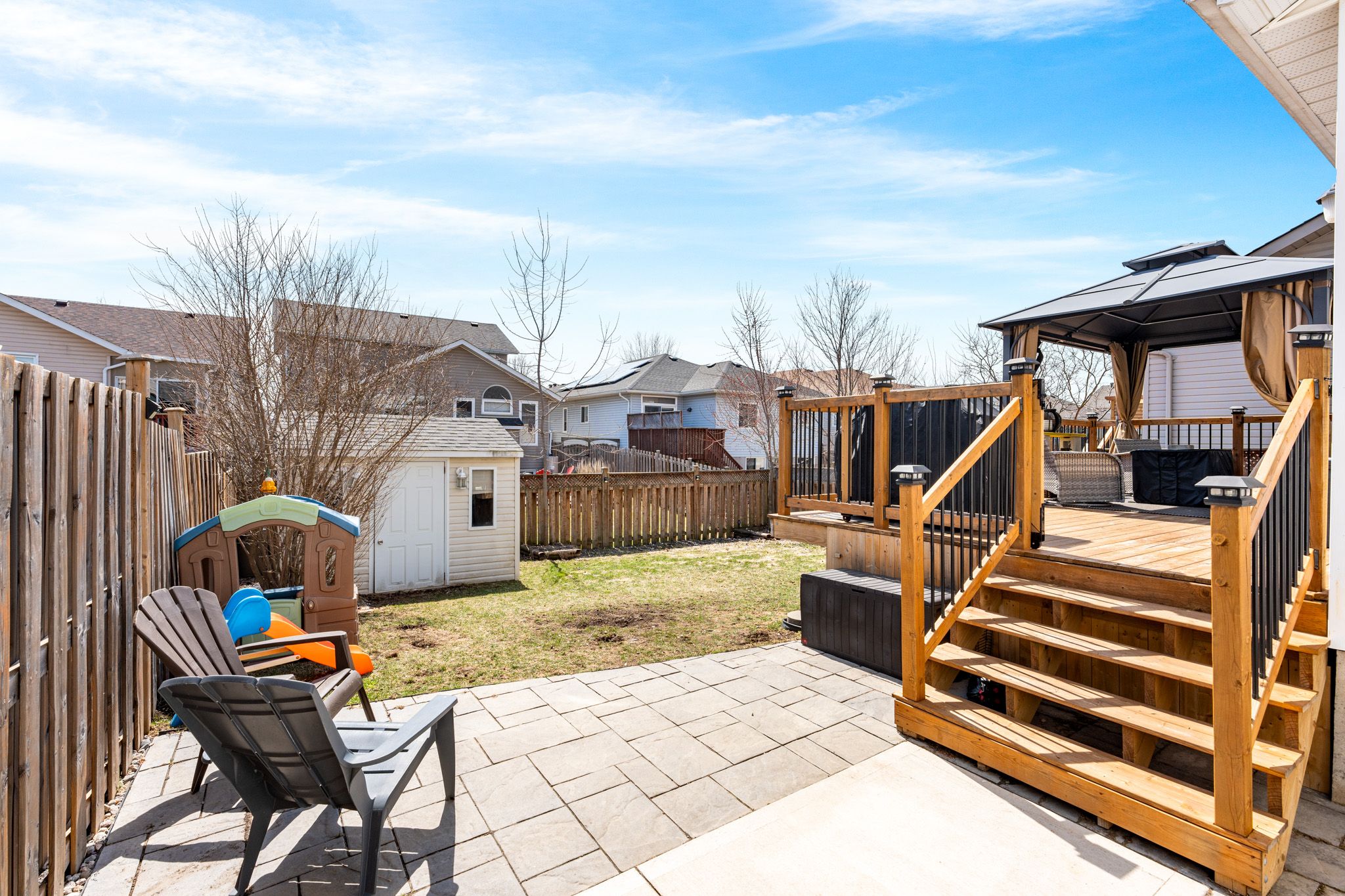 Welcome to 975 bluffwood avenue, where space, comfort, and location come together on a quiet, family-friendly street. This bright and inviting home offers a functional layout designed for real life, with hardwood flooring throughout the main level and continuing into every bedroom upstairs, no carpet, no compromises. The kitchen is the heart of the home, featuring ample cabinetry, 9-foot ceilings, and a sunny dining nook with walk-out to a fully fenced backyard, perfect for kids, pets, and easy summer living. The main floor strikes the ideal balance between open concept and defined spaces, with a cozy family room and gas fireplace flowing off the kitchen, while a separate living room and formal dining area provide flexibility for entertaining or quieter moments. Upstairs, the spacious primary suite offers a walk-in closet and private ensuite, complemented by three additional well-sized bedrooms, a full bath, and the convenience of second-floor laundry. The fully finished basement extends your living space with room for a home gym, rec area, or potential fifth bedroom, plus a rough-in for a future shower-giving you options as your needs evolve. Located just minutes from highway 401, the waaban crossing, cfb kingston, schools, parks, and everyday amenities, this is a home that checks all the boxes for growing families and smart buyers alike.