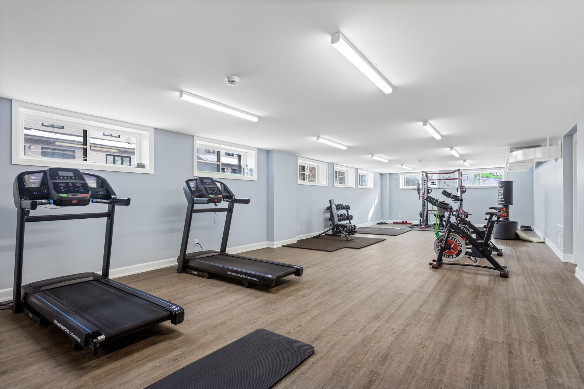• On-site fitness room and party room for activities.