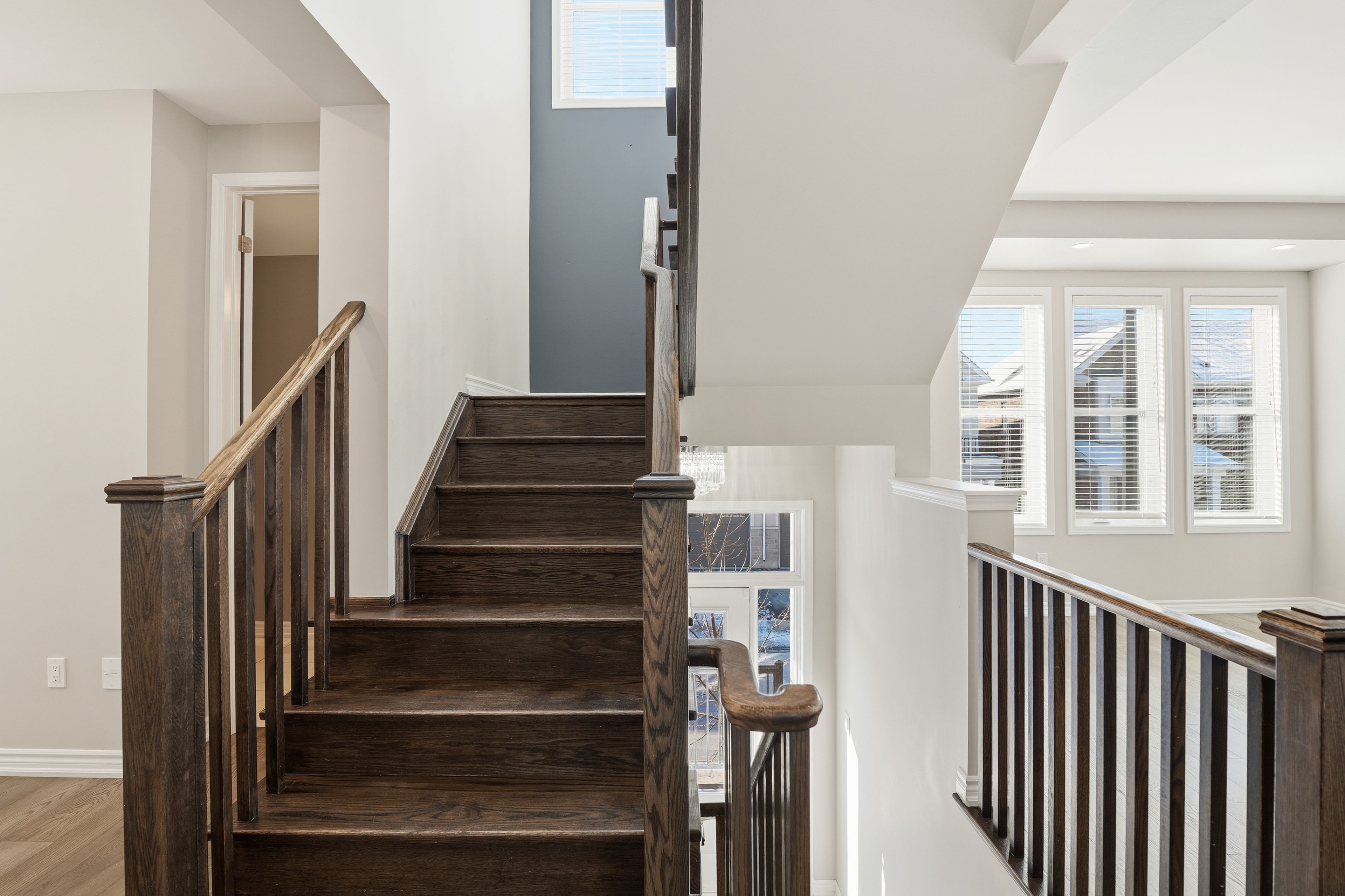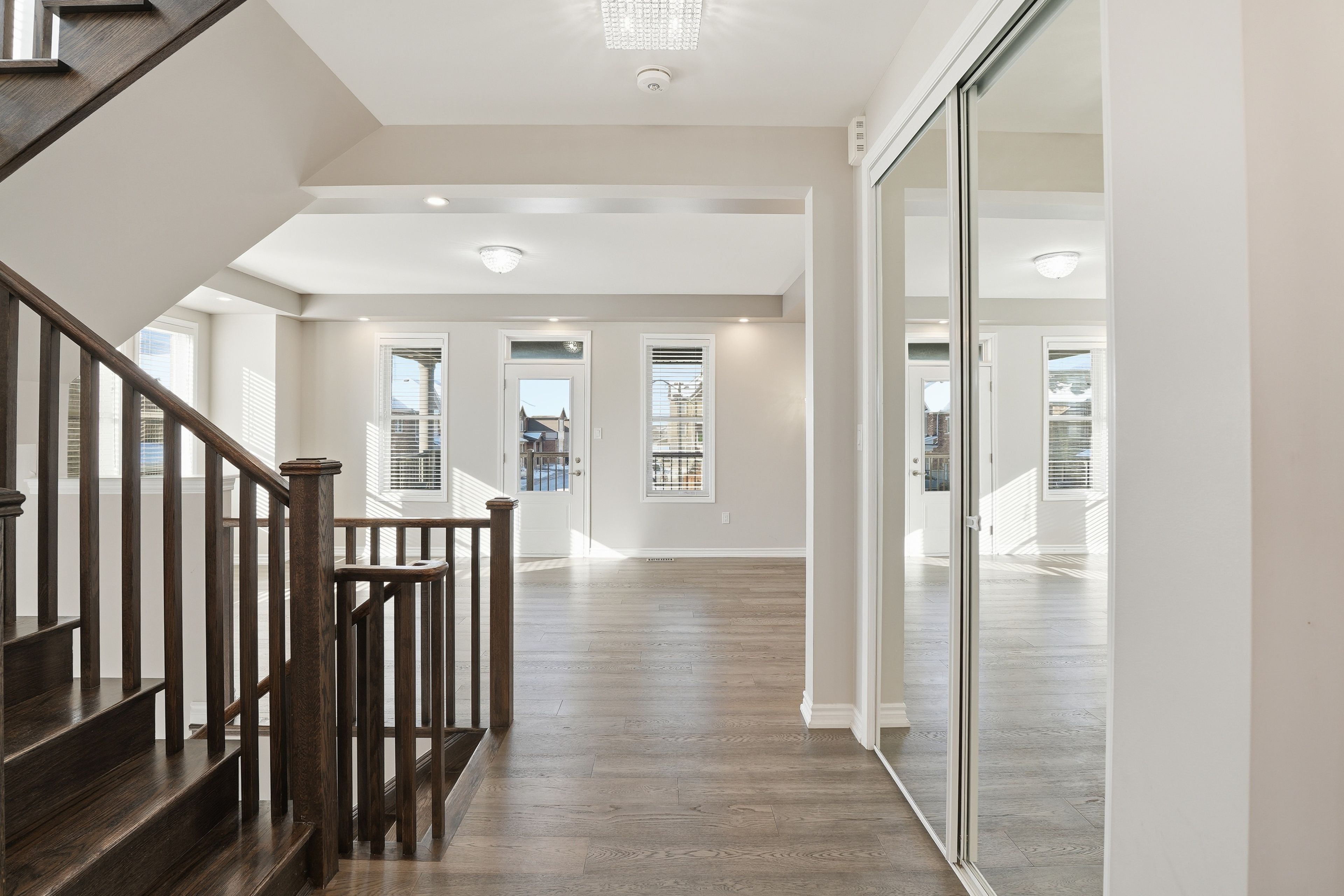Spacious, bright & tastefully upgraded 4-bedroom corner townhome in one of milton's most sought-after neighbourhoods. This new-build home features 9-ft ceilings on the main and lower levels, 7" hardwood flooring on the main and second floors, and 3. 5 upgraded bathrooms with stone countertops. The finished basement includes a full bathroom and offers excellent space for an older child, young adult, or potential in-law suite. Enjoy modern, wifi-enabled appliances, direct access from the 2-car garage, and two private balconies for outdoor living. A well-designed, spacious layout - a must see!