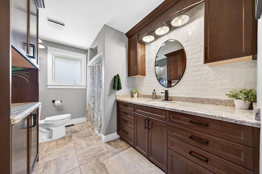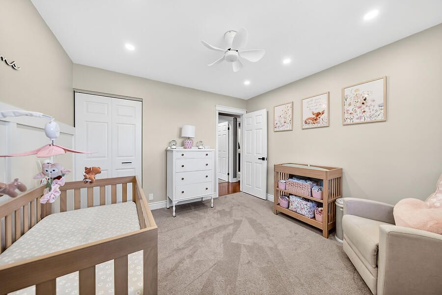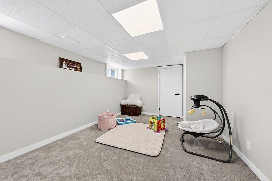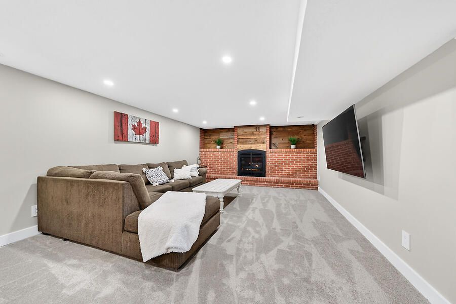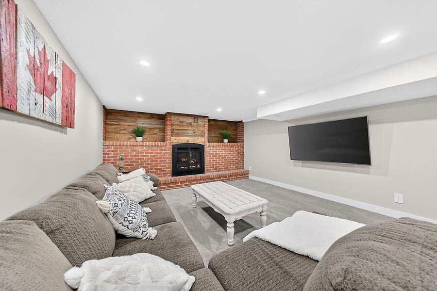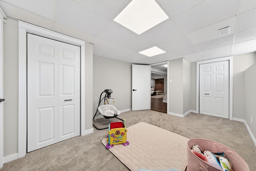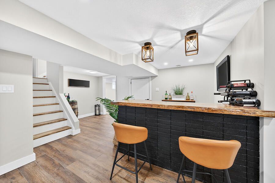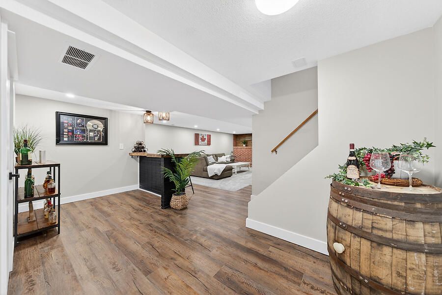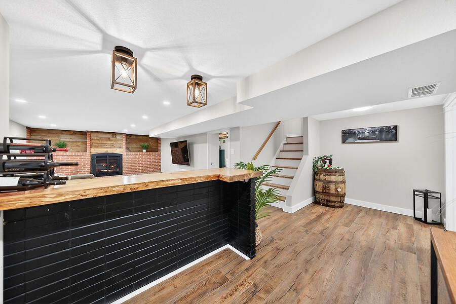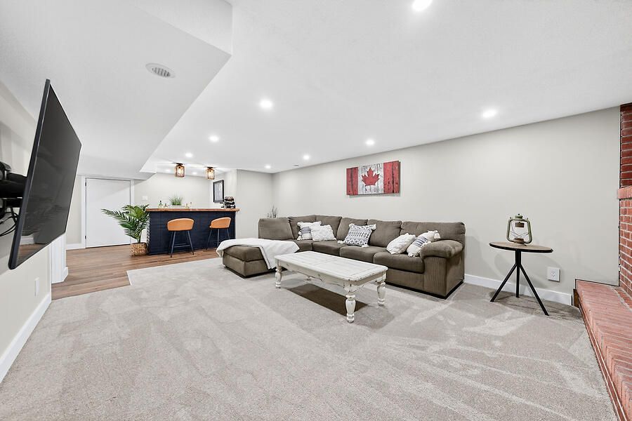 • Spacious lower level with soundproofing, family room, and bar area.