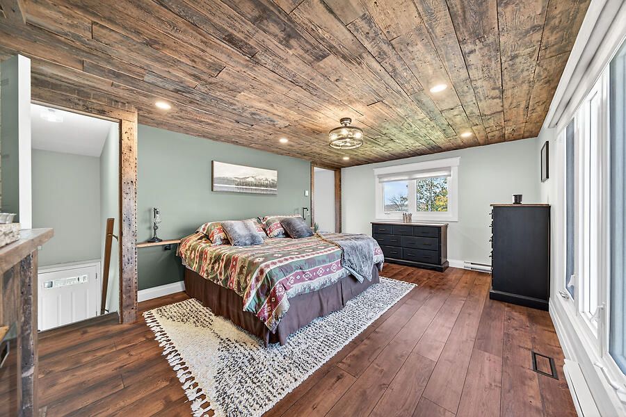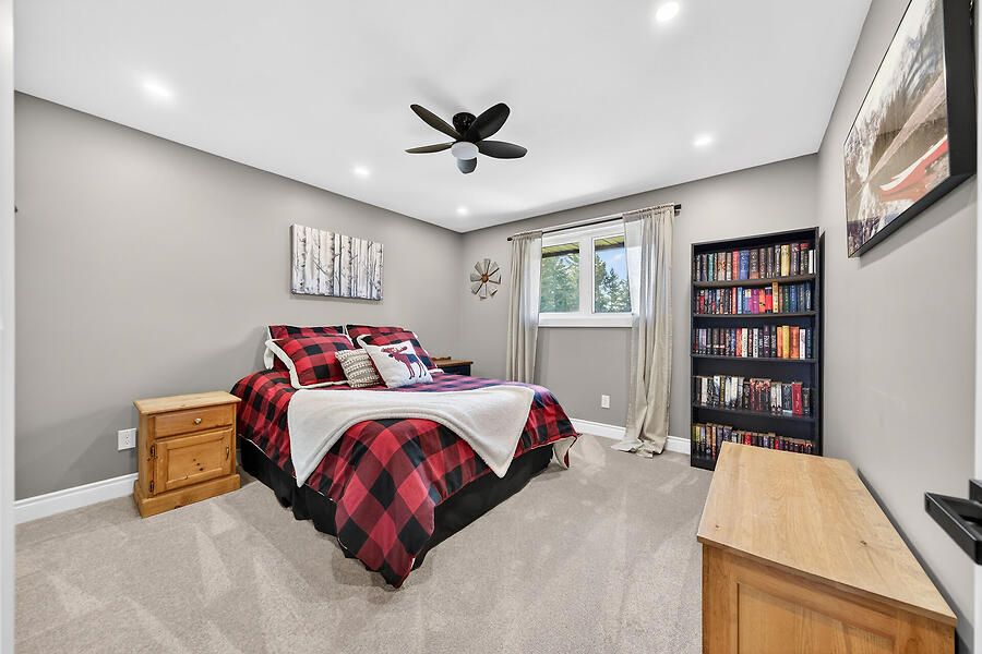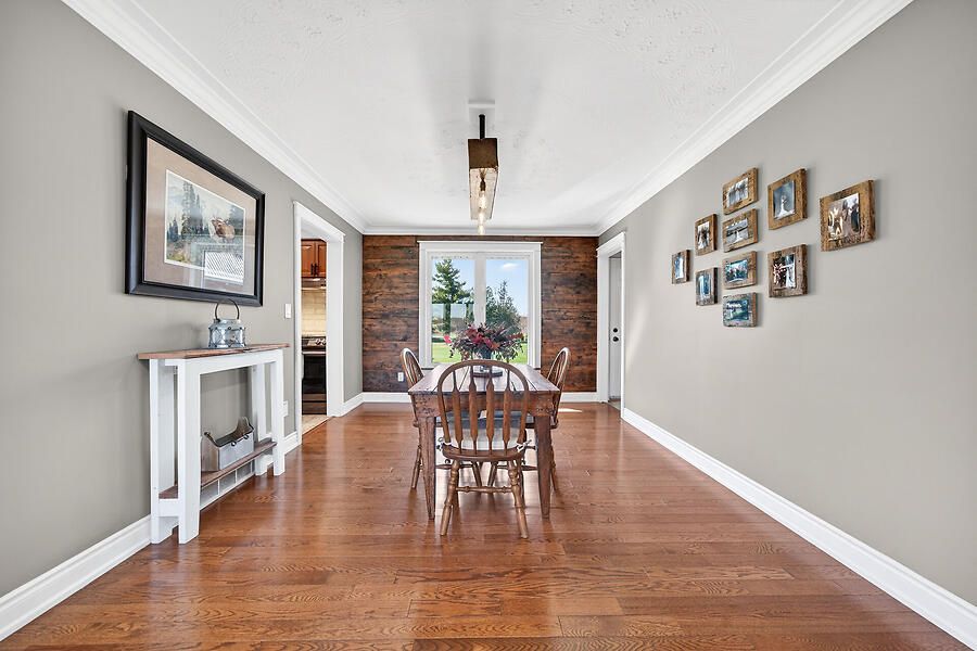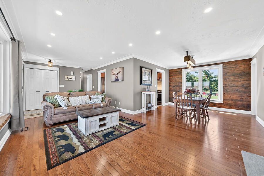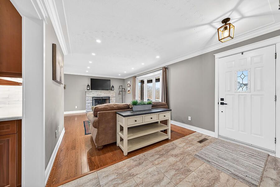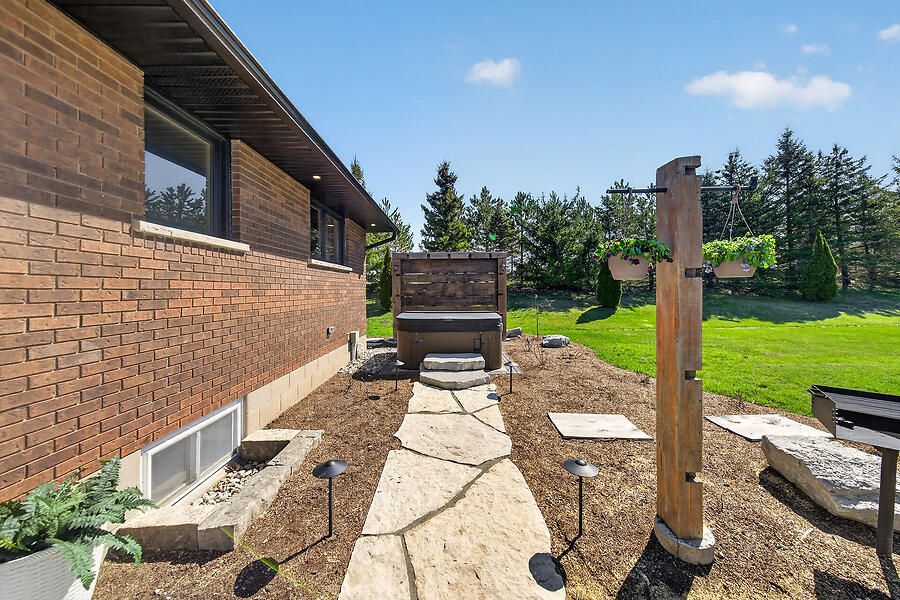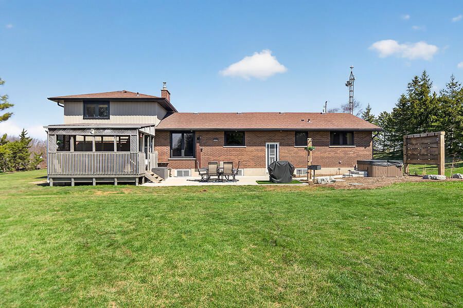 Welcome to this country 4+1, 2 full bath home with natural gas heating, set on a private lot in west lincoln. The main floor features an l-shaped living and dining room with hardwood floors and a bay window overlooking the expansive front porch. The upgraded kitchen offers custom cabinetry and access to the backyard patio, hot tub, and lower level. There are 3 main floor bedrooms and a beautifully renovated custom bathroom. Off the dining room, the upper-level primary retreat offers a separate entrance, electric fireplace, reclaimed wood accents, and an upgraded ensuite with walk-in shower. The recently renovated lower level includes soundproofing, new flooring, a spacious open-concept family room with wall-to-wall brick and natural gas fireplace insert, bar area with live-edge finishes, an additional bedroom with walk-up access to the attached garage, plus storage and utility rooms. The south-facing outdoor space is perfect for relaxing and enjoying sunset spritzes. Bonus features include reclaimed wood and natural stone finishes, extensive pot lighting, forced air natural gas heating, and generator.