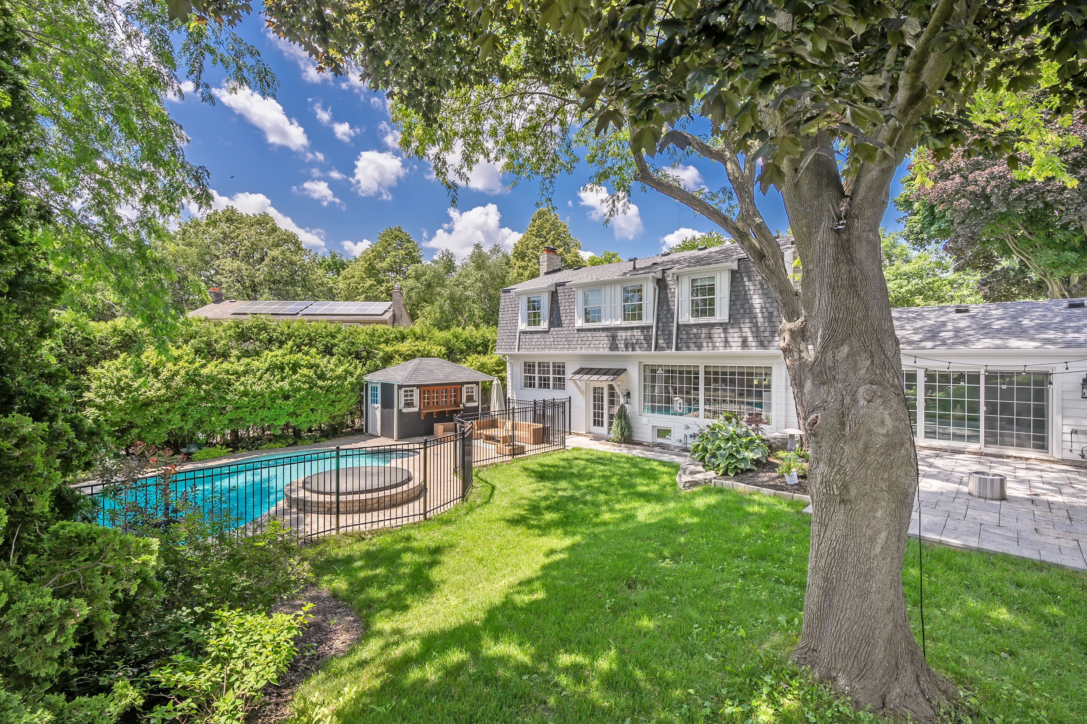 Discover unparalleled elegance in this fully renovated 4+1 bed, 4-bath home set on a private cul-de-sac in prestigious lorne park. Every detail of this residence has been meticulously upgraded to the highest standard. The exterior boasts exquisite custom stonework, a breathtaking porch complementing the landscaping & private backyard oasis w/ a pool, hot tub & pool house. Inside, experience high-end finishes including custom millwork, premium oak flooring, stone accents utilizing fine canadian sourced stone & more. The gourmet kitchen boasts high-end appliances, extensive counter space, a custom island & butlers pantry. Spa-like custom bathroom finishes throughout add to the home's exceptional style. A classic 4 bed layout on the upper floor offers spacious light filled rooms w/ ample storage. The fully finished lower level offers space for the entire family w/ a living area, workout/play space & an ultra functional laundry room. Don't miss out on this truly special home.