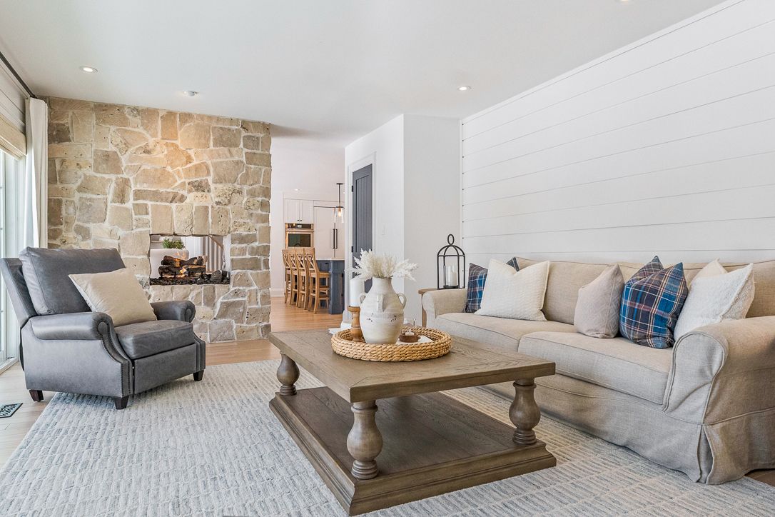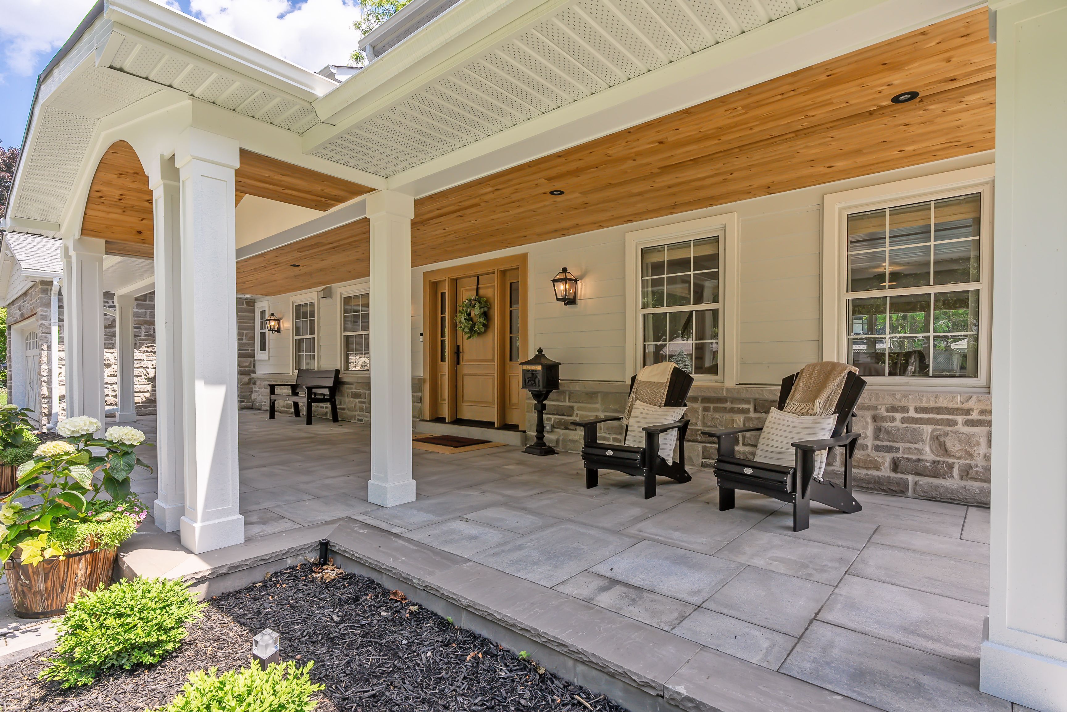 • Stunning exterior with custom stonework and luxurious porch.