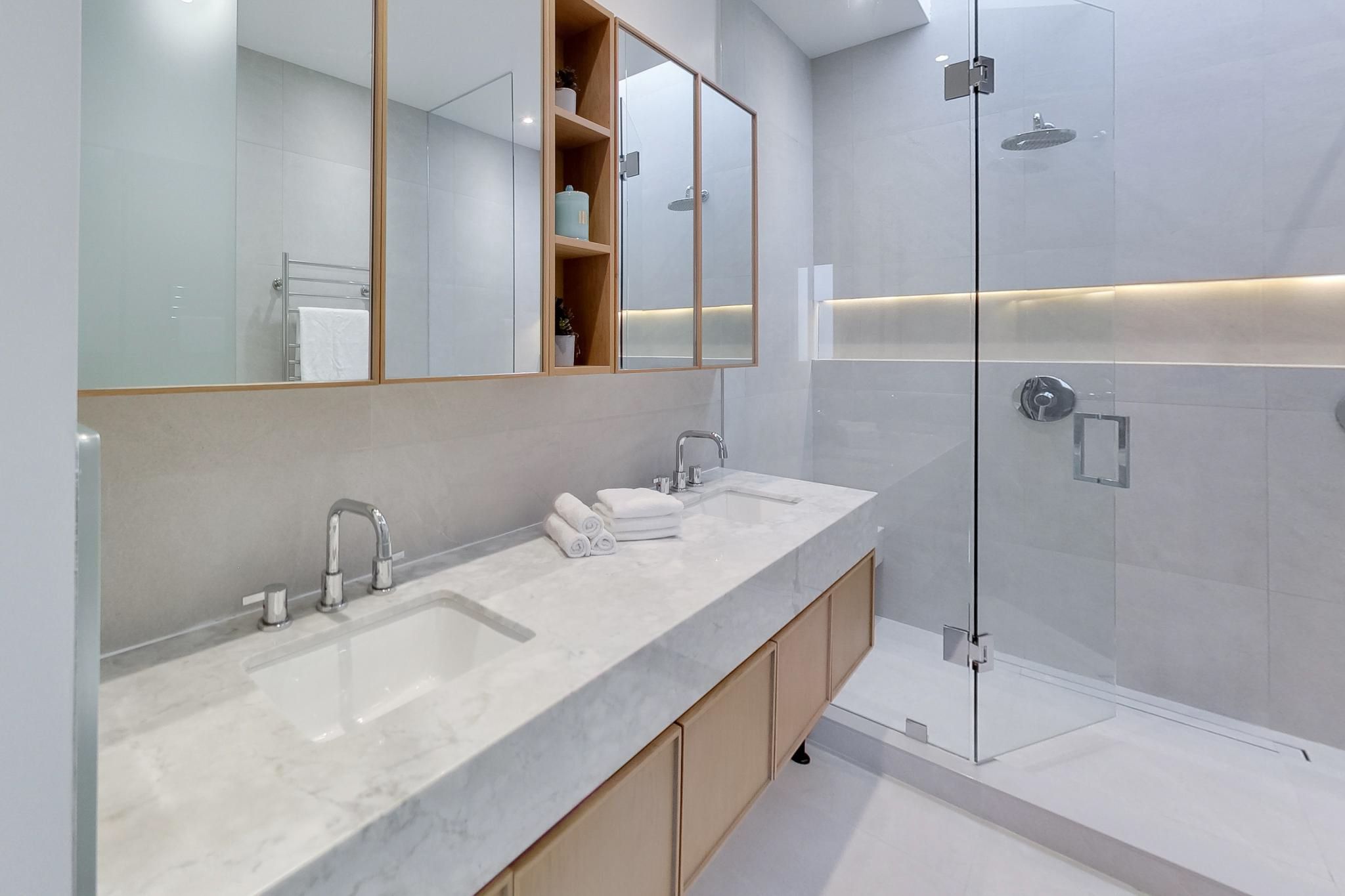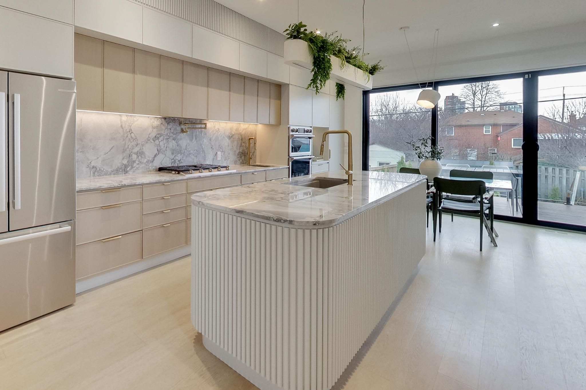 Built in 2021 by an architect-owner for personal use, this exceptional home offers outstanding craftsmanship and thoughtful design throughout. The open-concept main floor features a spacious vestibule with built-in closets, herringbone stone floors, and a stylish 2-piece powder room. A main floor office with floor-to-ceiling windows brings in abundant natural light, flowing seamlessly into the living and dining areas. The chef's kitchen is highlighted by an oversized island, custom millwork, and excellent storage, while the adjacent family room with built-in homework area creates the ideal space for everyday living. Upstairs, there are four spacious bedrooms, all with generous closet space and large windows. The primary suite features a walk-in/walk-through closet and a spa-like ensuite with skylights, double vanity, and glass shower with dual shower heads. The lower level offers flexible living space with a large recreation room, walkout to the backyard, nanny suite, and a separate renovated one-bedroom apartment with its own front entrance. The two spaces can easily be merged with the removal of one simple wall. Located in desirable glen park, close to highways, yorkdale, local shops, parks, community centres, places of worship, and libraries, this home is truly impressive.