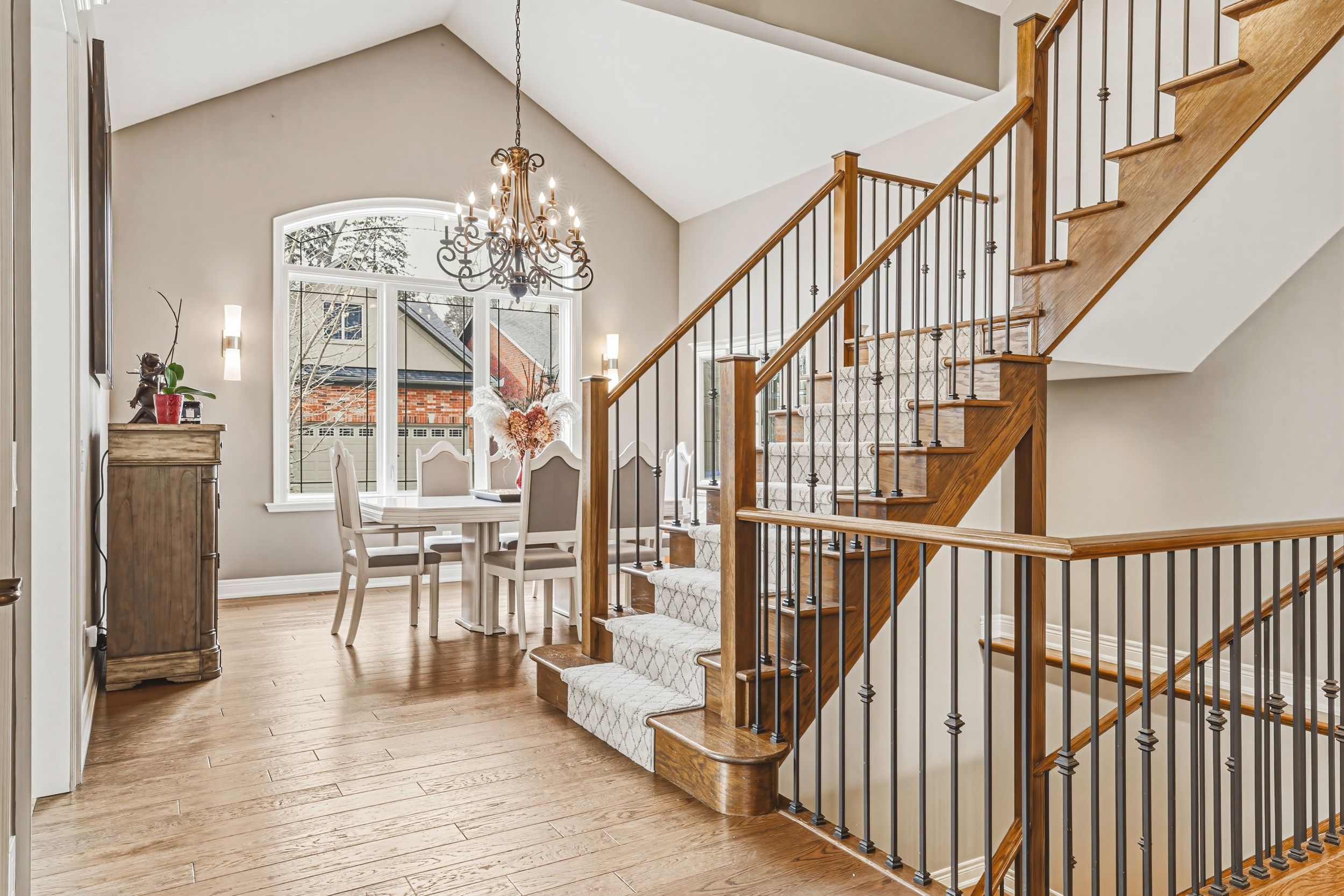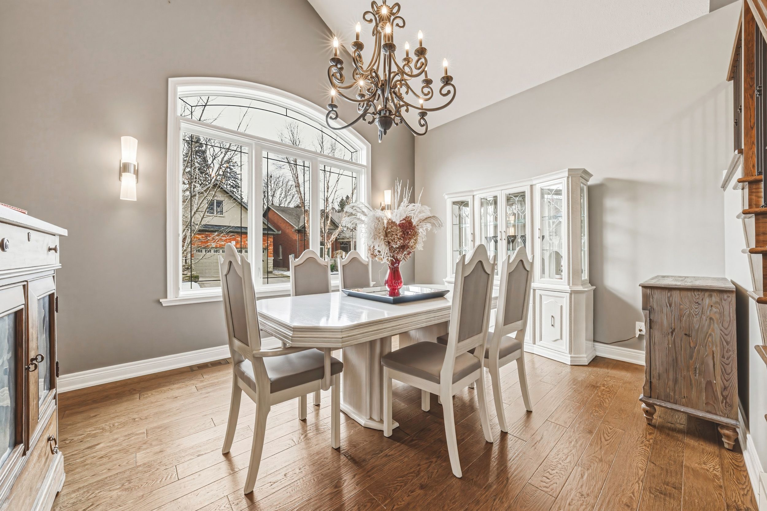 This stunning renovated, detached bungaloft sits in a quiet enclave in aldershot. Featuring 3+2 bedrooms, 3. 5 bathrooms, over 2400 square feet plus a fully finished lower level and a double car garage! The home features quality designer finishes and fixtures throughout. The open concept floor plan boasts vaulted ceilings, hardwood flooring and plenty of natural light. The large foyer opens to the dramatic, oversized dining room with 14' ceilings. The incredible kitchen features custom cabinetry, a large accent island, granite counters and top-quality appliances. The kitchen flows directly to the large 2-storey family room which includes custom built-ins, a gas fireplace, in-wall speakers and two sets of french doors leading to the private backyard. The large primary bedroom has a walk-in closet and a spa-like 4-piece ensuite with heated flooring. The main level also includes a separate powder room and garage access! The 2nd level includes 2 spacious bedrooms, a beautiful 4-piece bathroom and laundry room. The professionally finished lower level features 9 ft ceilings, radiant in-floor heat flooring throughout, 2 bedrooms and a den, a 3-piece bathroom, large rec room / media room and plenty of storage space! The exterior of the home has been extensively landscaped and features a private low maintenance backyard with a large deck and turf! Amazing location- close to all amenities and transportation!