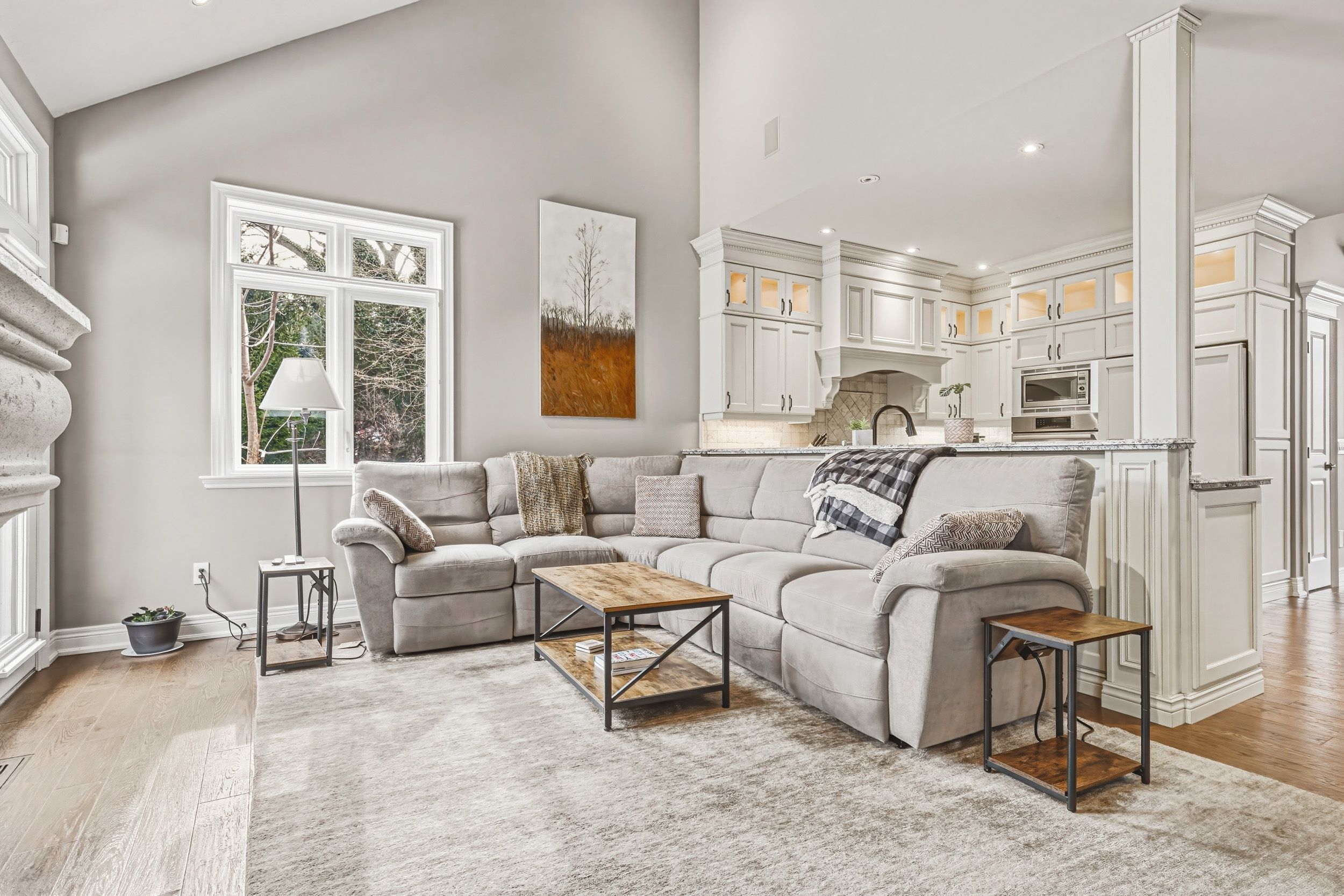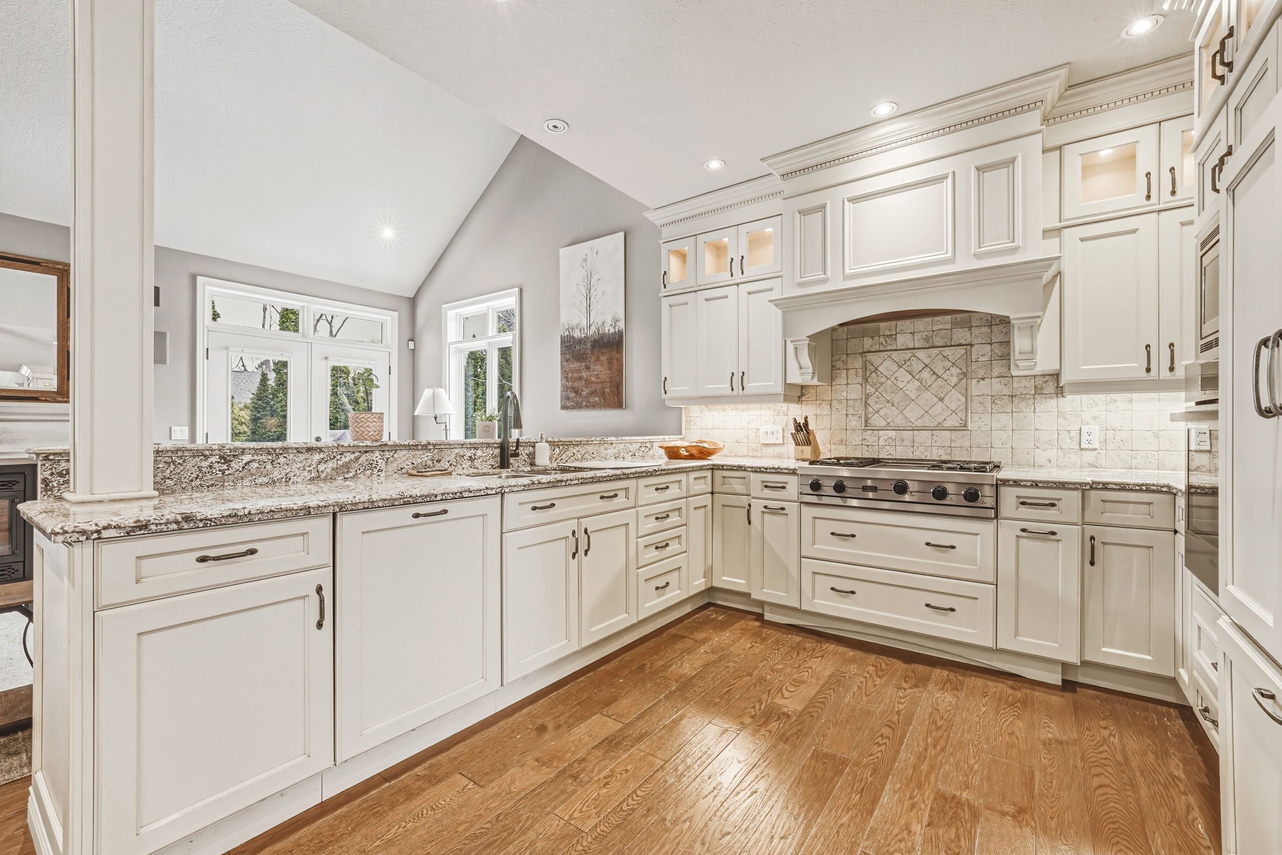 • Bright, open concept design with vaulted ceilings and hardwood flooring.