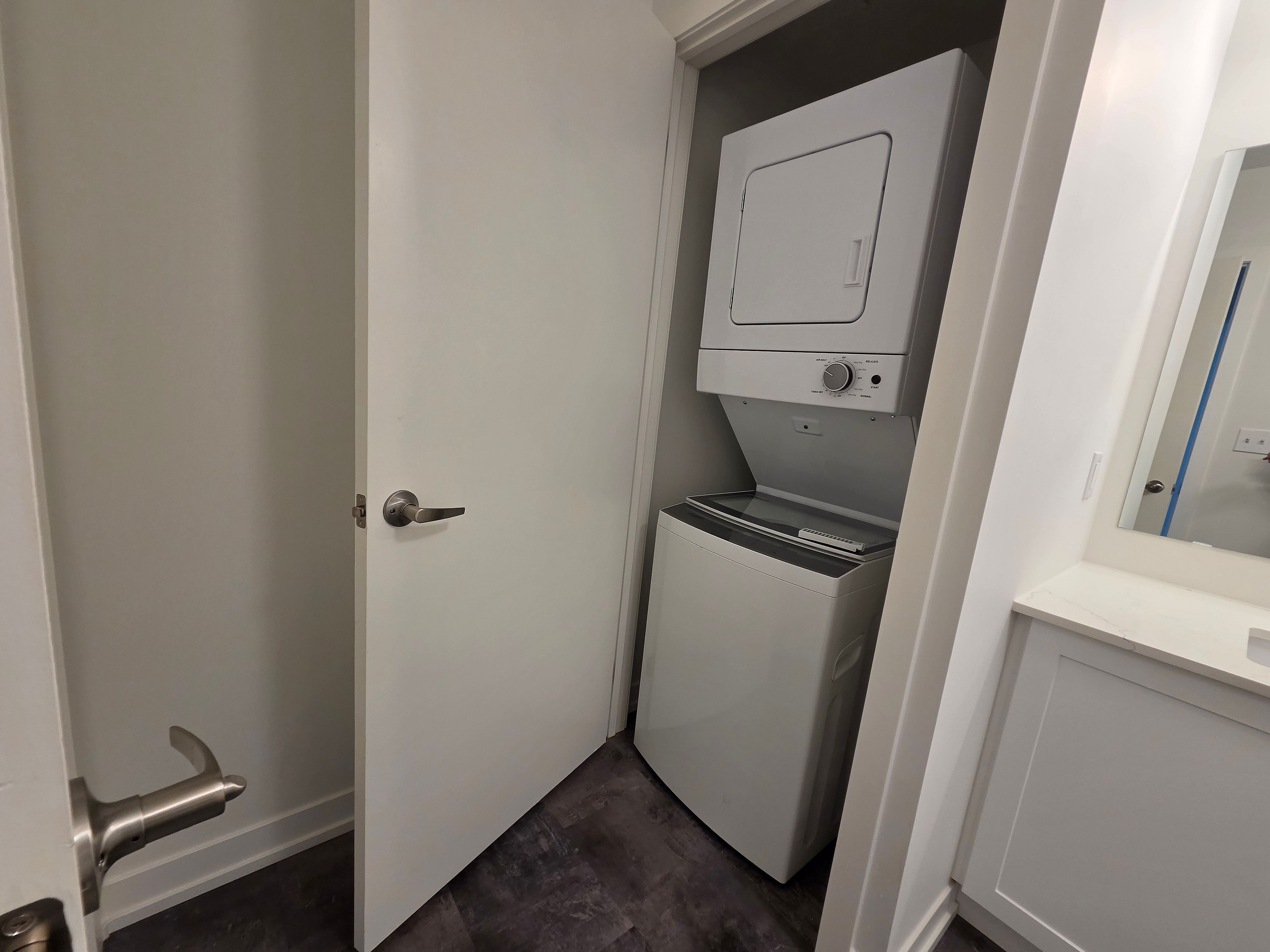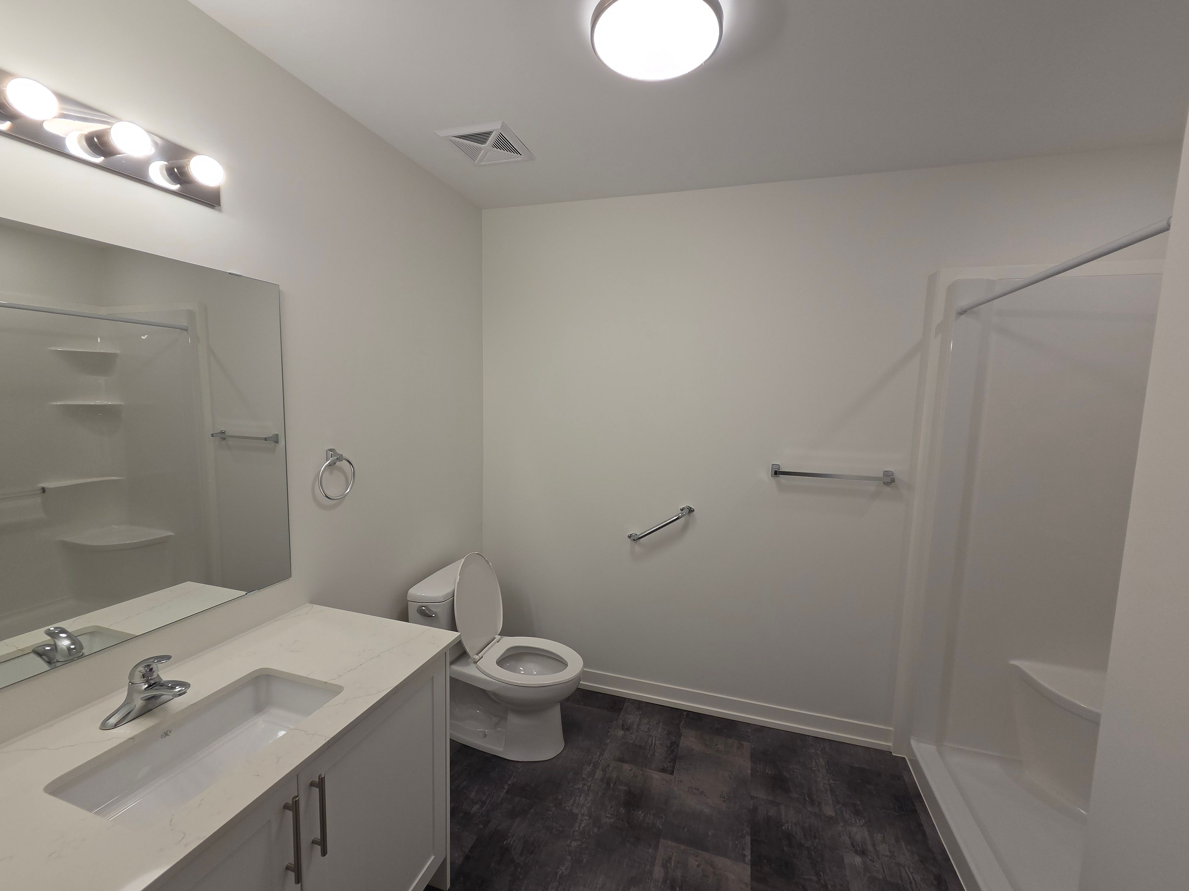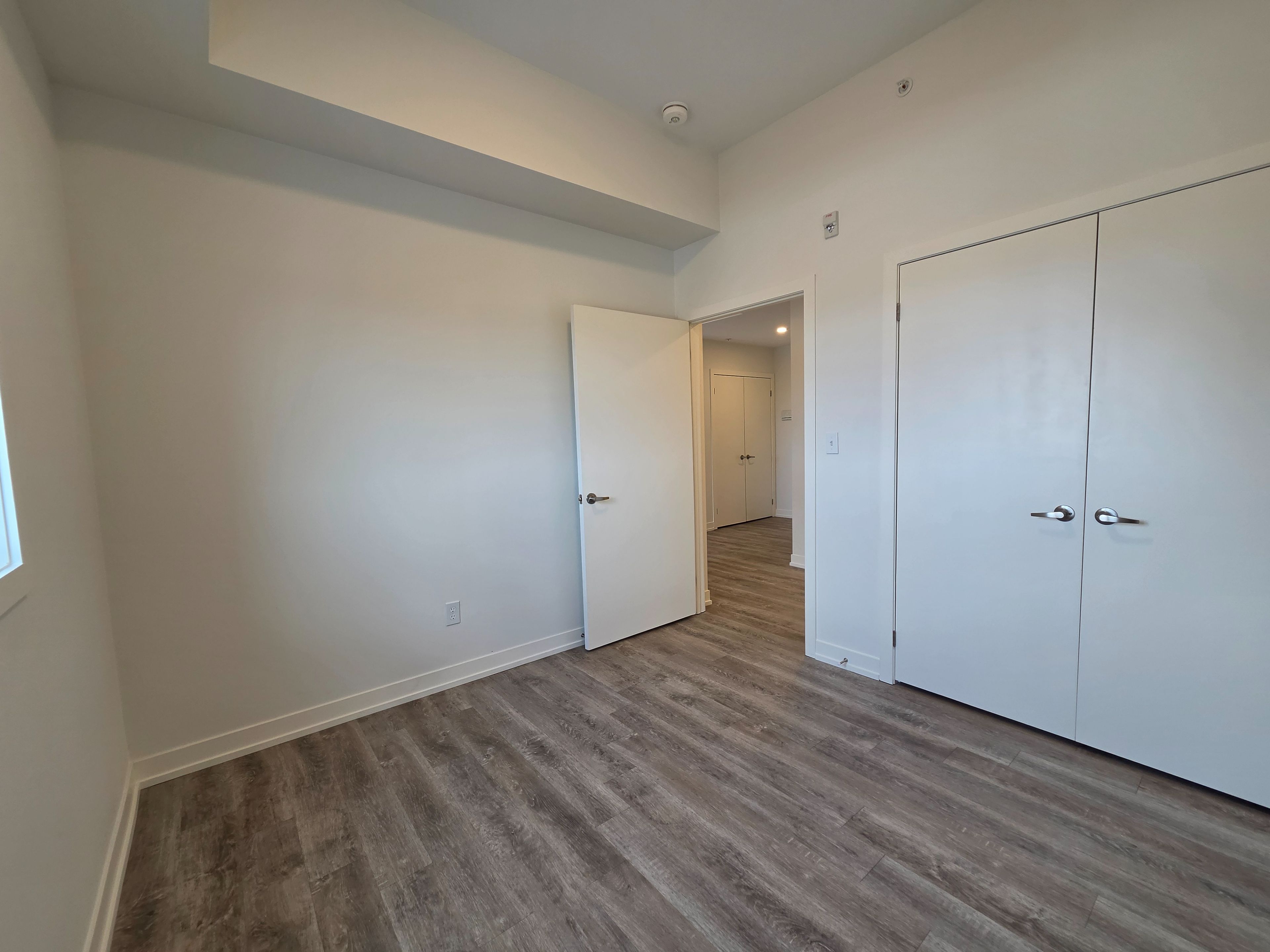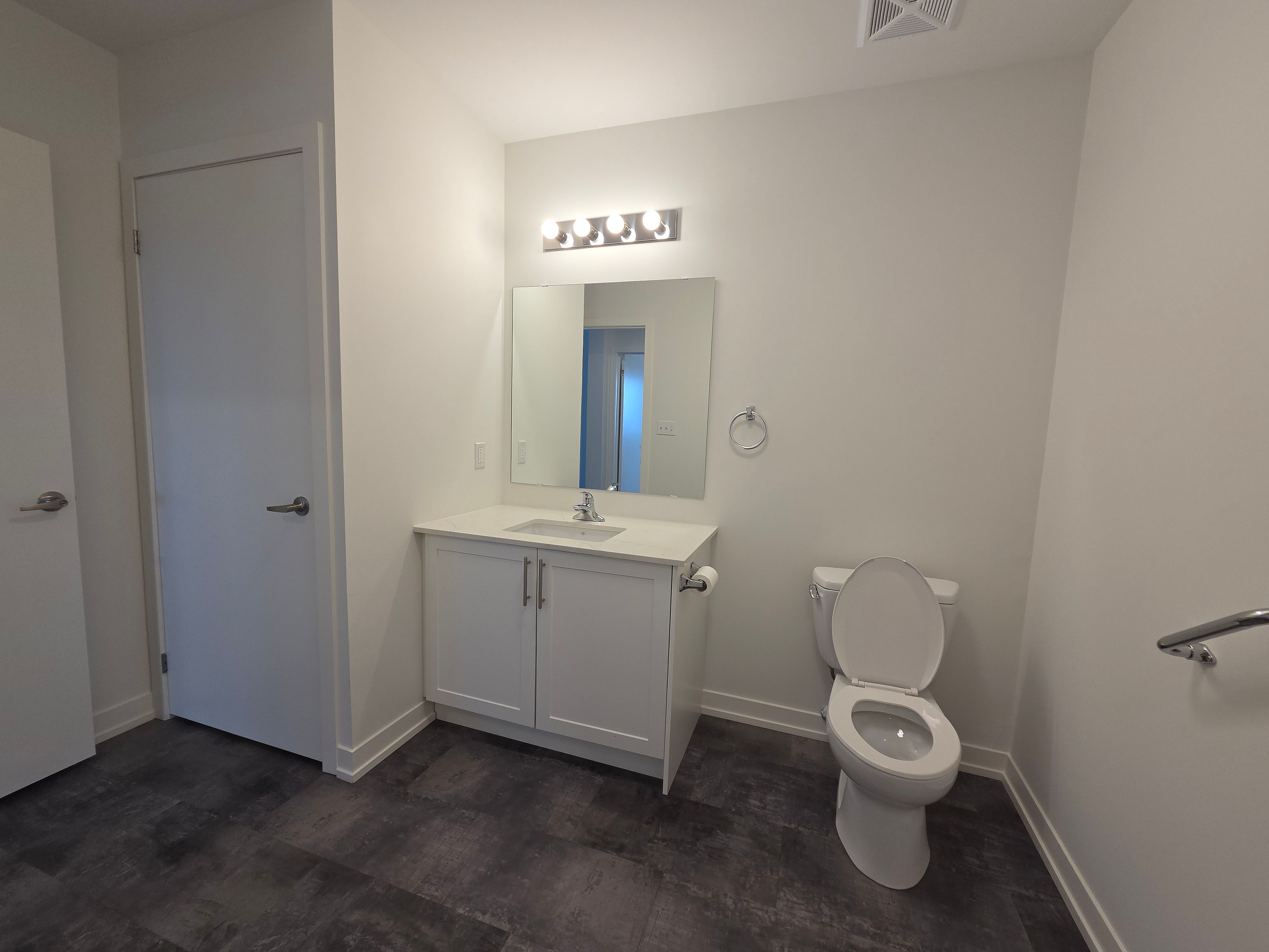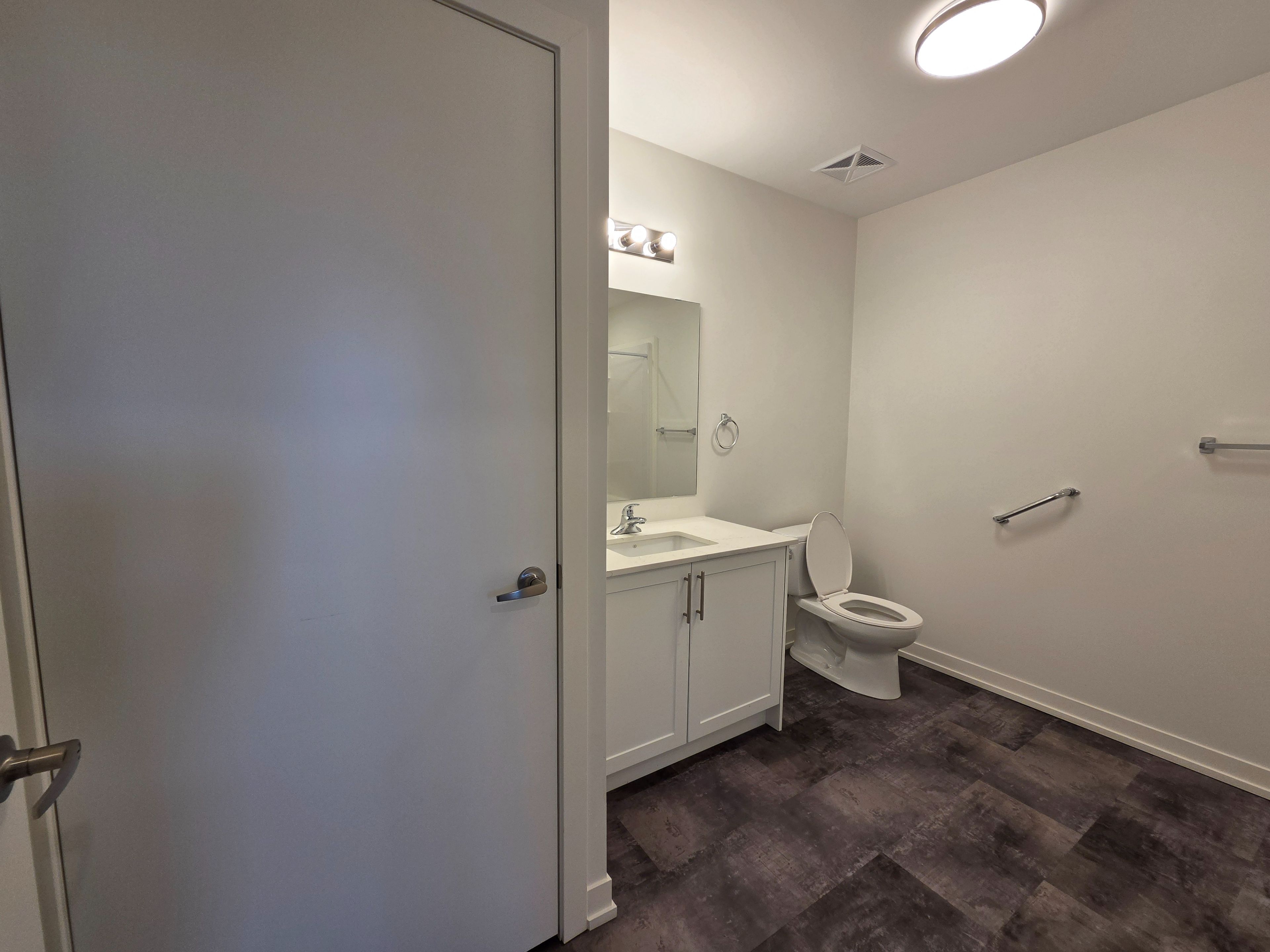 • Large bedroom with double closet and sleek 3-piece bathroom.