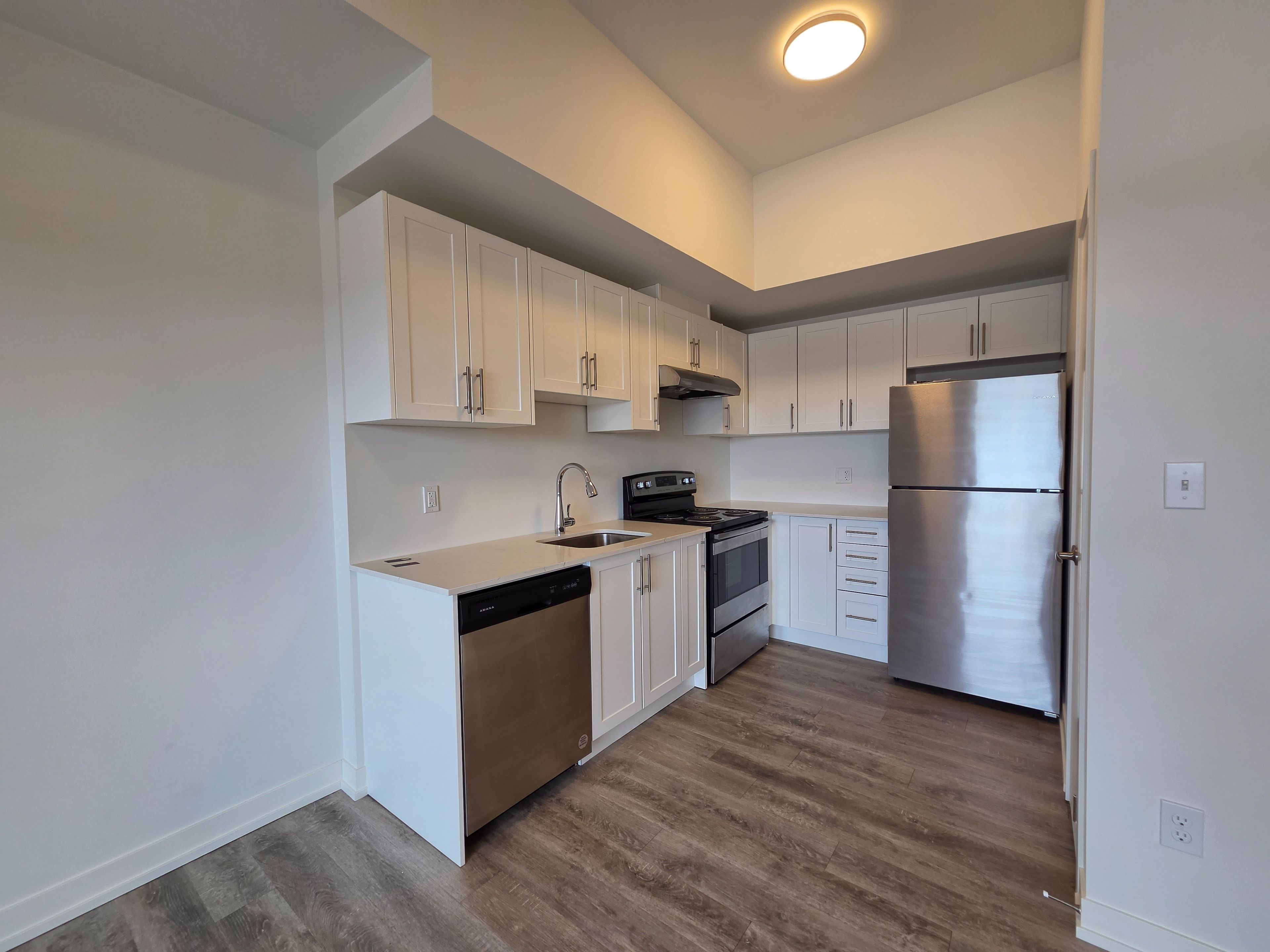 • Modern kitchen featuring stainless steel appliances and stylish quartz countertops.