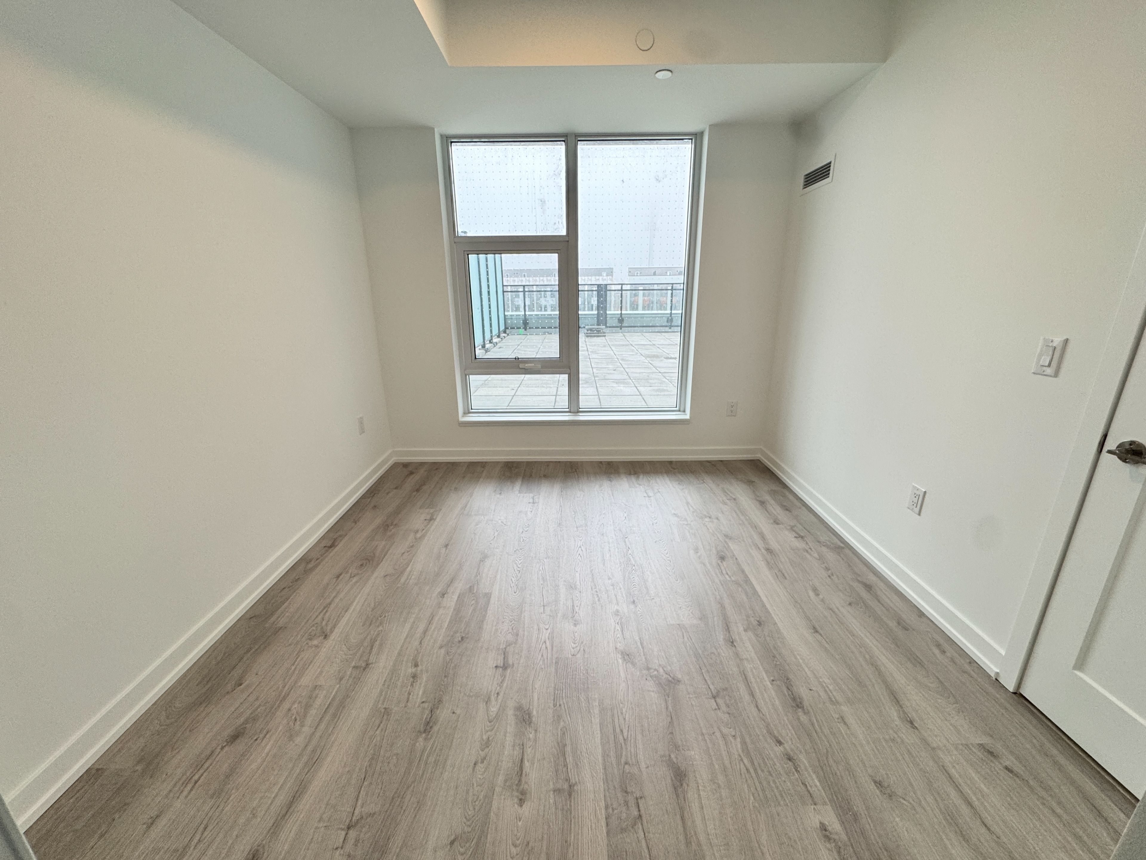 Amazingly beautiful brand new, luxurious, never lived in 1 br, 1 full wr condo joy station condos. Huge 475 sq ft terrace - perfect for enjoying, entertaining guests, relaxing. Laminate floors throughout. Open concept layout. Floor to ceiling windows provide plenty of natural light. Good size bedroom with floor to ceiling window and huge closet. Open concept kitchen with built in appliances. Urban living at its best. Just 5 to 7 minutes walk to go station. Public transit just outside the building. Easy commute to university, hospital. Just minutes to restaurant, shops & more. Amenities: gym, party/meeting room/bbq area, outdoor lounge, guest suites, games room