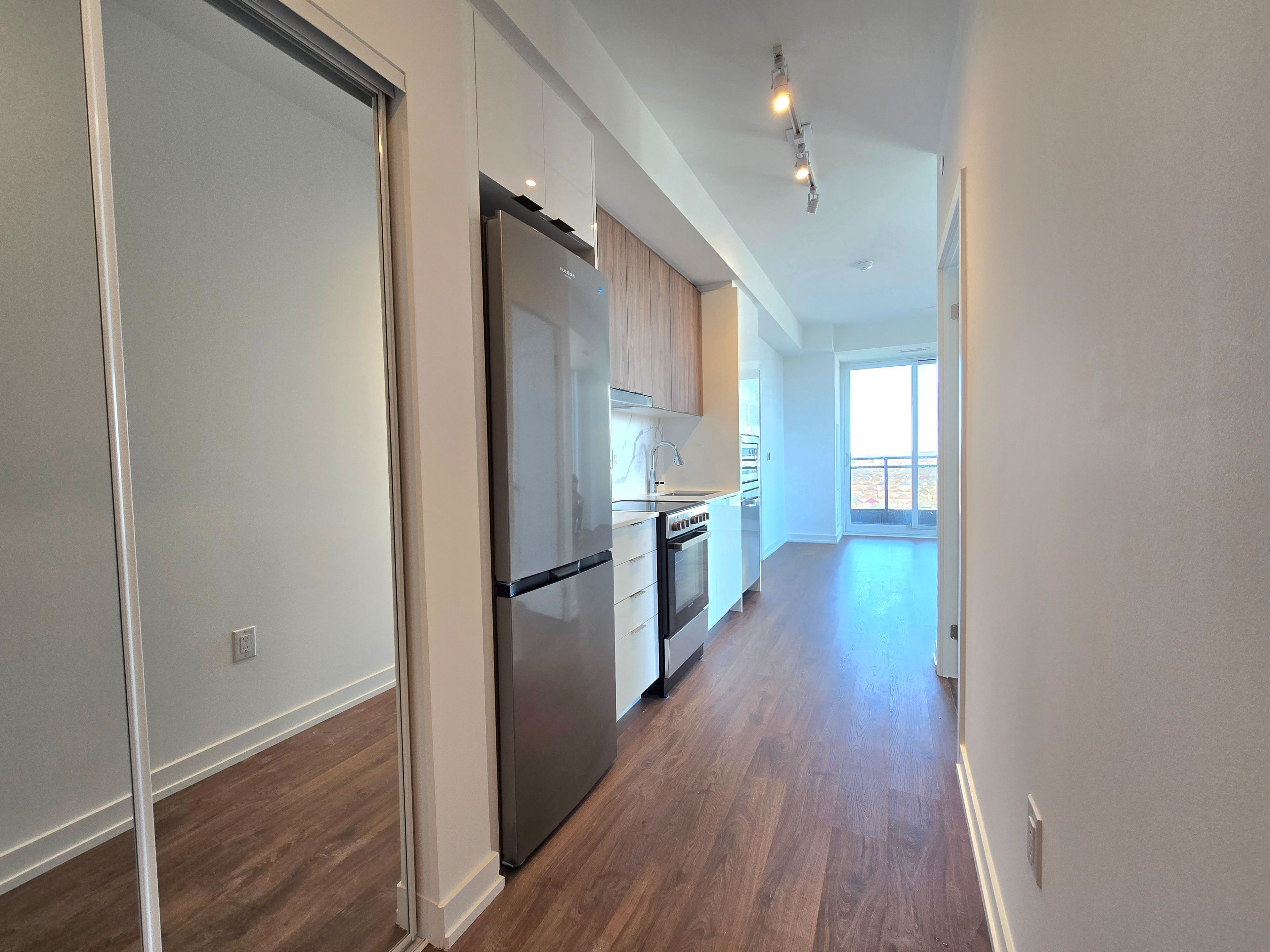 Brand-new residential community offering modern living in an ultra convenient location. This well designed 2 bedroom suite features a functional layout with excellent space utilization. Bright east exposure with floor to ceiling windows provides abundant natural light and a walkout to a spacious balcony. New zebra blinds installed on all windows and the balcony door. Enjoy clear views throughout. Modern kitchen with stainless steel appliances and quartz countertops. Rent includes one underground parking space. Building amenities include a 24 hour concierge, fully equipped fitness center, games room, party room, guest suite, children's playroom, golf simulator, and a rooftop terrace (pending completion). Prime location - steps to mount joy go station, grocery stores, restaurants, banks, and coffee shops. Quick access to hwy 407. Minutes to markville mall and cornell community centre with pool, library, and sports courts. Don't miss this opportunity to live in a brand new, thoughtfully designed suite.