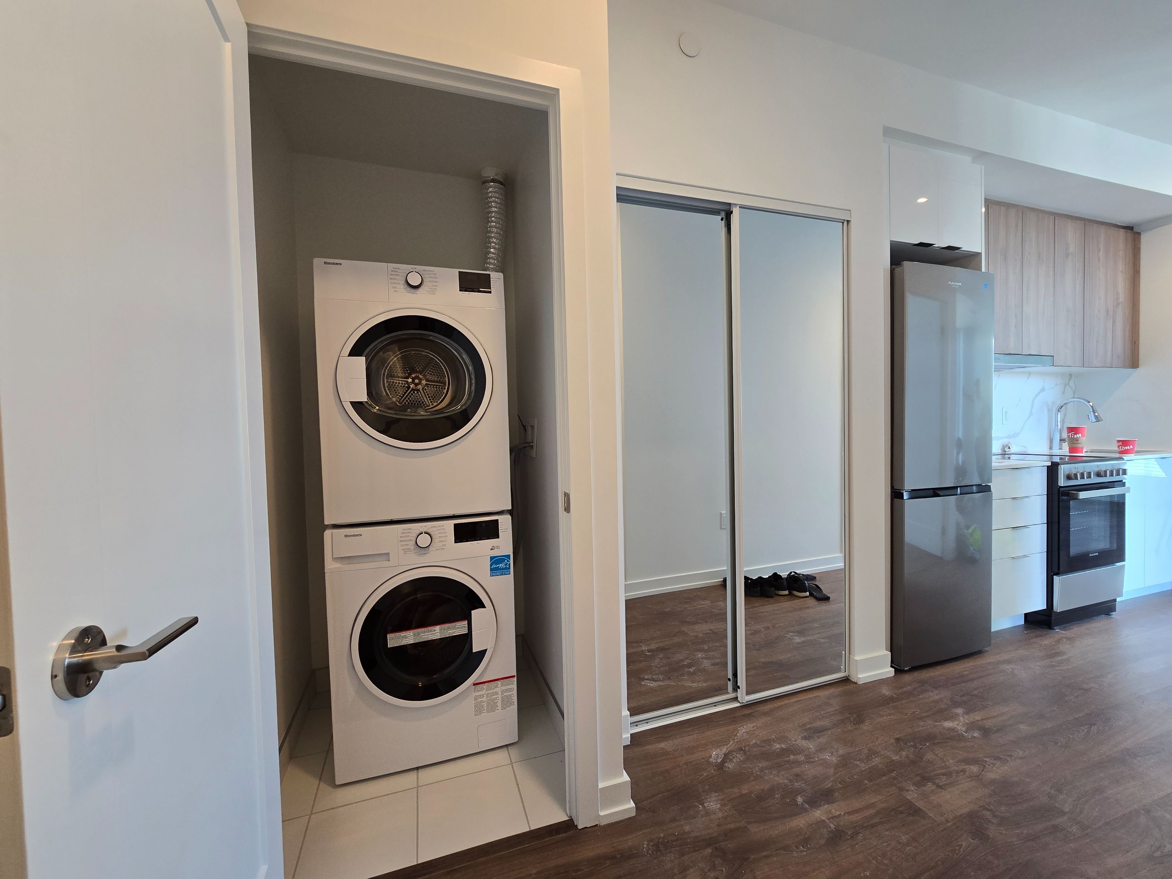 • Modern kitchen featuring stainless steel appliances and quartz countertops.