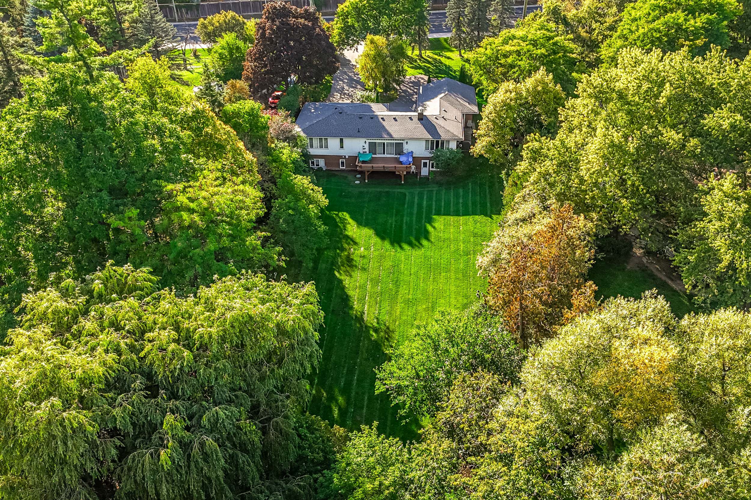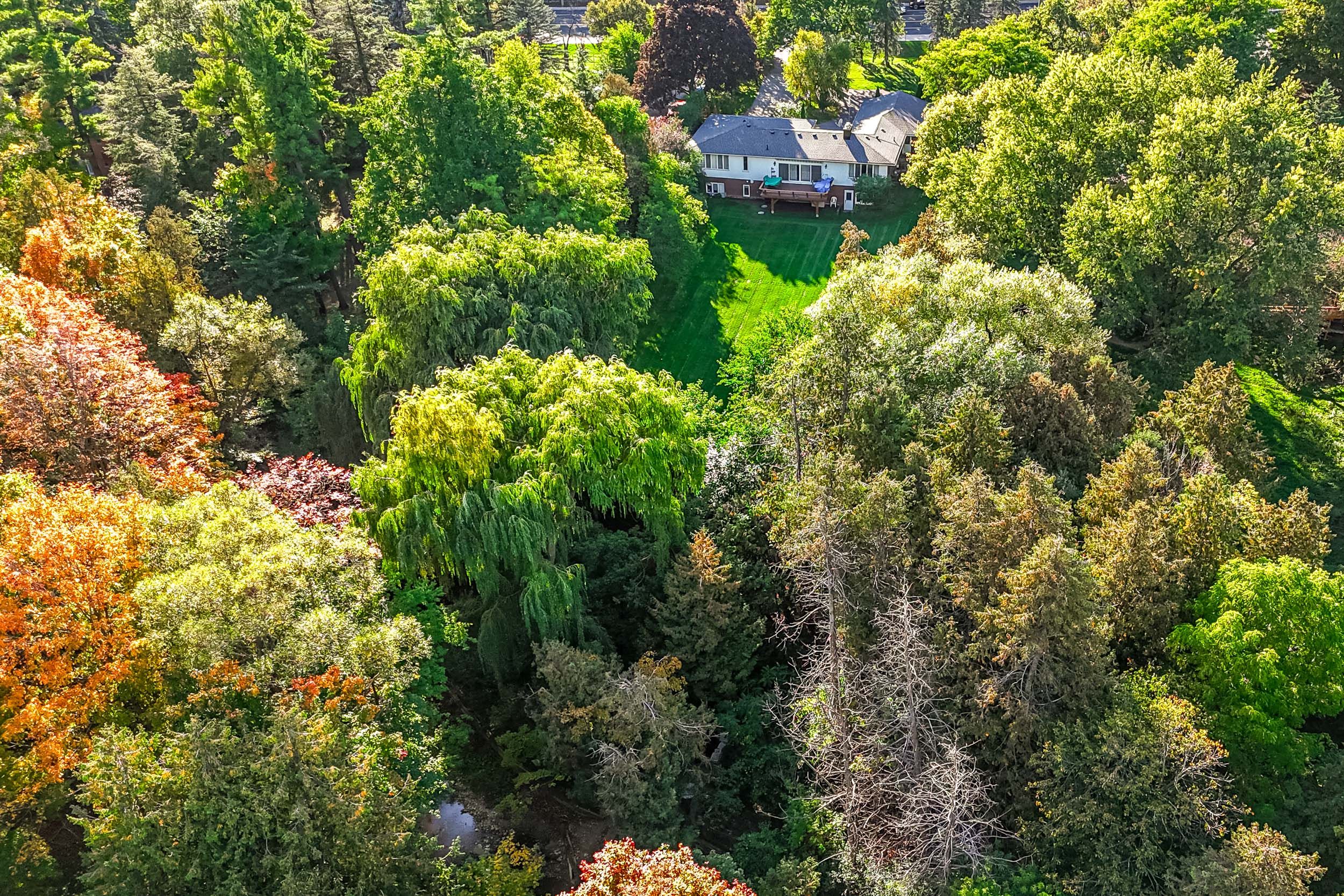 Spectacular bungalow on a rare 1. 016 acre lot overlooking a ravine and creek. This inviting retreat blends nature and convenience with quick access to hwy 407 and hwy 404. Sun filled main level features hardwood in most rooms, generous principal spaces, and an updated kitchen with abundant cabinetry and prep space that flows to the dining and living areas. Large windows frame green views and draw natural light across the home, showcase of the living room walkout to the deck overlooking the flat table land of the park feel backyard. 3 bedrooms appointing the master bedroom with 5pc ensuite. The finished walk up basement significantly expands the living area with a wet bar, multiple recreation zones with gas fireplace, well suited for movie nights, a home gym, playroom, or guests. Additional 2 spacious bedrooms. Separate walk up provides easy access to the yard. Convenient laundry on both levels with two washers and two dryers, one set on the main level and another in the basement. Practical upgrades include waterproofing and drainage that help keep the house and basement dry, a septic system serviced annually with upgraded piping, and two sump pumps. Ample electrical capacity with 200 amp service in the garage and 100 amp service to the backyard supports workshop use and future outdoor projects. Expansive grounds offer room for gardens, play space, and quiet evenings by the trees. A rare blend of nature, comfort, and convenience.