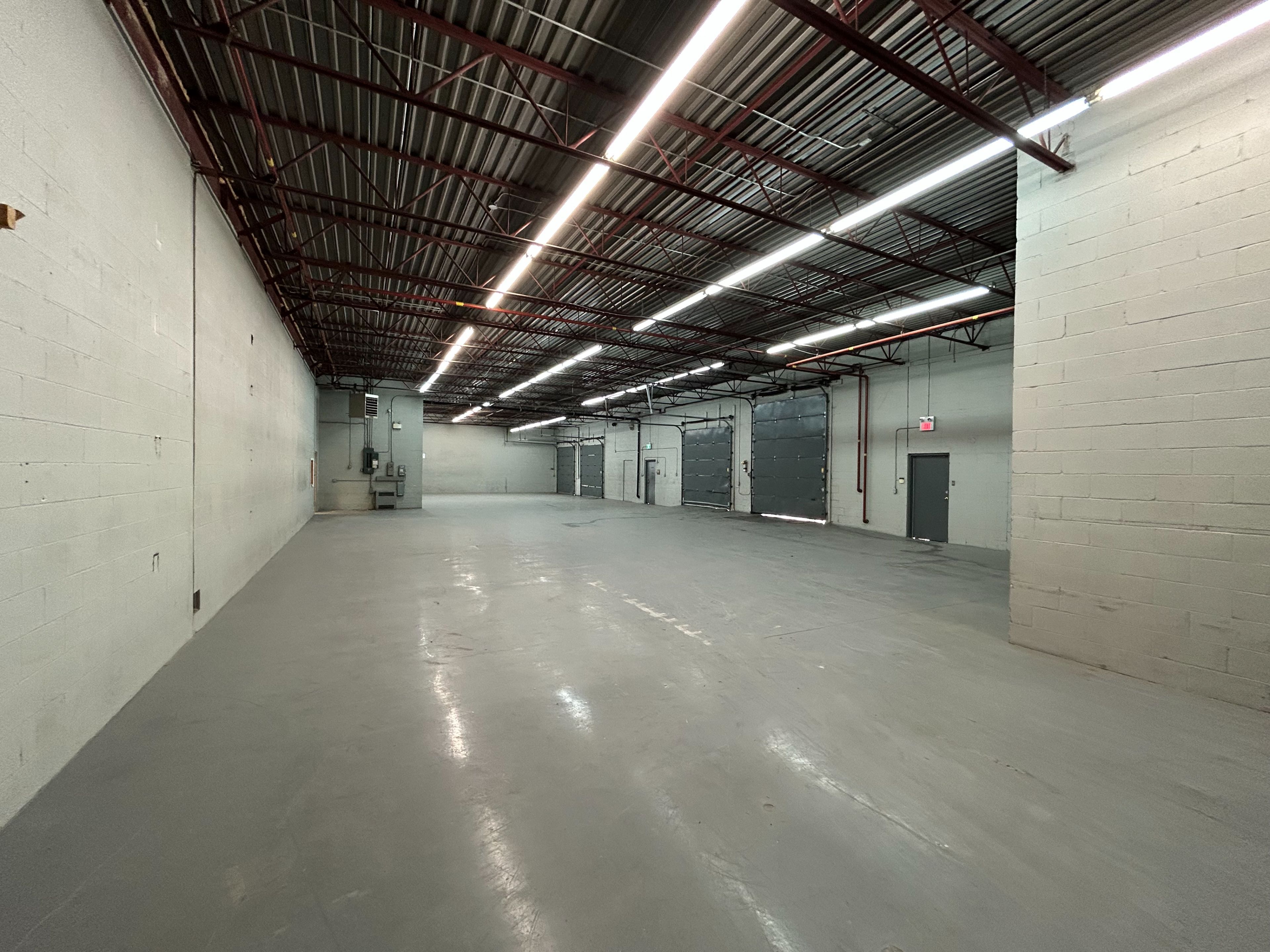 • Bright warehouse with upgraded lighting for a productive environment.