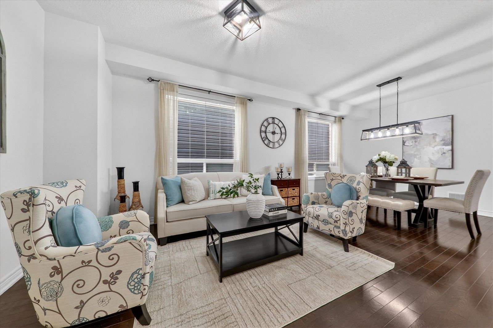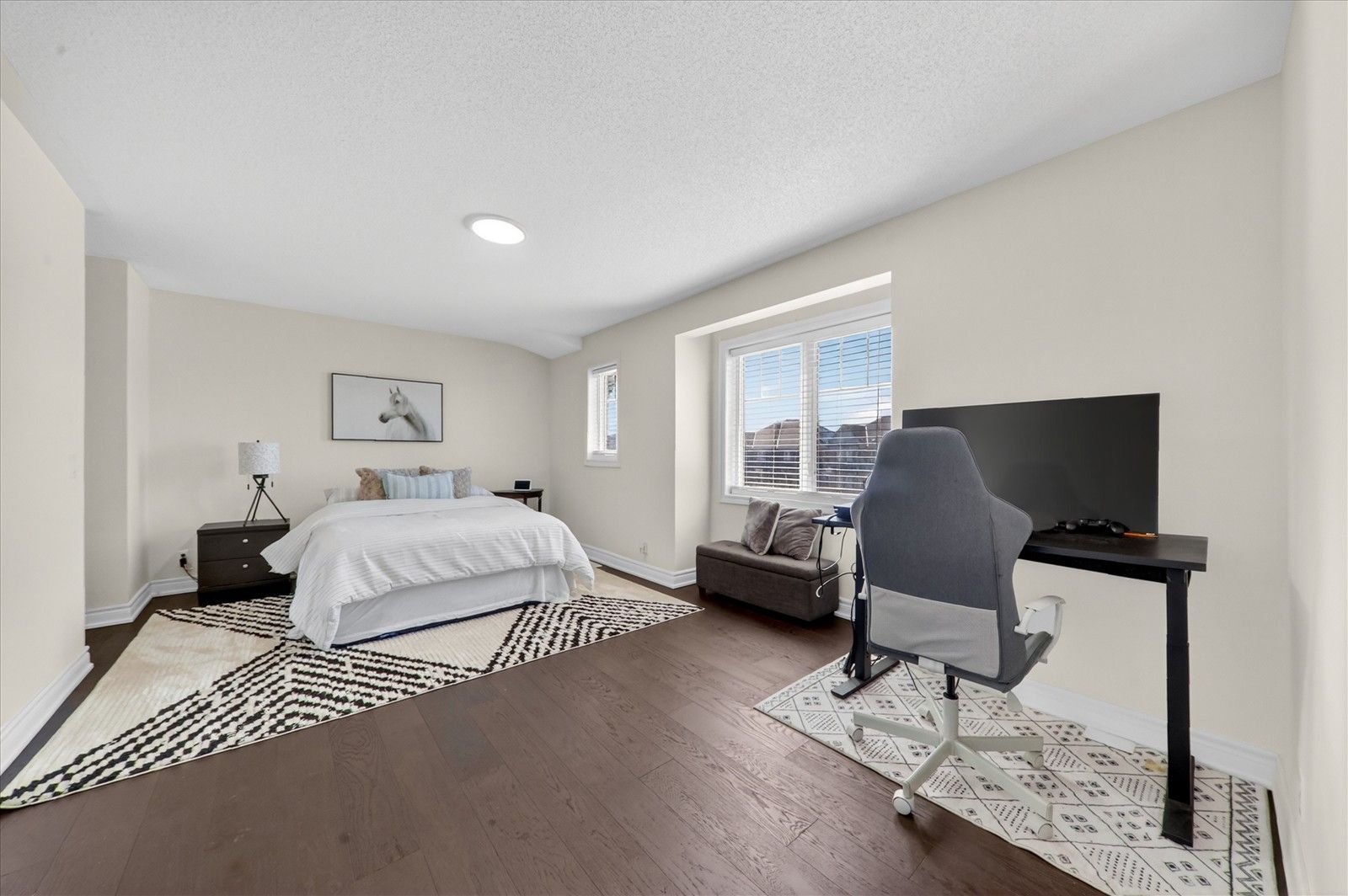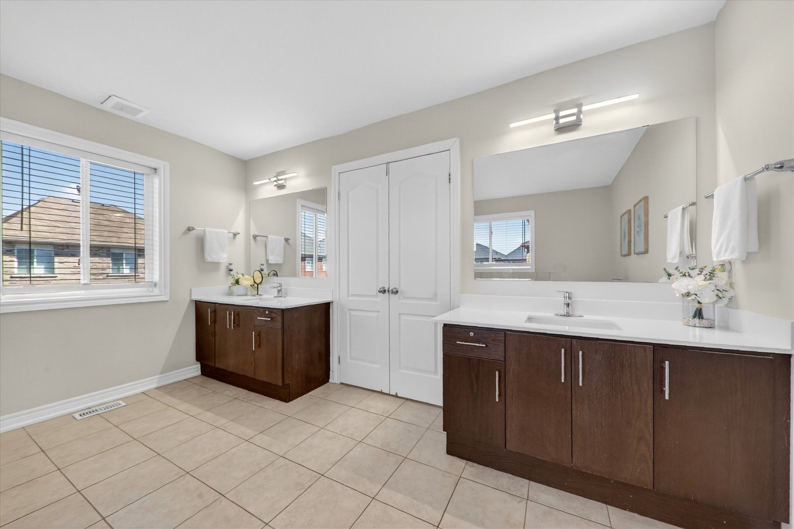 • Chef-inspired kitchen with quartz countertops and spacious eat-in area.