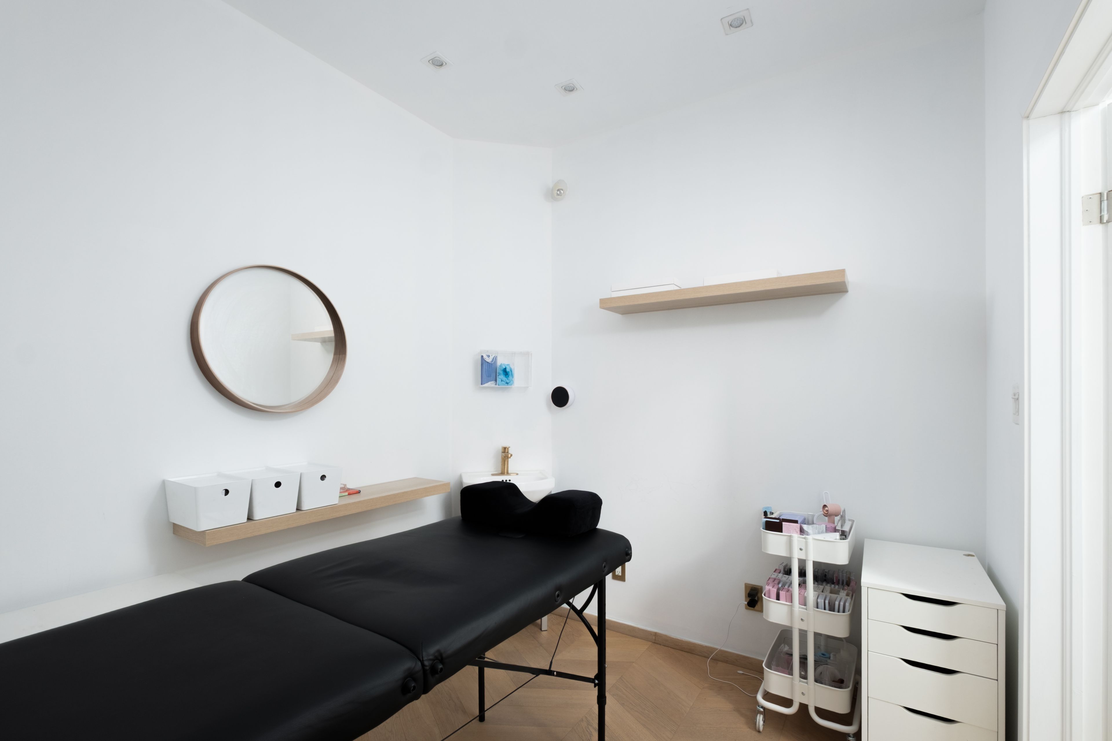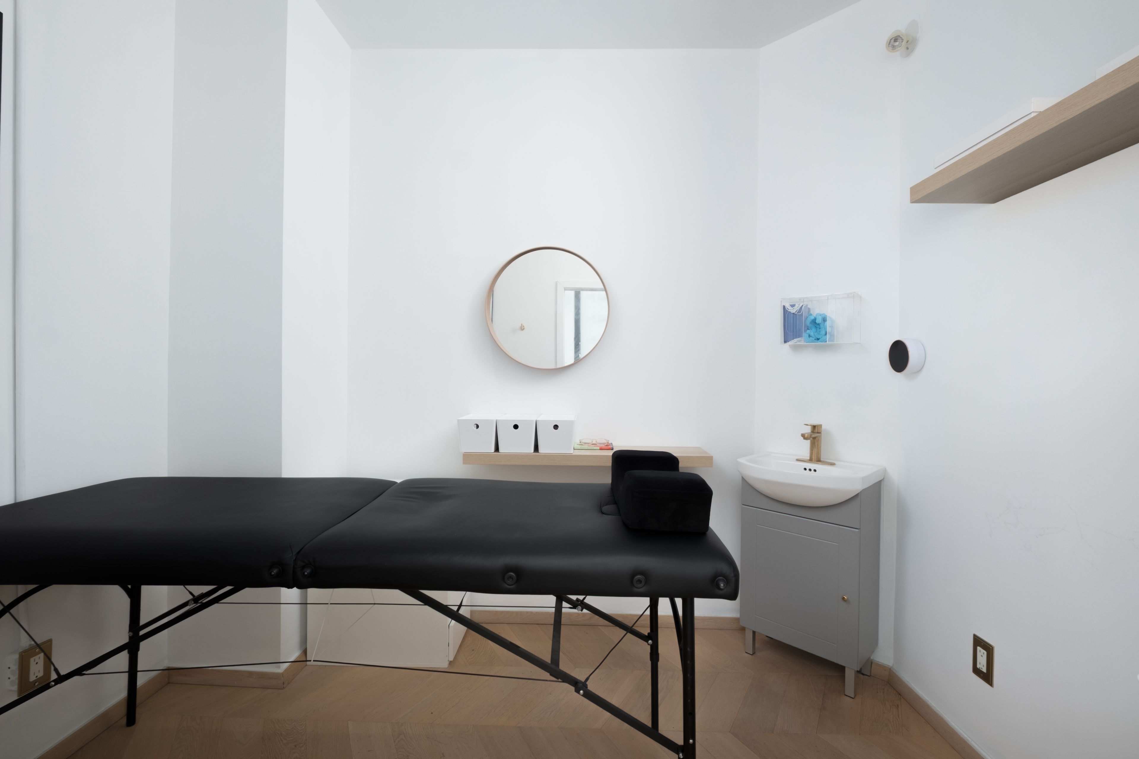 At the intersection of church and adelaide east, 98 church street offers a prominent ground-floor position within spire, one of downtown toronto's architecturally considered condominium addresses. This unit offers 594 square feet of rentable space with 29 feet of continuous frontage along church street. Floor-to-ceiling glazing floods the interior with natural light and establishes a direct visual connection to the street. The interior is composed around a reception area, two enclosed treatment rooms and an open working area. Herringbone floors and warm oak slat panelling introduce texture and a considered warm material note to the clean white space. The current fit-out, configured for beauty and aesthetic services, supports a range of professional and retail uses, from wellness and medical aesthetics to boutique consulting, design practice, showroom, or concept retail. The building's resident population and the neighbourhood's density of foot and vehicular traffic provide a built-in commercial context within one of the city's most established downtown corridors. The financial district, king street east, st. Lawrence market, and the distillery district are all within walking distance, with transit and path connections defining the area's accessibility. A corner presence on church and adelaide, where light, scale, and urban context create a considered setting in one of the city's most established downtown corridors.