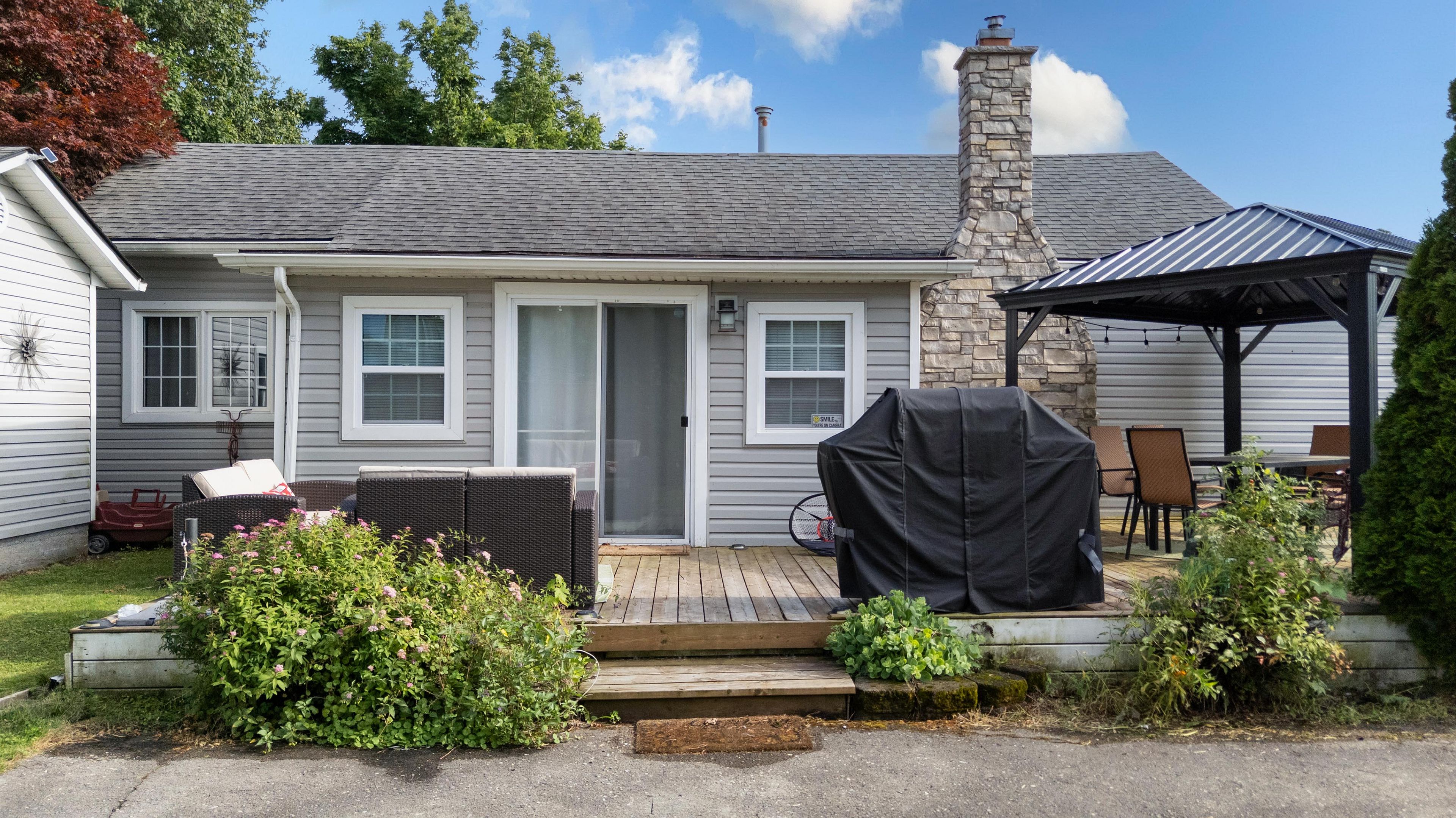 • Outdoor features include a side deck, gazebo, and fire pit.
