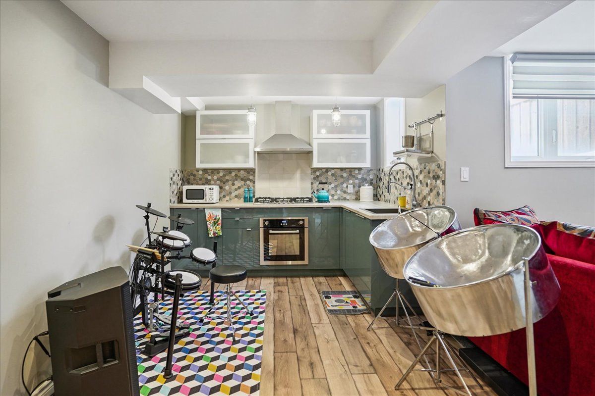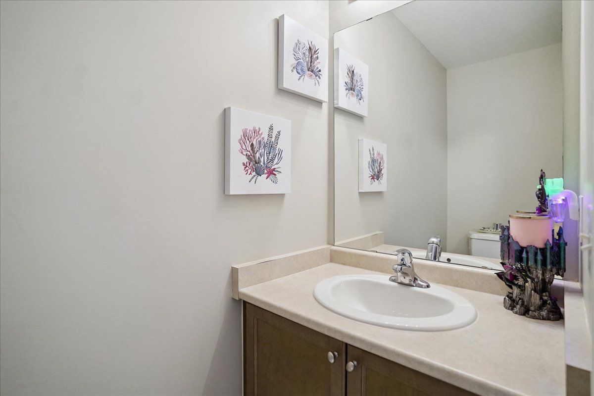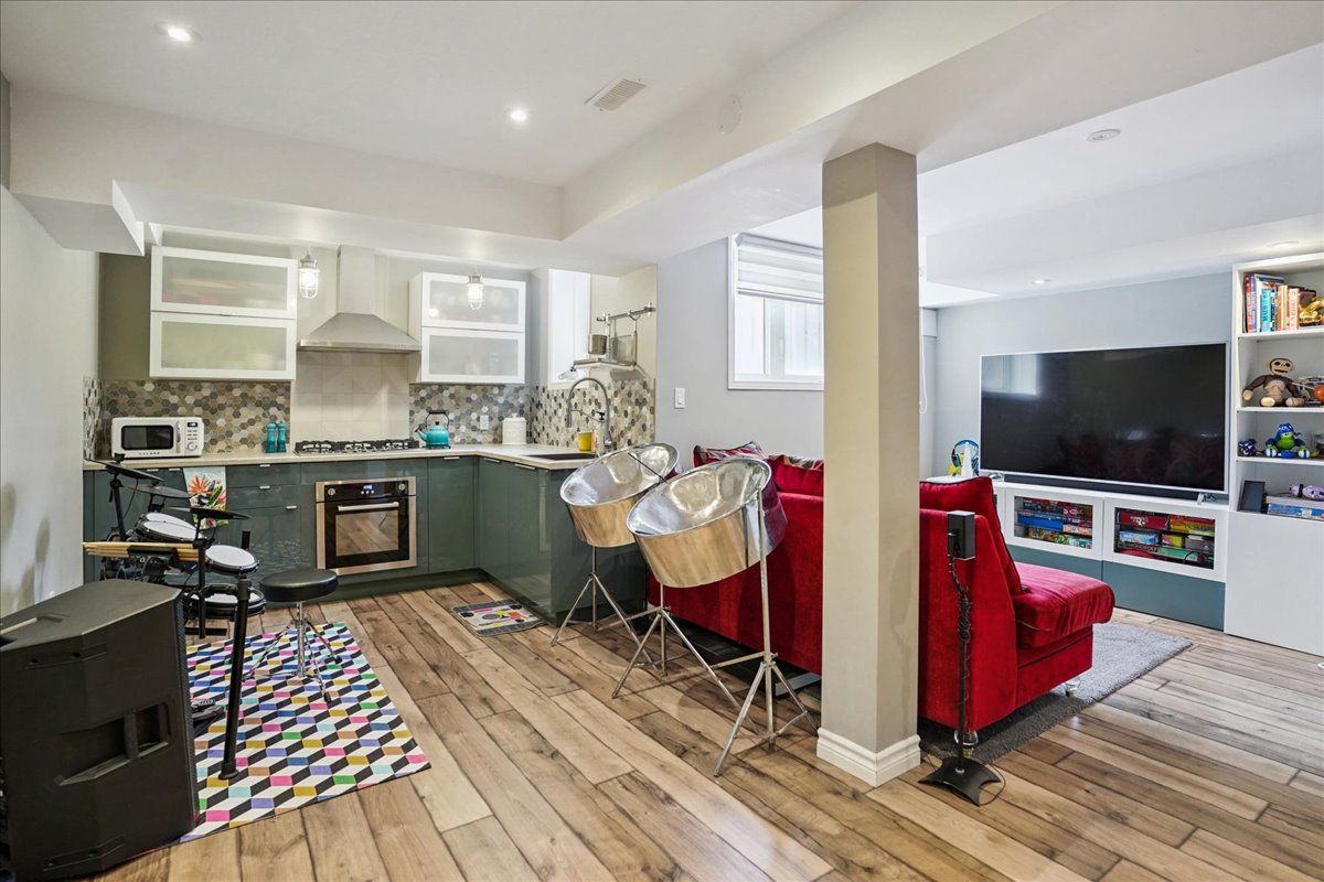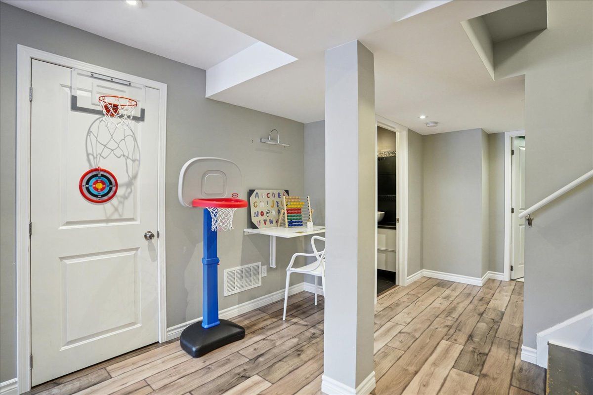 Welcome to the sought-after whitby shores community! This beautifully maintained becket model; 1509 sq/ft on upper levels as per builder, plus additional square footage with a fully finished basement. This home offers exceptional space, versatility, and parking for up to 4 vehicles (2-car driveway, garage, plus extended concrete walkway). The covered porch with ceramic entry leads to a bright open-concept main floor featuring hardwood flooring, oak stair railings, a spacious kitchen with gas stove, center island featuring breakfast bar, and a seamless flow between living and dining areas with subtle separation. A cozy gas fireplace adds warmth, while the breakfast area walks out to a low-maintenance backyard complete with finished deck, built-in planters with bench seating, and gas bbq hookup ideal for entertaining. Convenient garage access from inside the home. Upstairs offers 3 generous bedrooms including an oversized primary retreat with abundant natural light, large walk-in closet, and 4-piece ensuite. Ceramic flooring in all bathrooms. The professionally finished basement features a bachelor-style suite with kitchen, large above-grade windows providing excellent natural light (with blackout zebra shades on larger window), and a spa-inspired stand-up shower with rain head and hand wand. Perfect for extended family or professional households seeking privacy and flexible living space. Additional features include a whole-home water filtration system, large finished laundry room, and cold cellar ideal for storage or hobby space. A rare lease opportunity offering space, functionality, and lifestyle in one of whitby's most desirable lakeside communities.