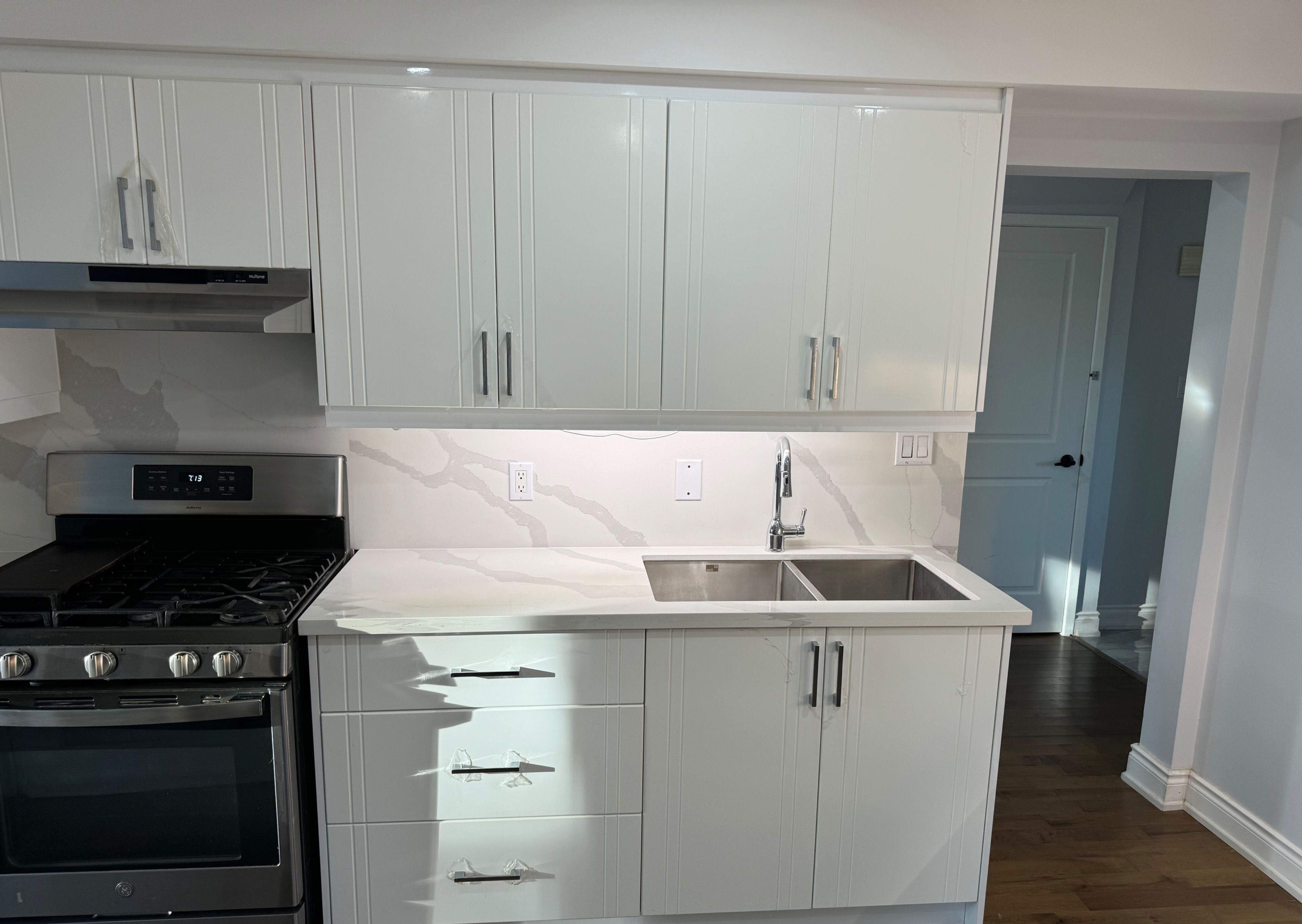 • Modern kitchen with granite countertops and ample storage.