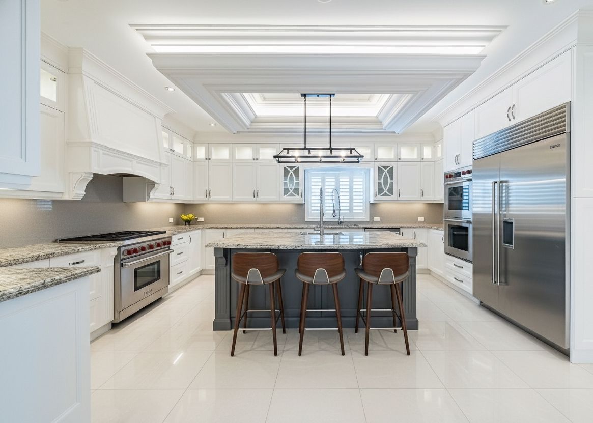 • Gourmet chef's kitchen featuring premium appliances and large island.