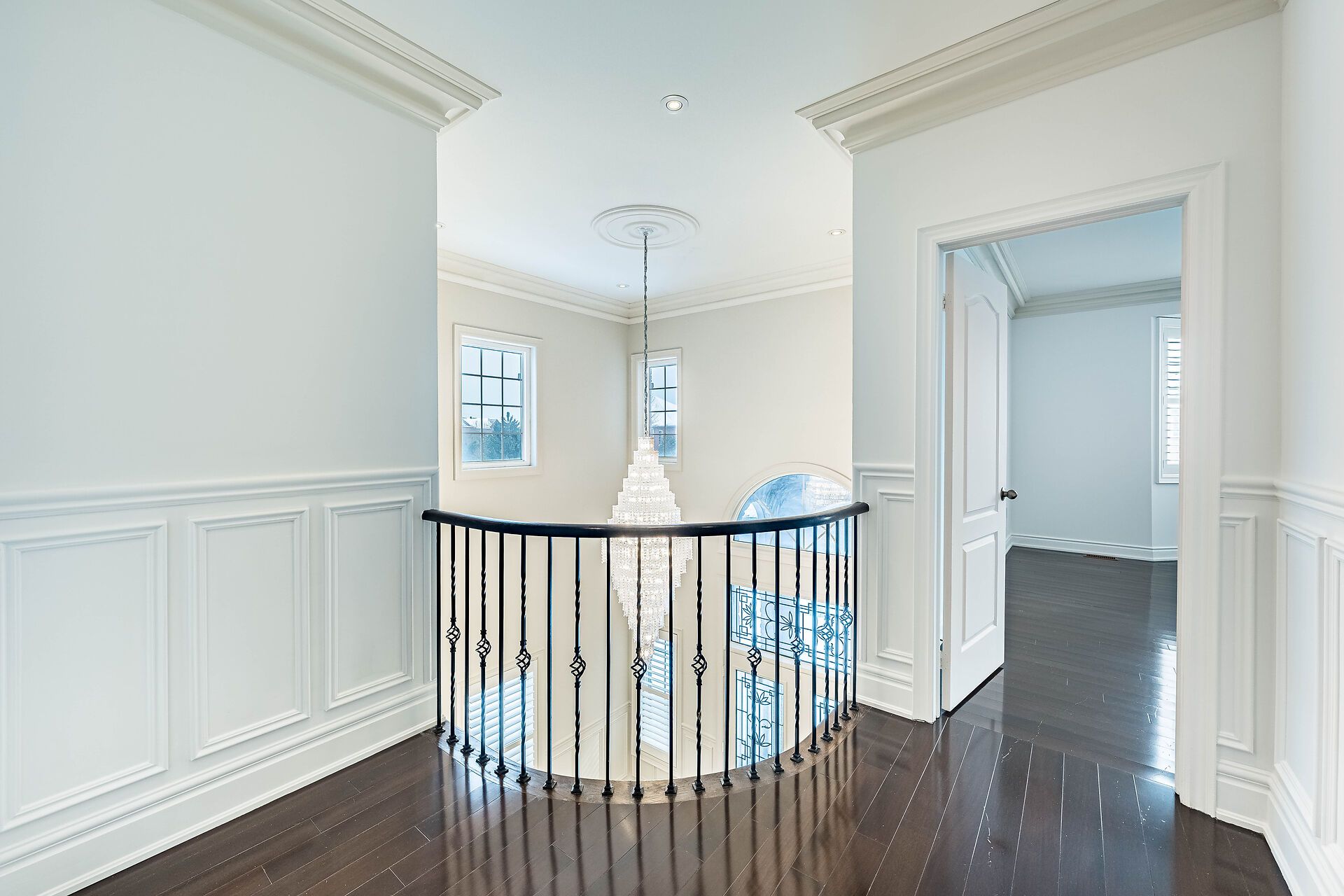 Executive luxury residence situated on a premium corner lot in prime thornhill woods built in 2009 & recently upgraded throughout this home offers 5,124 sq. Ft. Of living space 8 bedrooms & 7 bathrooms combining elegant design modern technology and outstanding income potential striking brick and stone façade w/double-door entry & new stone stairs dramatic 2 storey foyer w/crystal chandelier bright & spacious principal rooms 9' smooth ceilings pot lights waffle ceilings w/integrated lighting wainscotting crown mouldings oversized baseboards & a 2-sided gas fireplace heated marble flooring throughout main & lower levels & heated flooring in upper bathrooms open concept living/dining areas ideal for entertaining complete w/walk-in coat closet & powder room w/floating vanity designer mirror & lighting custom chef's kitchen w/large centre island granite countertops designer backsplash soft-close cabinetry w/pull-out drawers undercabinet lighting undermount sink & premium appliances including wolf gas stove w/oven built-in double ovens & microwave sub-zero fridge & wine cooler asko dishwasher kitchenaid warming drawer & hood fan. Family room w/walk-out to deck surround sound wiring & projection tv/screen wiring elegant wrought-iron circular staircase w/crystal chandelier leads to upper & basement upper level features wide landing w/romeo juliet balcony 2 linen closets & 4 generous bedrooms primary suite includes double-door entry custom walk-in closet & spa-inspired ensuite w/double vanity jacuzzi tub w/lighting oversized steam shower w/multiple jets & kohler numi smart bidet system secondary bedrooms offer walk-in or double closets w/semi-ensuites & private ensuites