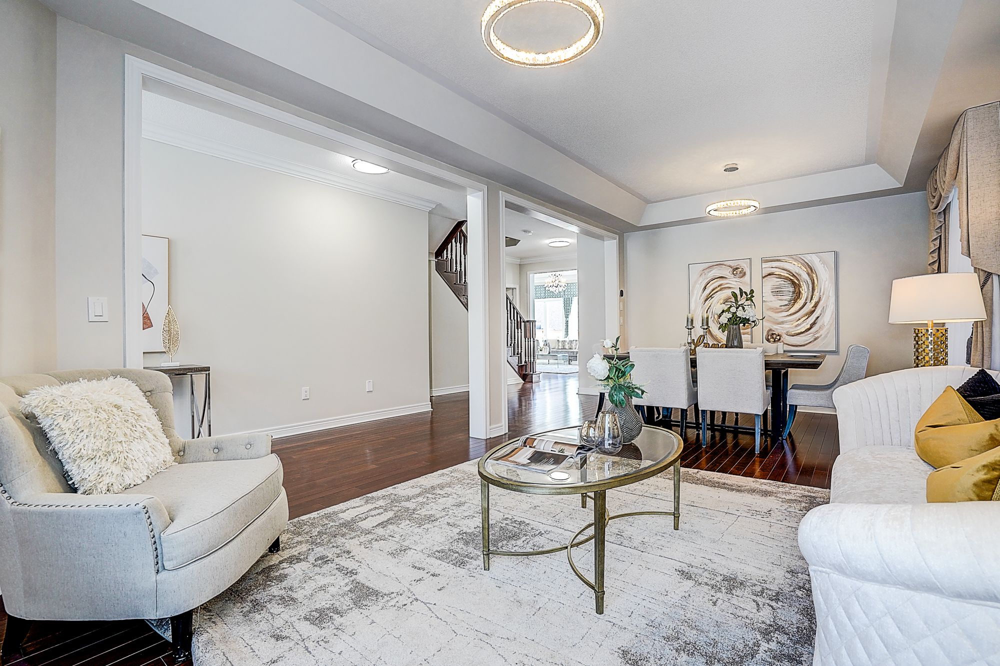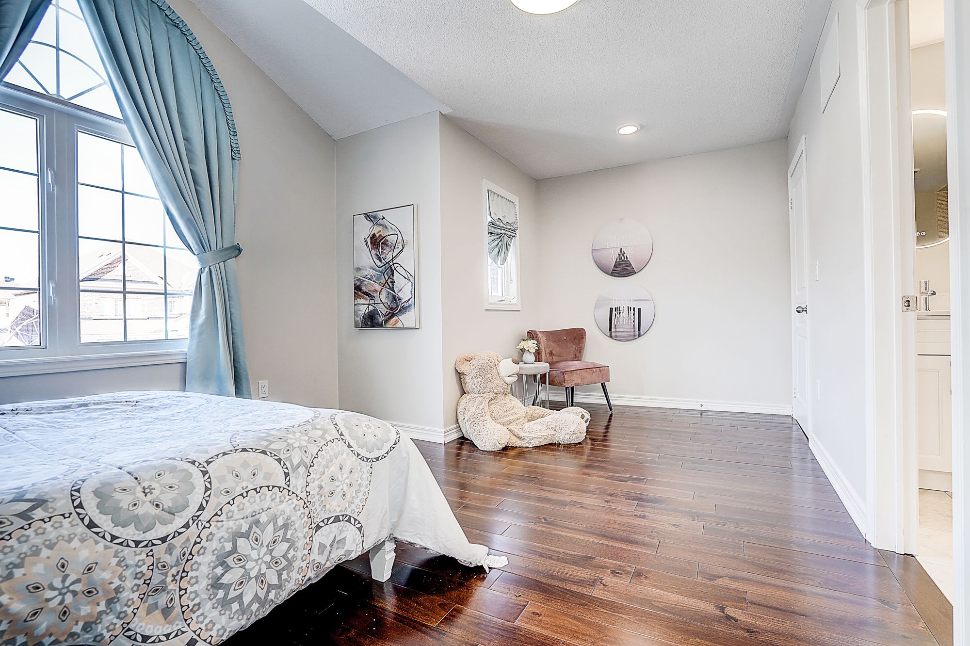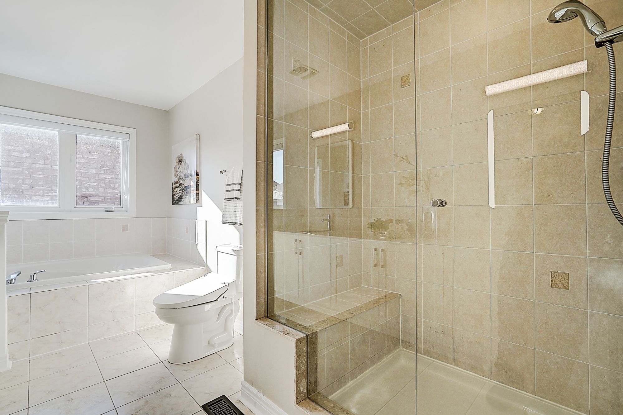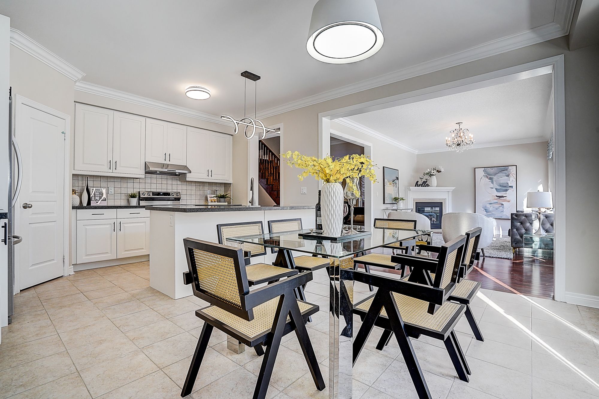 Welcome to 98 thornhill ravines cres. A stunning luxury & executive home sitting on a rarely available south-facing premium lot (46 x 101. 82) in a highly sought-after valleys of thornhill neighborhood. Featuring a brick exterior, double car garage, professional interlock front yard and backyard, this spacious residence offers over 4,500 sq. Ft. Of total living space including a fully finished basement. Recent upgrades $$$: freshly painted throughout, brand new hardwood floor on second floor, modern designer indoor and outdoor light fixtures, and upgraded bathroom vanity cabinets enhancing both style and functionality. This open-concept gem boasts hardwood flooring, and big windows flooding the space with natural light. The main floor features spacious living and dining areas, a cozy family room with gas fireplace, and a big office. The gourmet kitchen showcases storage cabinetry, granite countertops, tile backsplash, centre island with breakfast bar, and premium stainless-steel appliances. A walkout from the breakfast area leads to a patio for outdoor entertaining. Upstairs, there are two en-suites and one jack and jill bathroom. The primary bedroom offers a walk-in closet, and a luxurious 5-piece ensuite with frameless glass shower, double vanity, and a bath tub. Another ensuite bedroom has its own private 4-piece ensuite, while the remaining two share a semi-ensuite bath. The finished basement includes a guest room, fully rough-in bathroom, and a large rec/media room. Zoned for top-ranked schools. This elegant, functional, and practical home closes to all amenities is ready to welcome you. Don't miss the chance to elevate your lifestyle! A must see and buy!