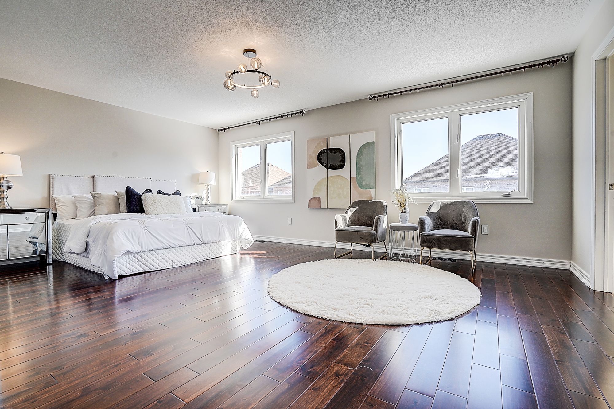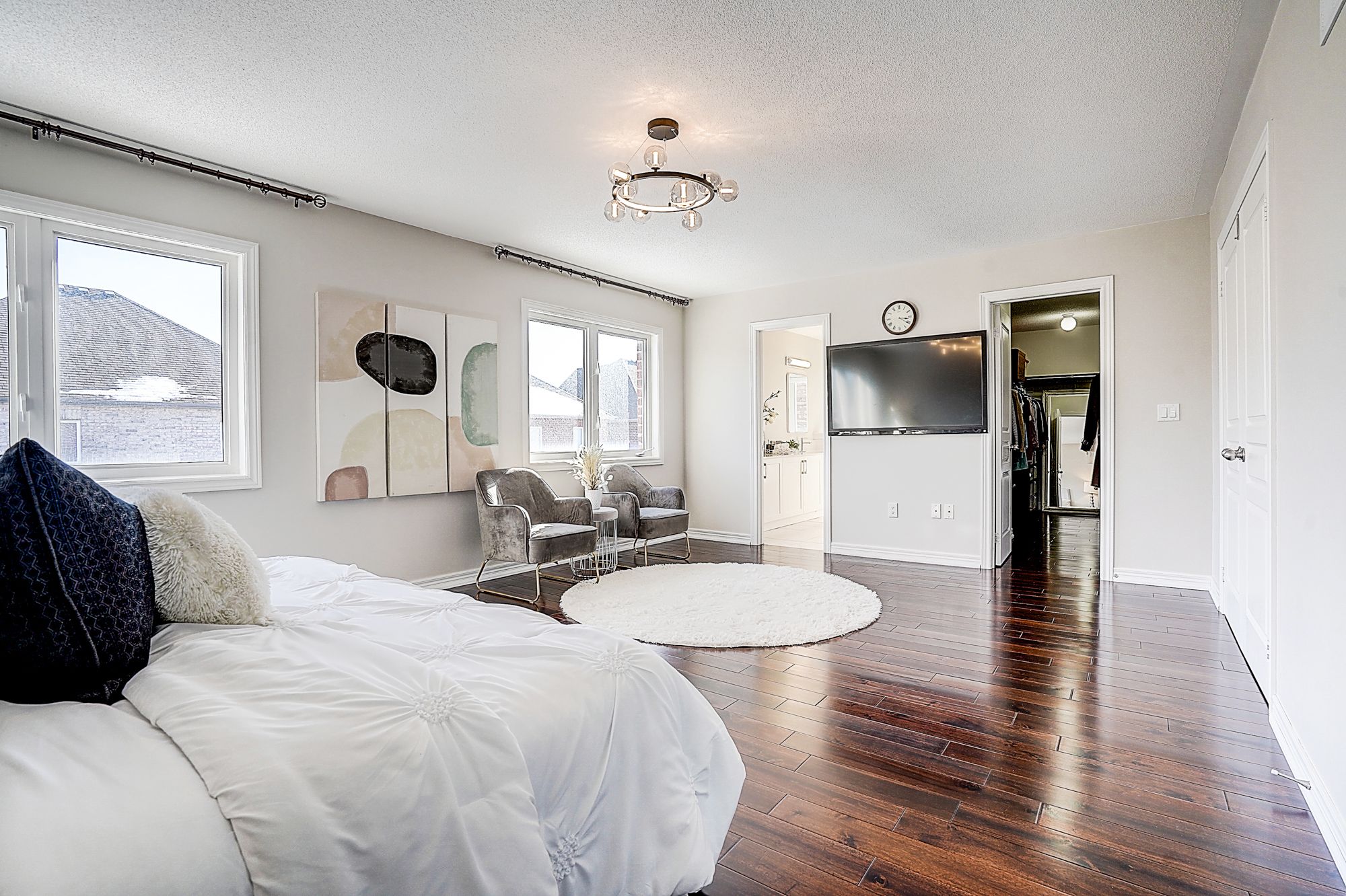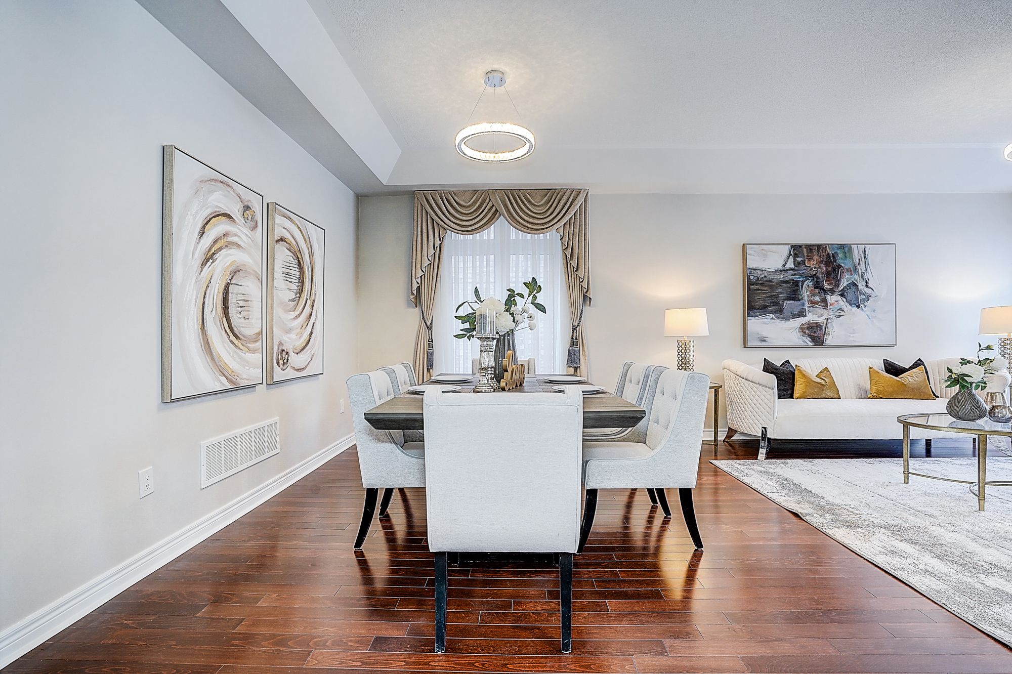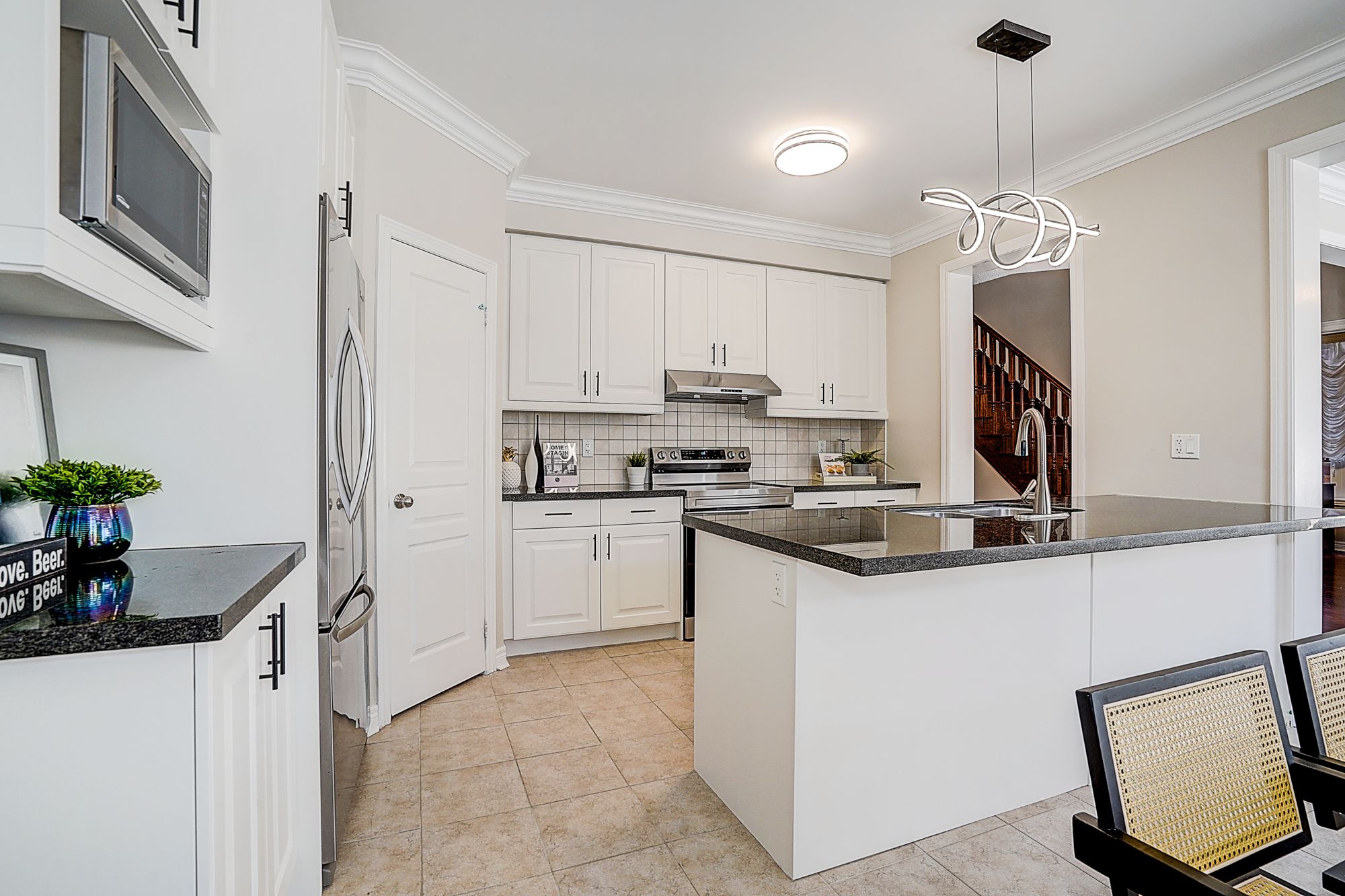 Welcome to 98 thornhill ravines cres. A stunning luxury & executive home sitting on a rarely available south-facing premium lot (46 x 101. 82) in a highly sought-after valleys of thornhill neighborhood. Featuring a brick exterior, double car garage, professional interlock front yard and backyard, this spacious residence offers over 4,500 sq. Ft. Of total living space including a fully finished basement. Recent upgrades $$$: freshly painted throughout, brand new hardwood floor on second floor, modern designer indoor and outdoor light fixtures, and upgraded bathroom vanity cabinets enhancing both style and functionality. This open-concept gem boasts hardwood flooring, and big windows flooding the space with natural light. The main floor features spacious living and dining areas, a cozy family room with gas fireplace, and a big office. The gourmet kitchen showcases storage cabinetry, granite countertops, tile backsplash, centre island with breakfast bar, and premium stainless-steel appliances. A walkout from the breakfast area leads to a patio for outdoor entertaining. Upstairs, there are two en-suites and one jack and jill bathroom. The primary bedroom offers a walk-in closet, and a luxurious 5-piece ensuite with frameless glass shower, double vanity, and a bath tub. Another ensuite bedroom has its own private 4-piece ensuite, while the remaining two share a semi-ensuite bath. The finished basement includes a guest room, fully rough-in bathroom, and a large rec/media room. Zoned for top-ranked schools. This elegant, functional, and practical home closes to all amenities is ready to welcome you. Don't miss the chance to elevate your lifestyle! A must see and buy!